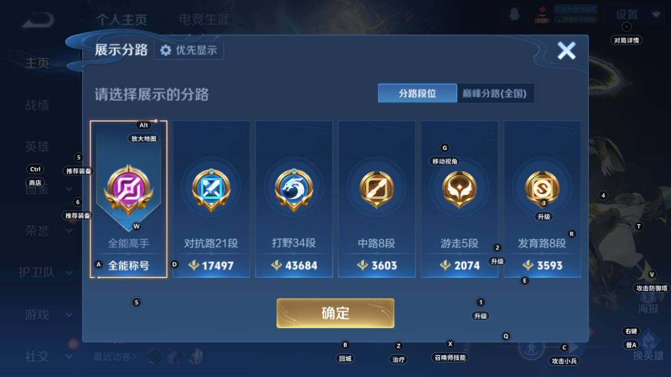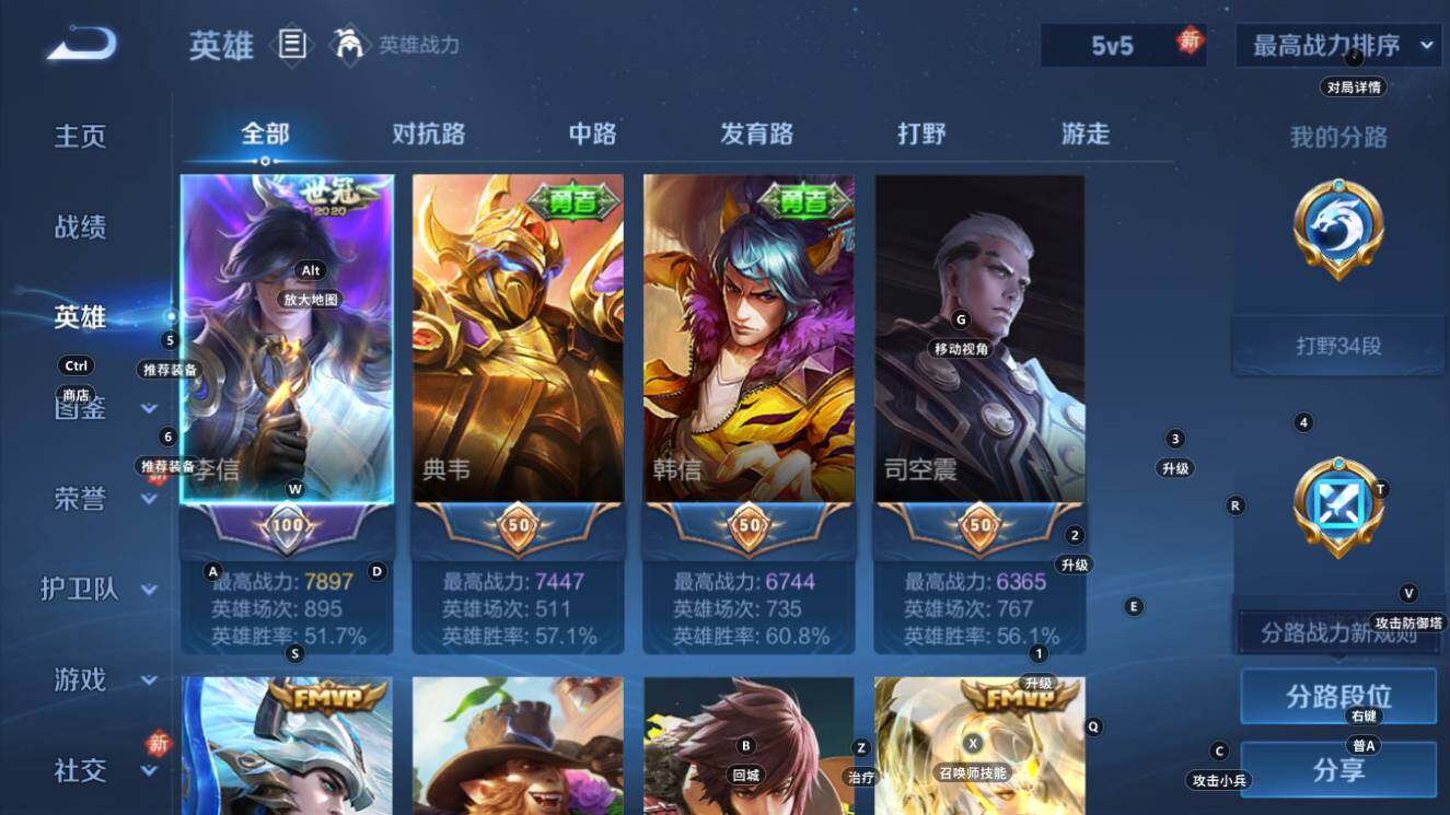 打野23段,对抗19段,6按键 星币3018 安卓Q-V6--108英雄-99