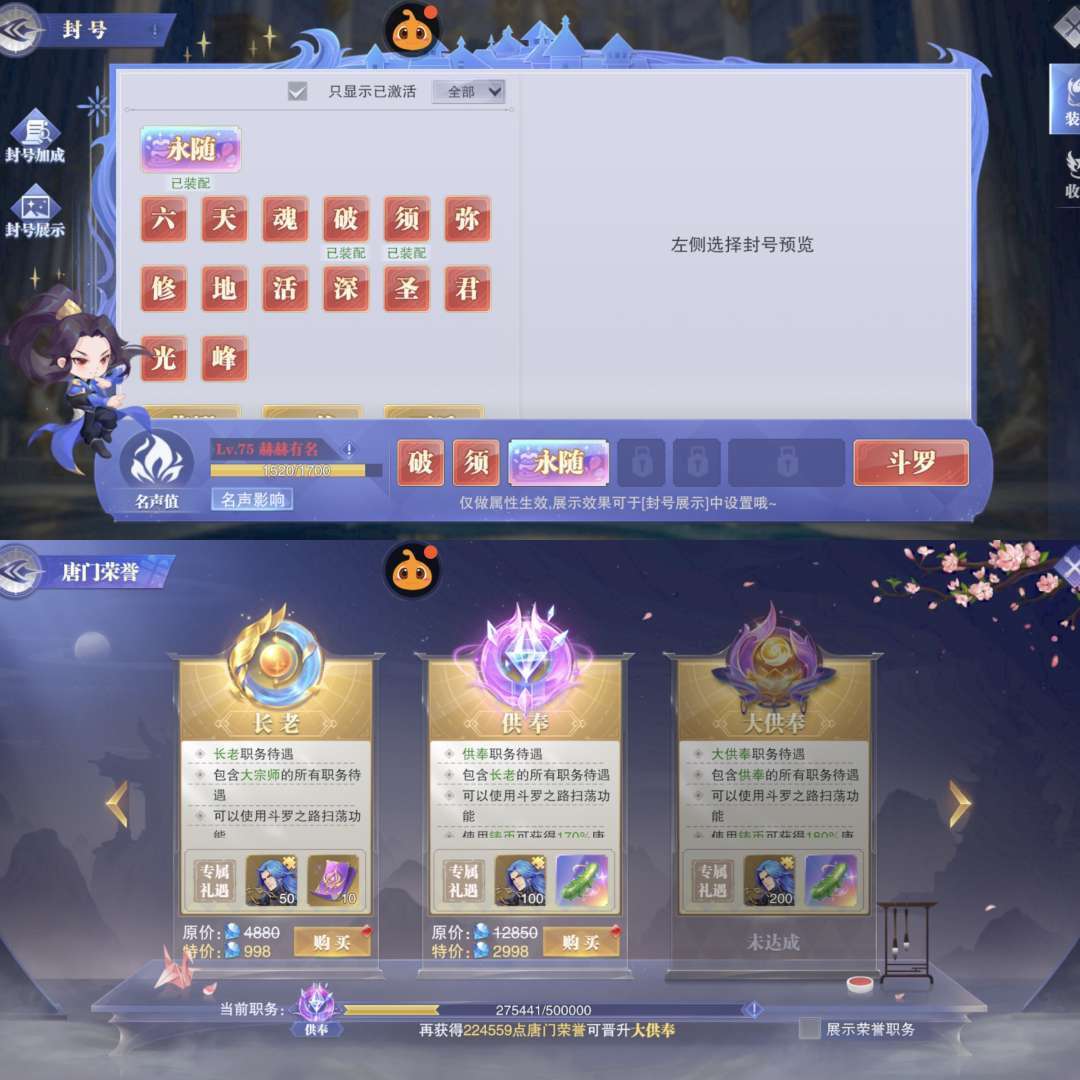 5专修唐。3专千道流1幻金。5专宁荣荣2幻金。3专小