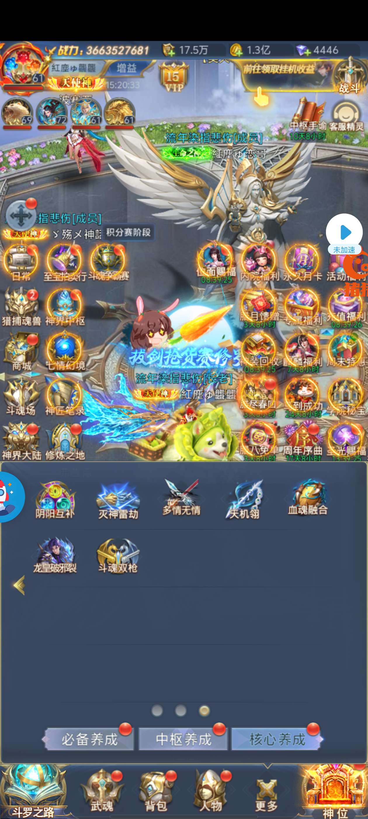 昊天8106服,36亿彩,高战力成品号,一彩四红骨,坐骑皮肤多,十排大奖,一套冰甲,凶兽全,中枢如图
