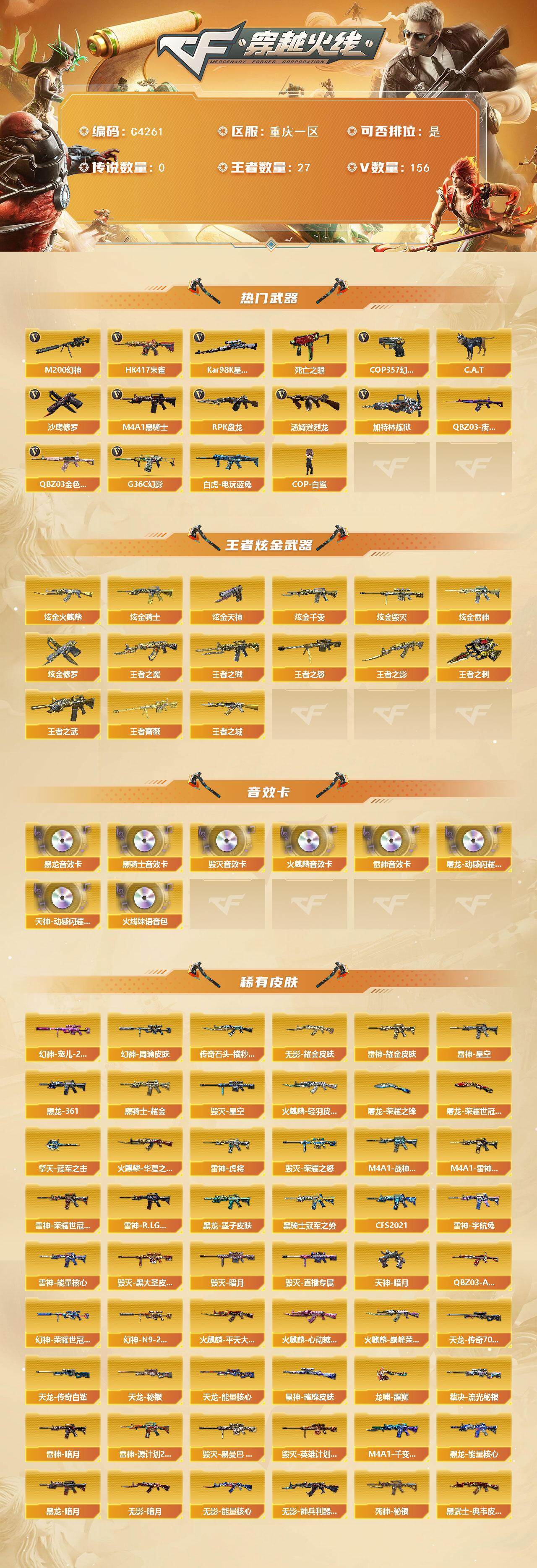 【C4261】重庆一区-156V-27王者-10炫金