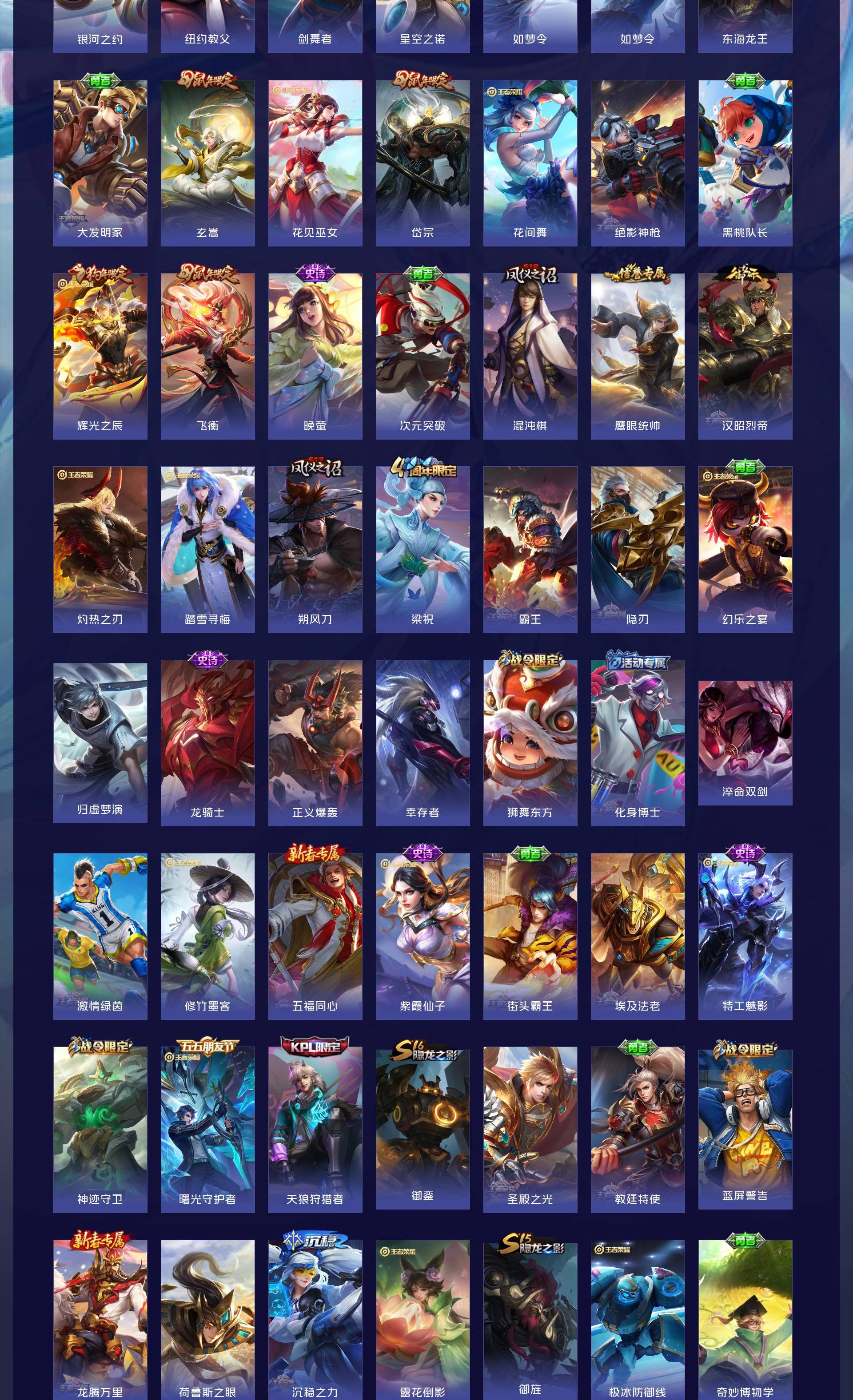 V8 皮肤317 英雄126 绝世王者 荣耀典藏1 传说21 其他皮肤301