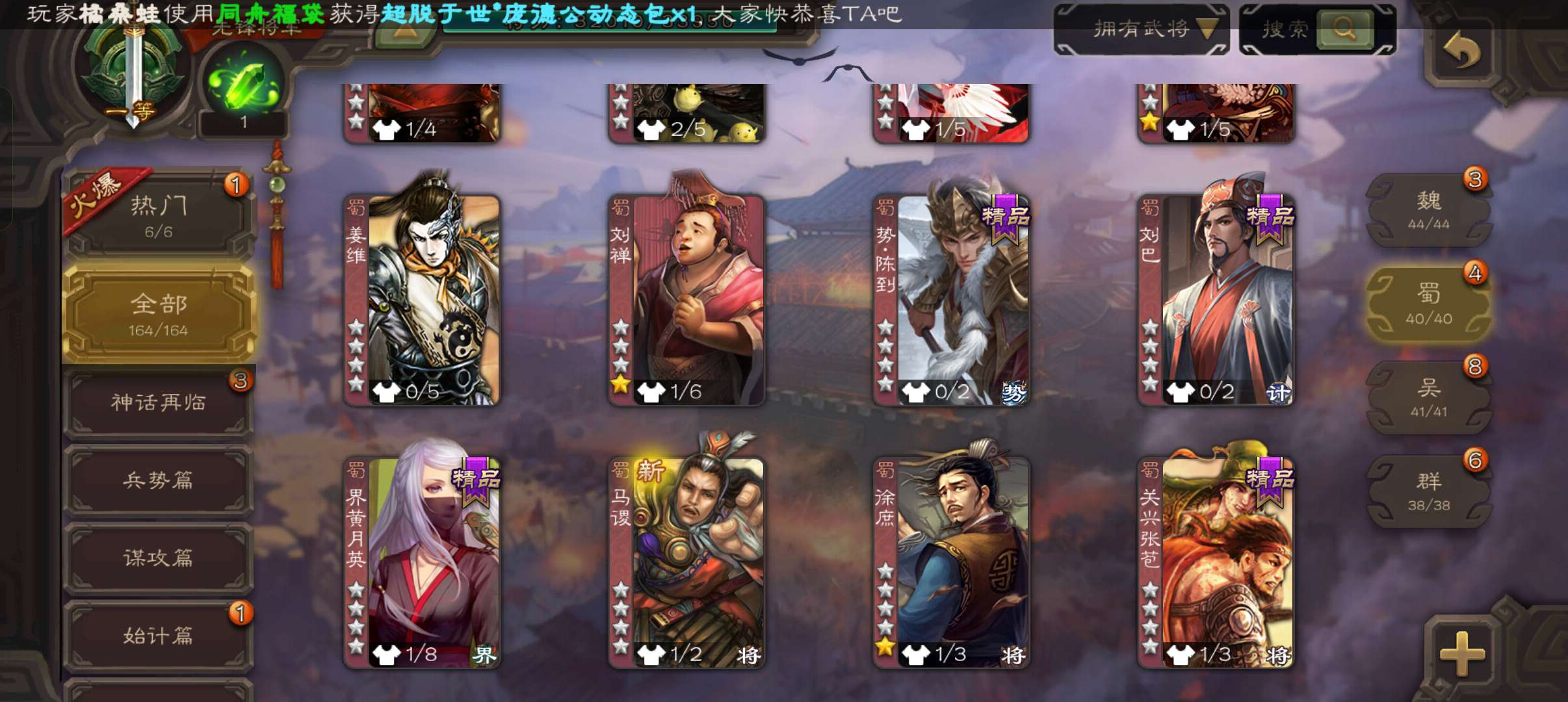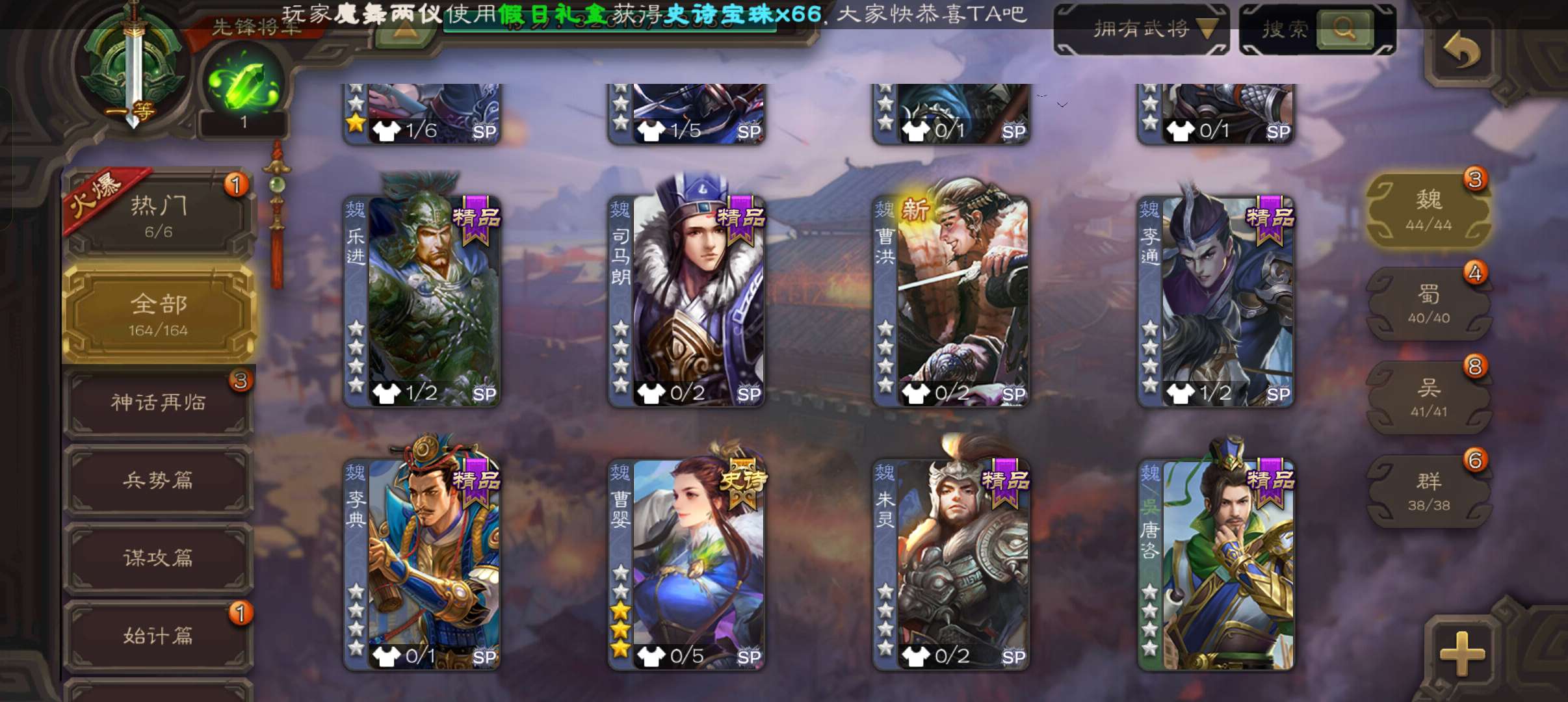 40宝珠8万5羽毛,神赵云动王粲曹婴3史诗一等先锋,神吕蒙sp赵云甘夫人关银屏谋高顺势陈到164将