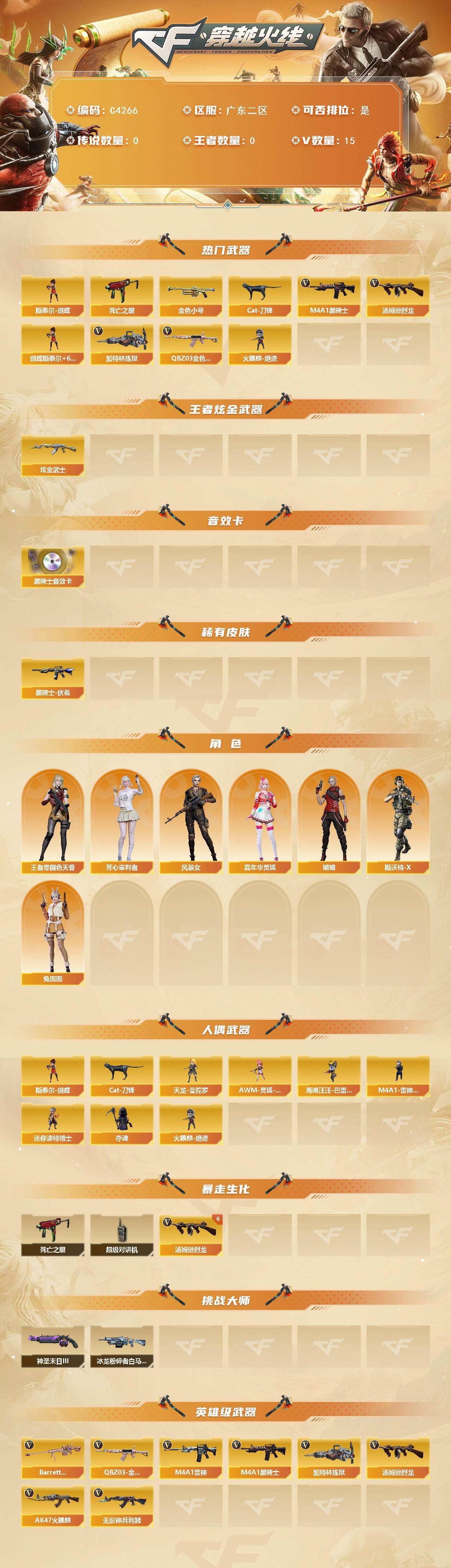 【热门武器】:QBZ03-金色蔷薇,死亡之眼,金色小号,Cat-刀锋,M4A1-黑骑士,汤姆逊-烈龙*6,加特林-炼狱,斯泰尔-蝴蝶,火麒麟-绝迹