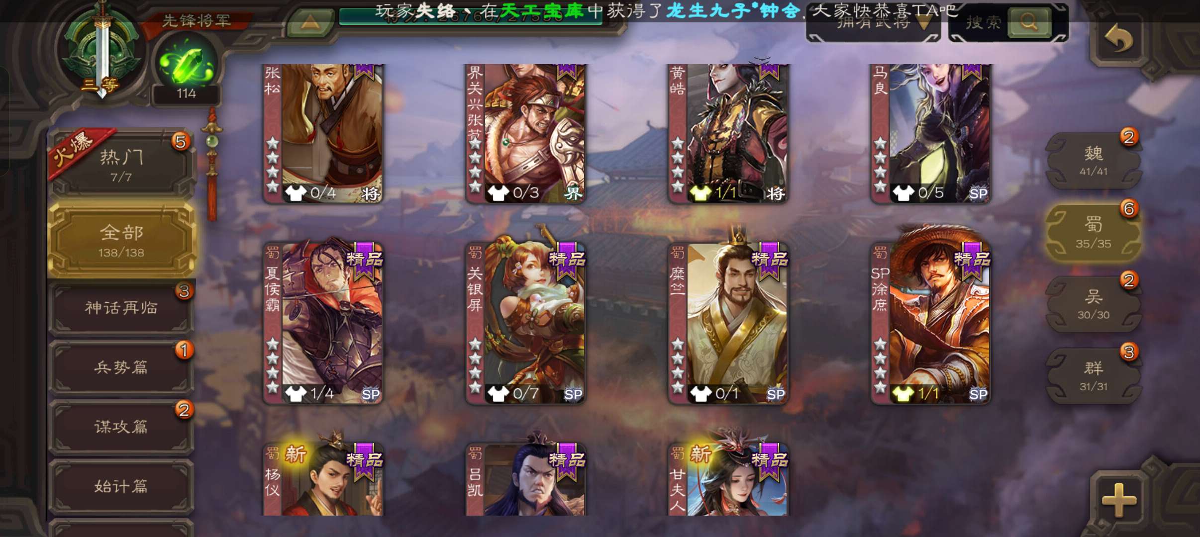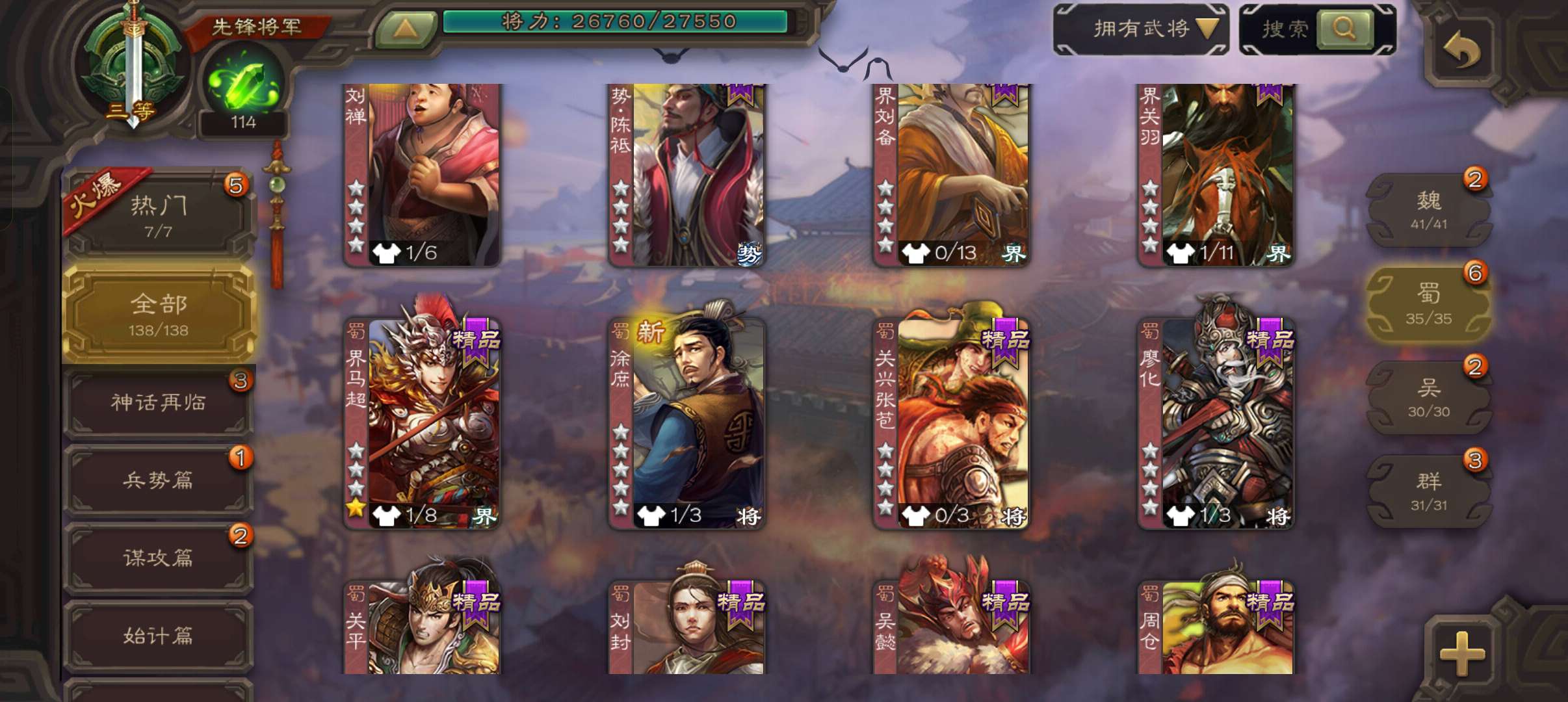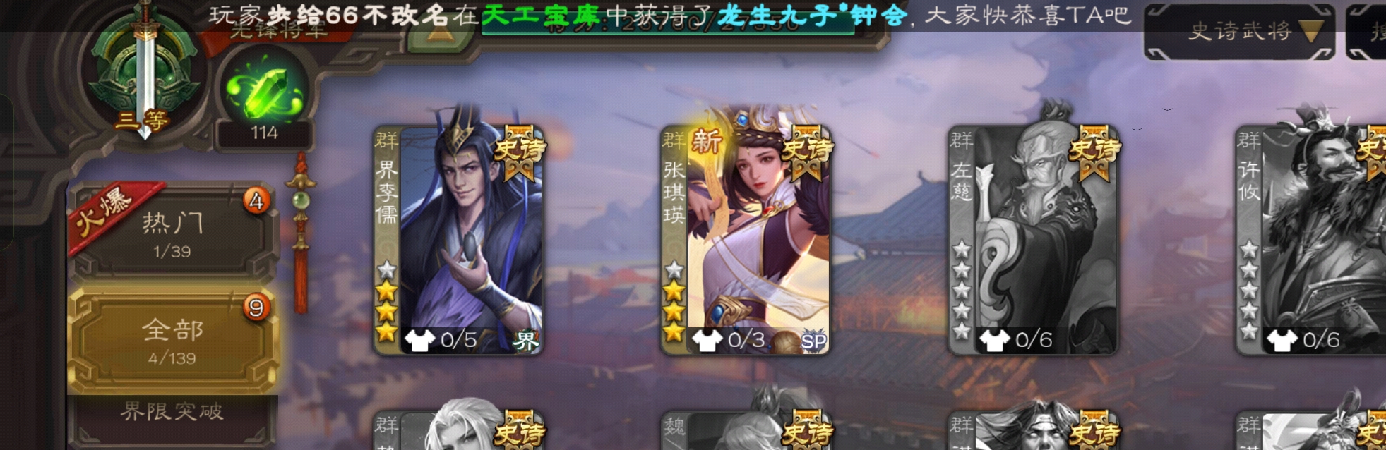 5.6万豆,回廊动大宝张琪瑛界李儒神刘备4史诗先锋,天工吴柯,甘夫人关银屏谋卢植谋小乔崔琰138将