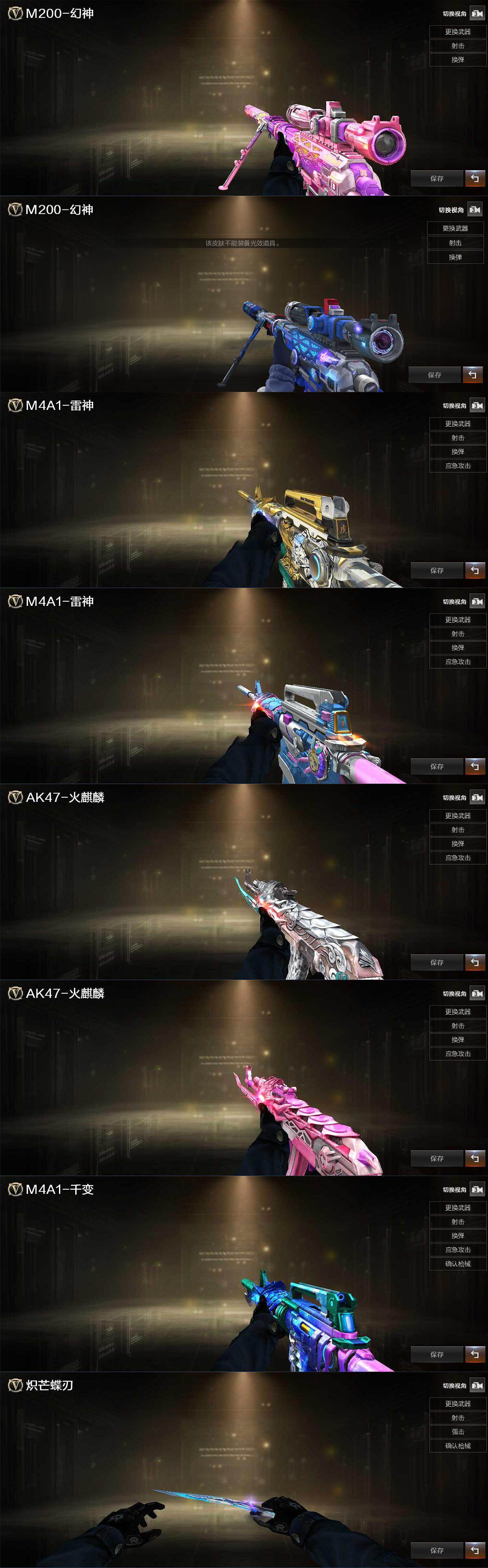【热门武器】:Scar Light-白虎,M200-幻神,金色蔷薇-古蛇迷踪,修罗-古蛇迷踪,COP 357-幻灵,沙鹰-修罗,炽芒蝶刃,炽芒蝶刃-破浪逐光 皮肤