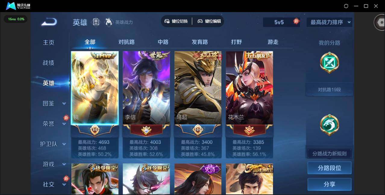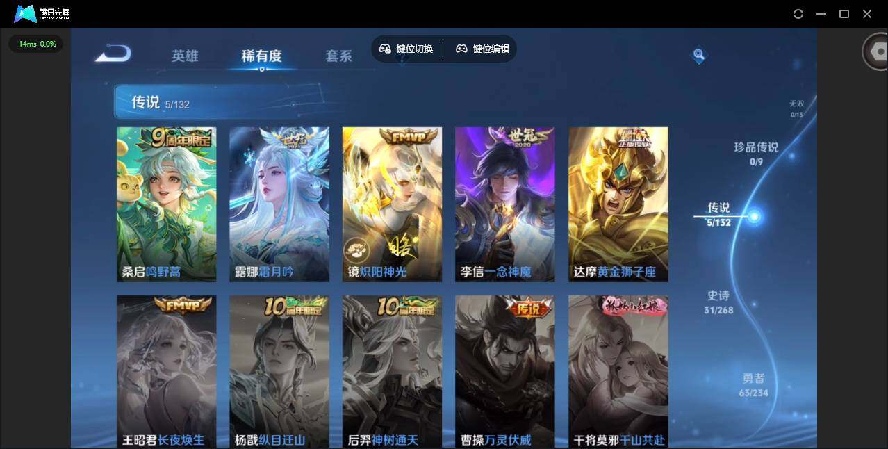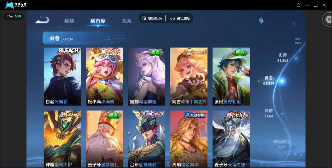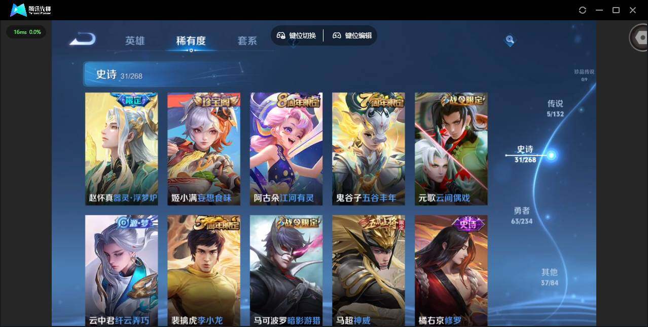 实名: 可修改 贵族等级: V6 英雄数: 126 皮肤数: 136 星传说: