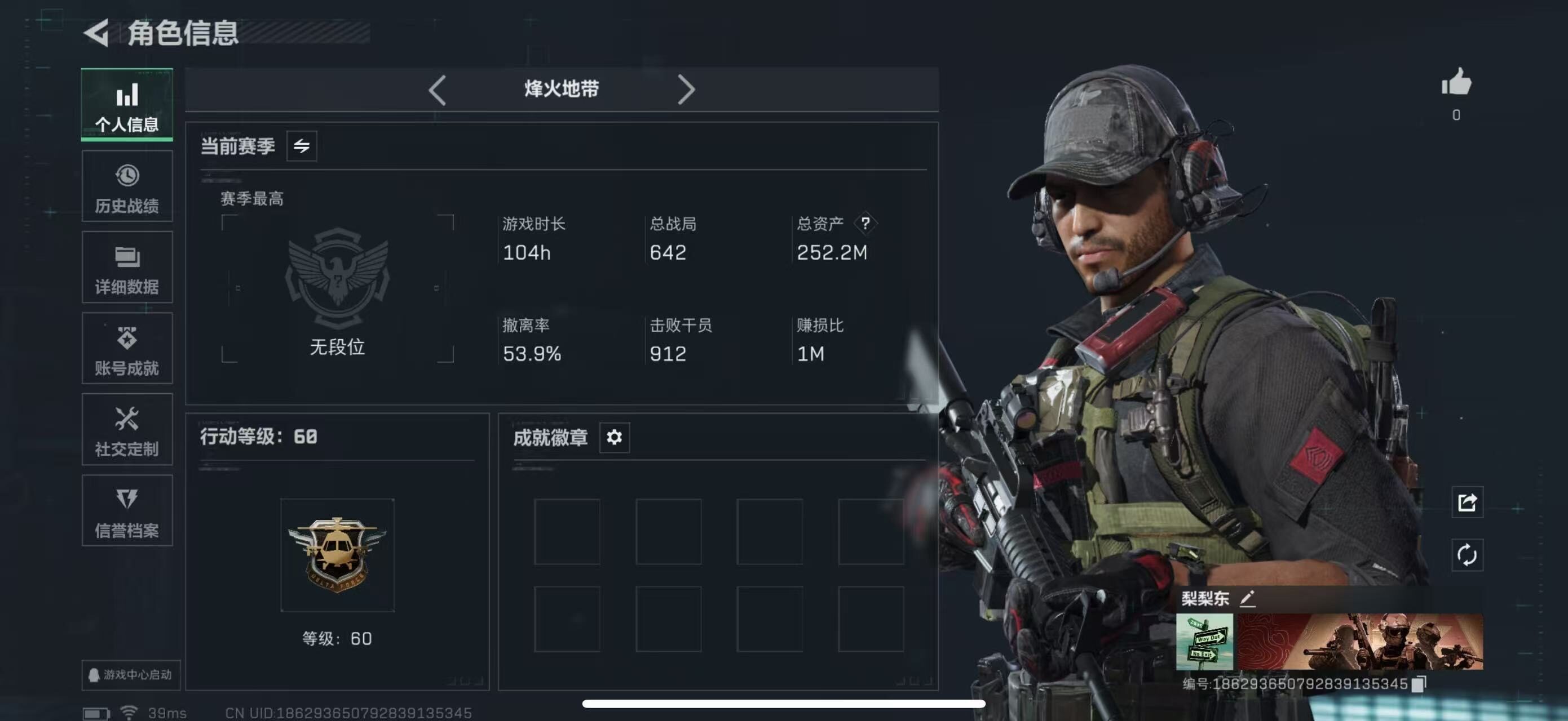 【特价出售/店主推荐】252m总资产-128580k哈伏币-60烽火等级-青铜-1战场等级-无军衔