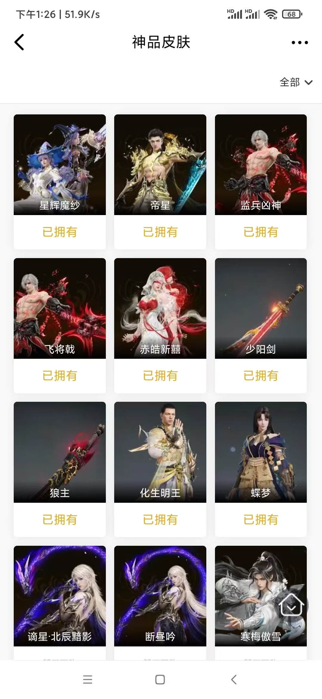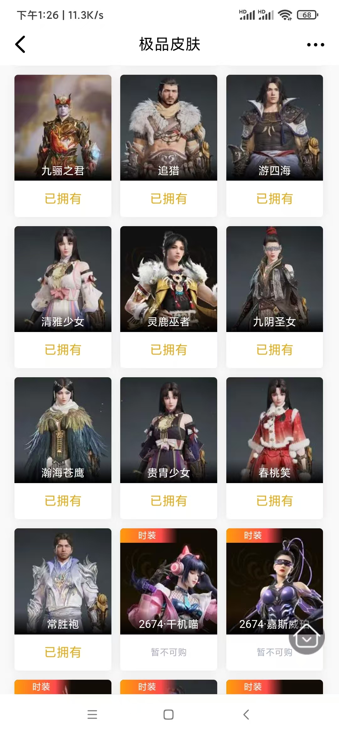 新魔杰.伏龙尊者 祸津素盏 封神录.姜子牙 神机袍.缤纷 花之倾奇 寿竹云春 浣烟纱 新魔杰.斩魔天将 倒反阴阳.炽羽 开辟鸿蒙.风雨谐 天工奥妙 九骊之君 清雅少女 瀚海苍鹰 常胜袍 追猎 灵鹿巫者 贵胄少女 游四海 九阴圣女 春桃笑