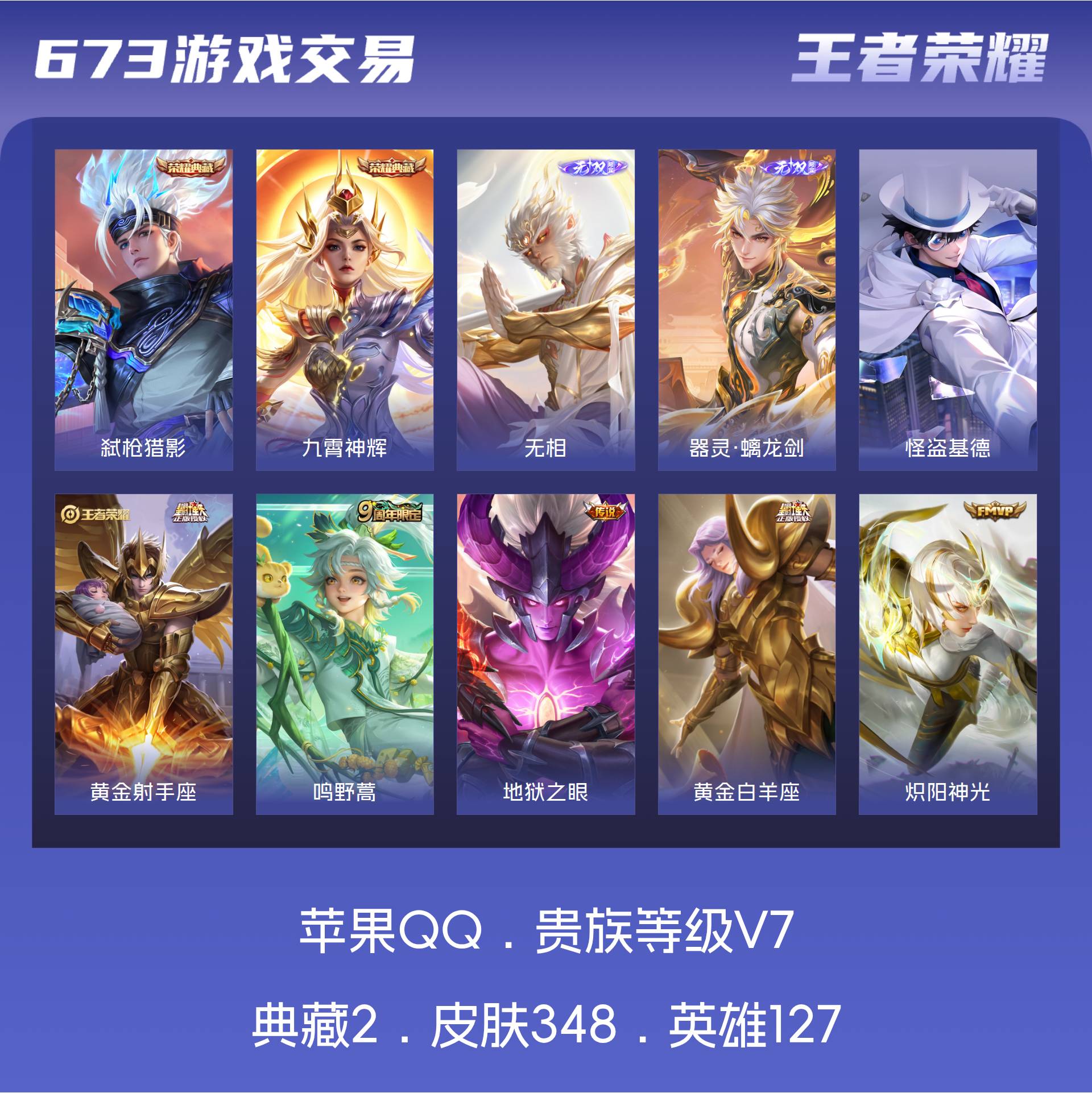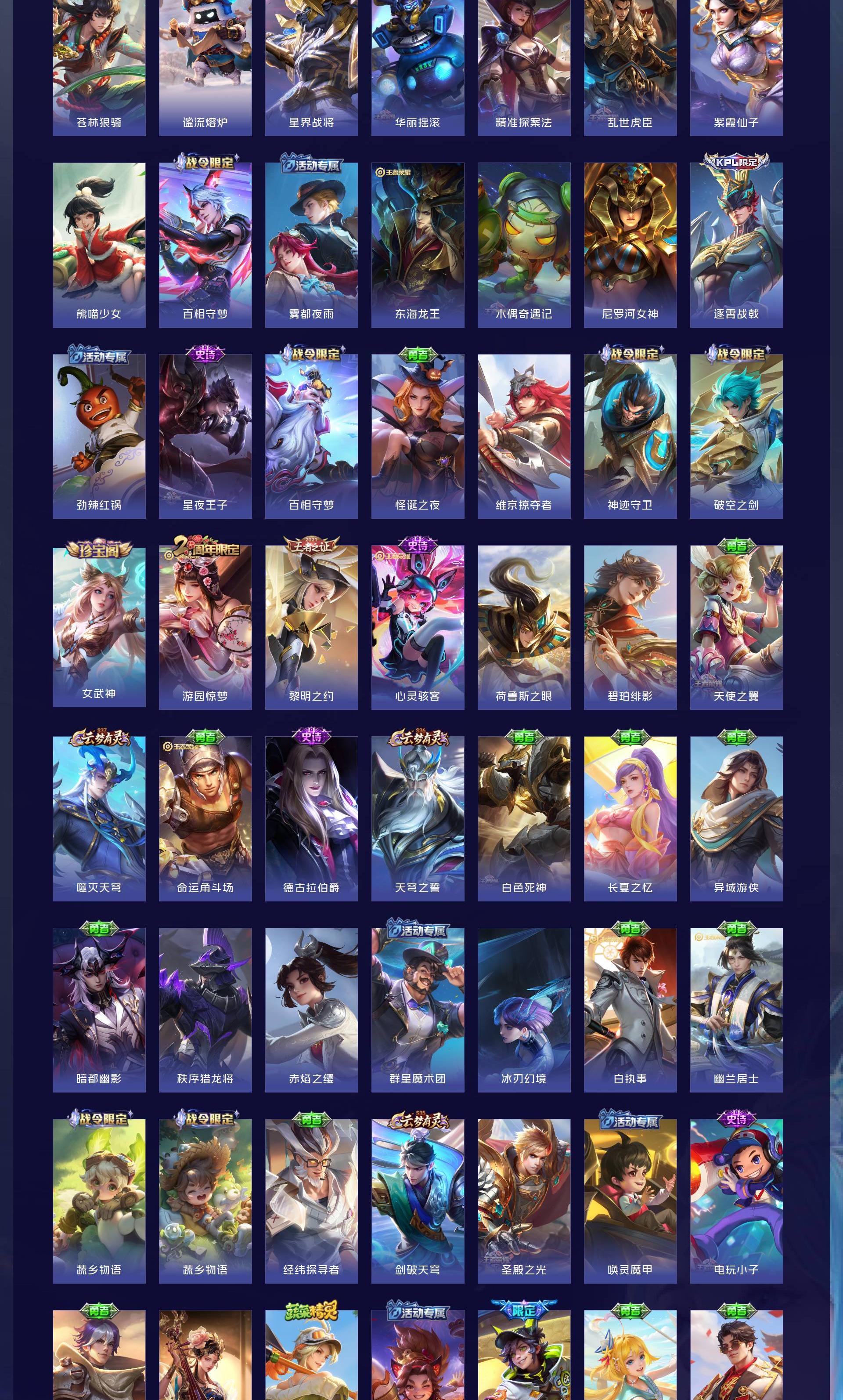 V7 皮肤348 英雄127 永恒钻石 荣耀典藏2 无双皮肤2 珍品传说1 传说11 其他皮肤338