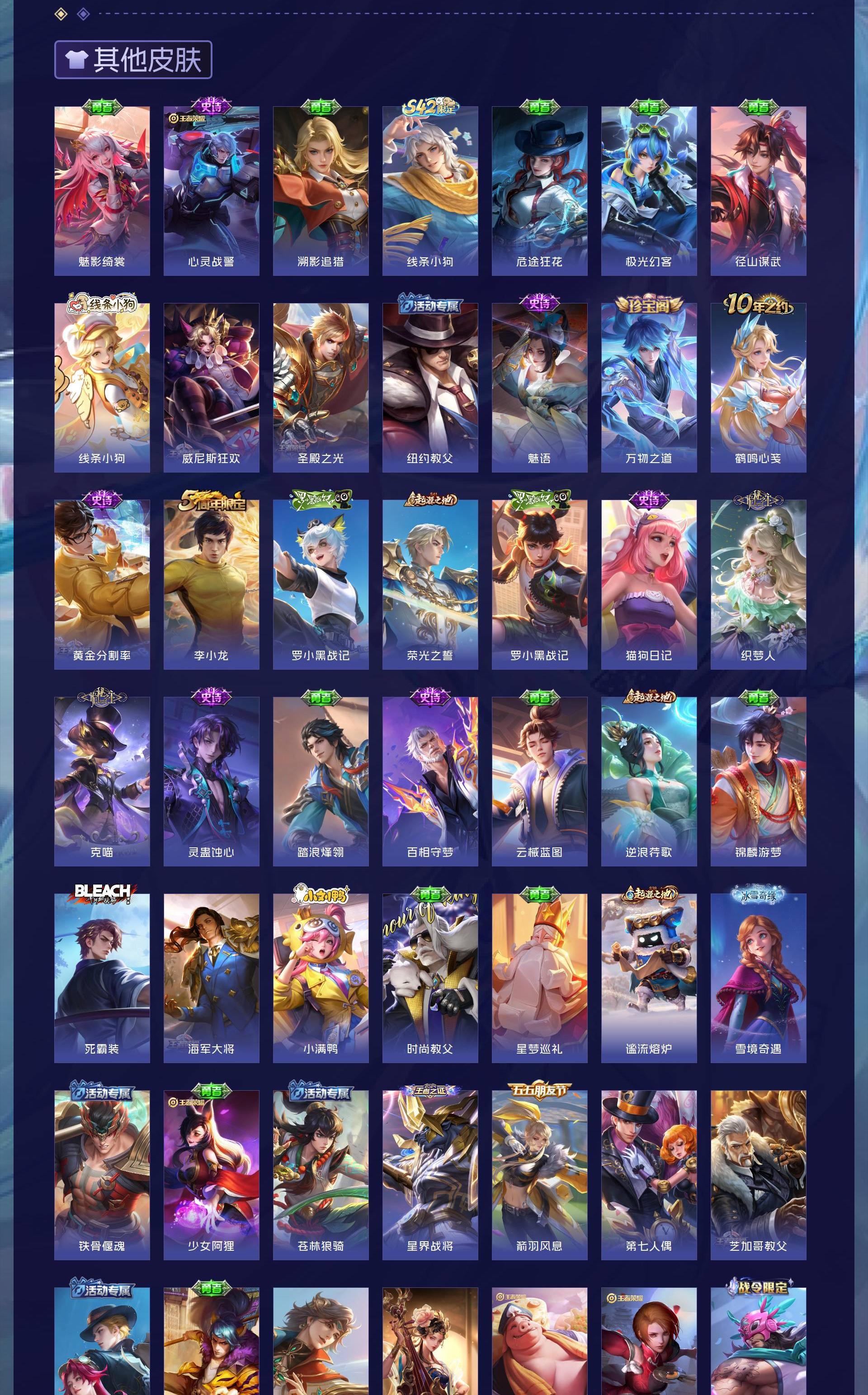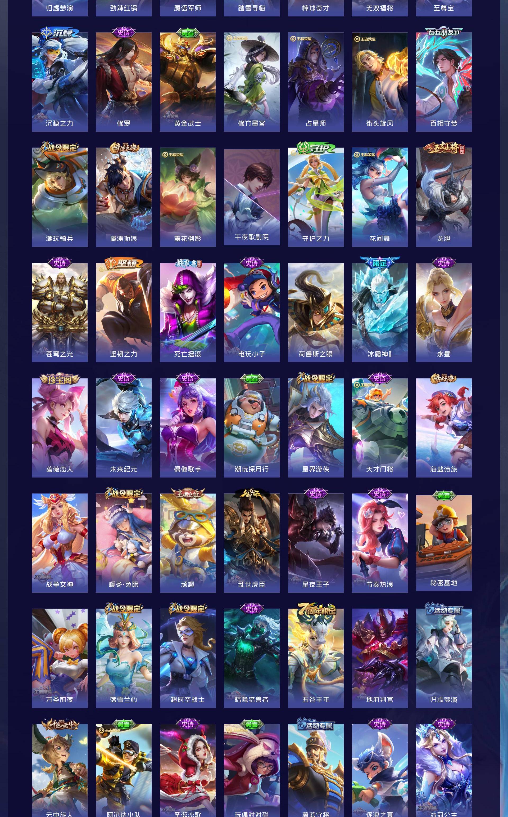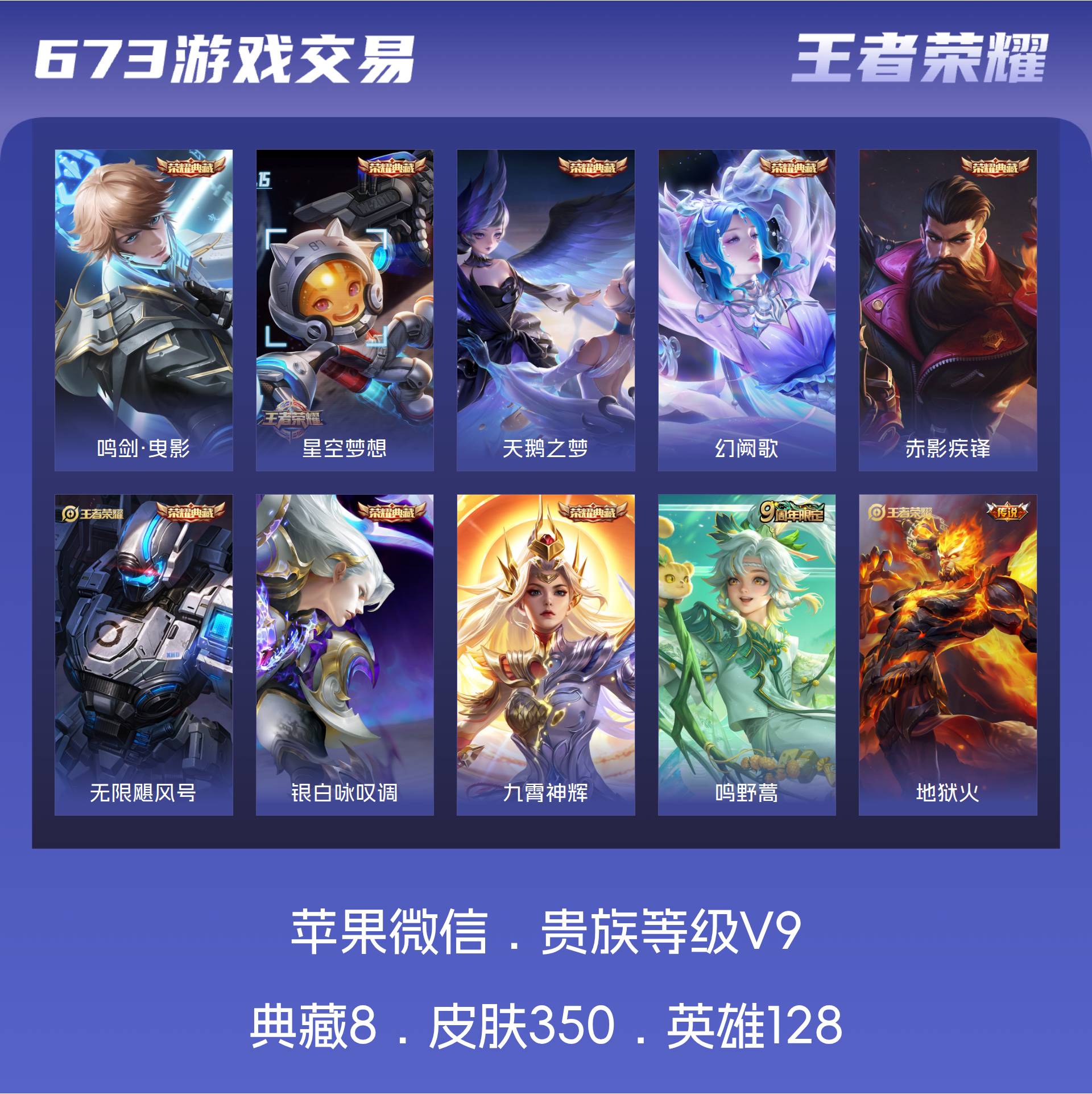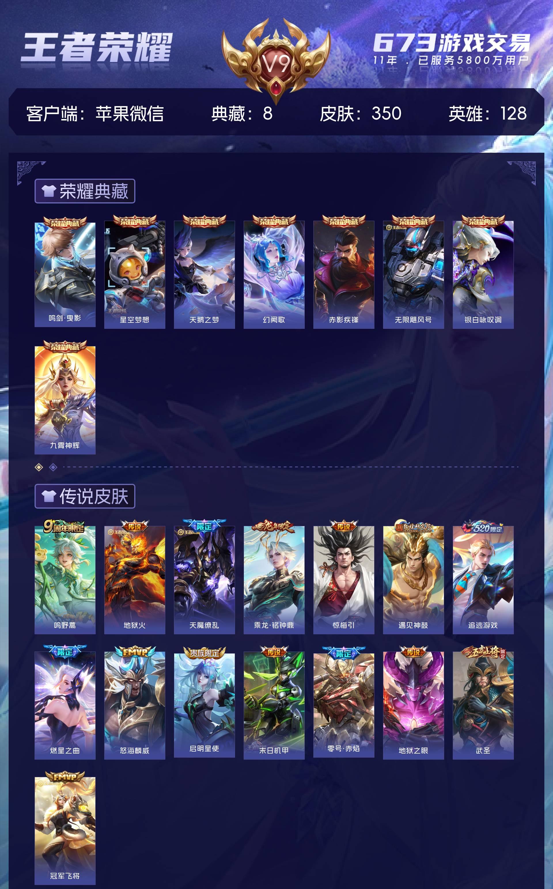 V9 皮肤350 英雄128 尊贵铂金 荣耀典藏8 传说15 其他皮肤332
