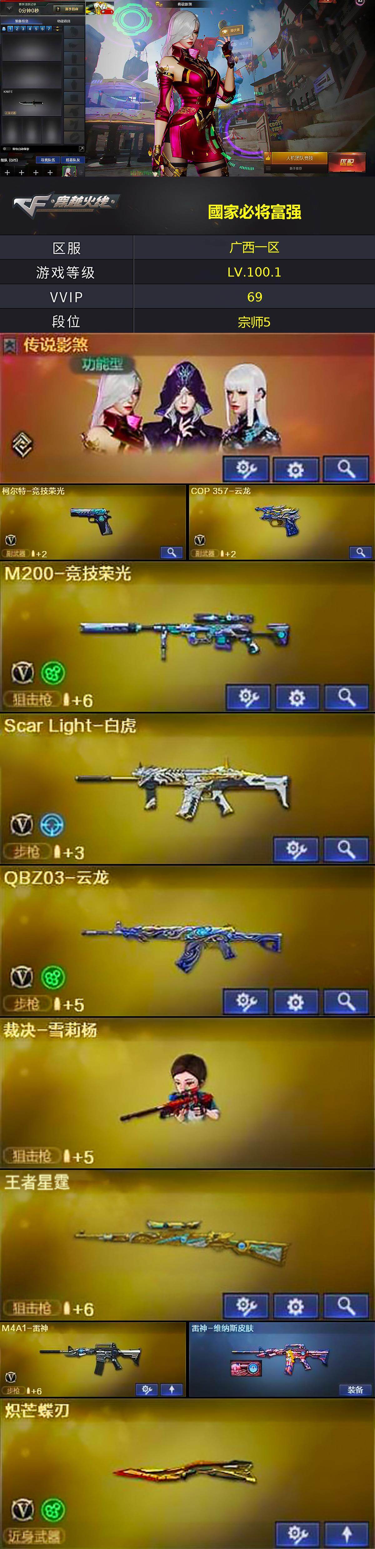 【热门武器】:Scar Light-白虎,M200-竞技荣光,金色蔷薇-空,MK5-炽火炎龙,裁决-雪莉杨,炽芒蝶刃