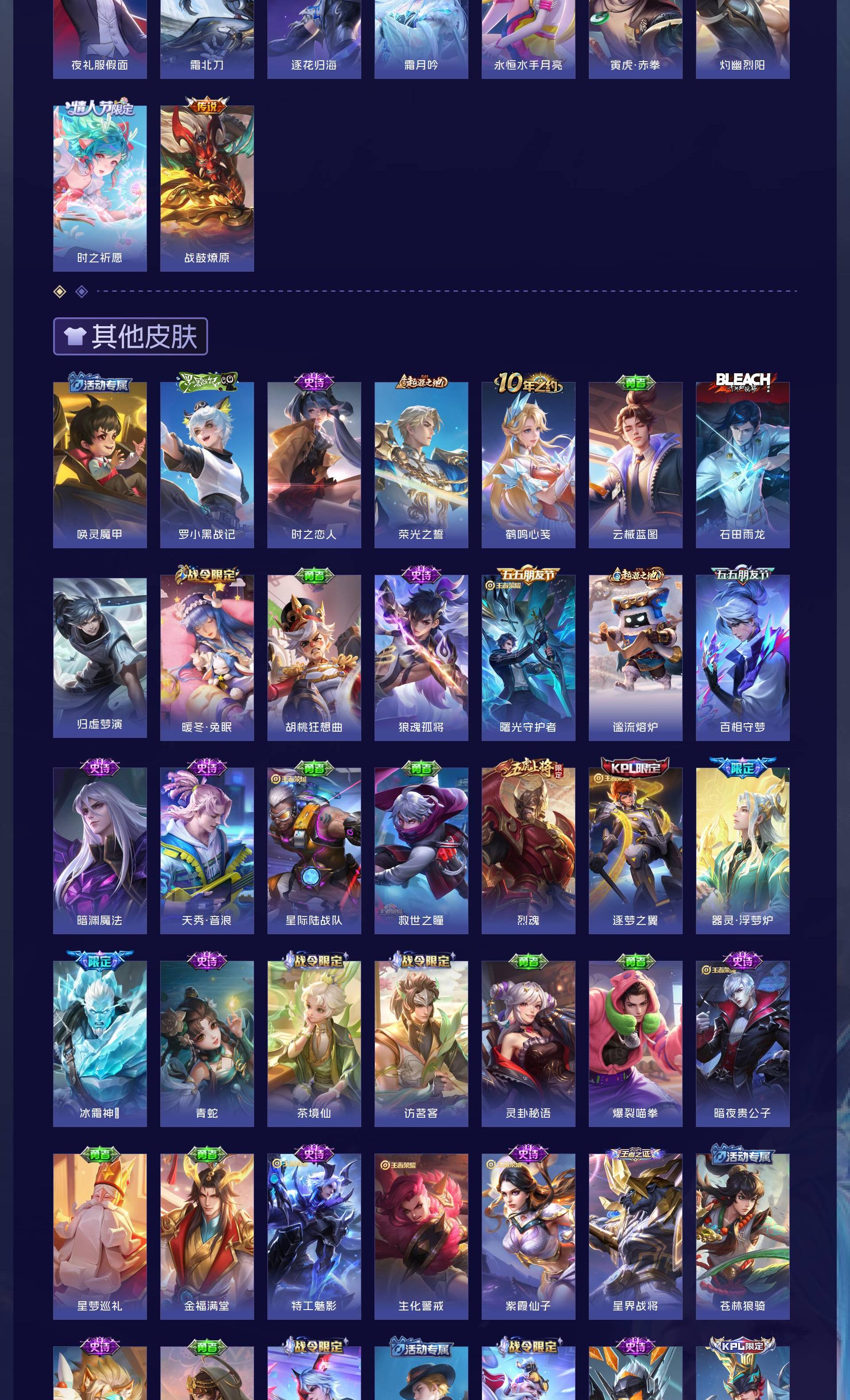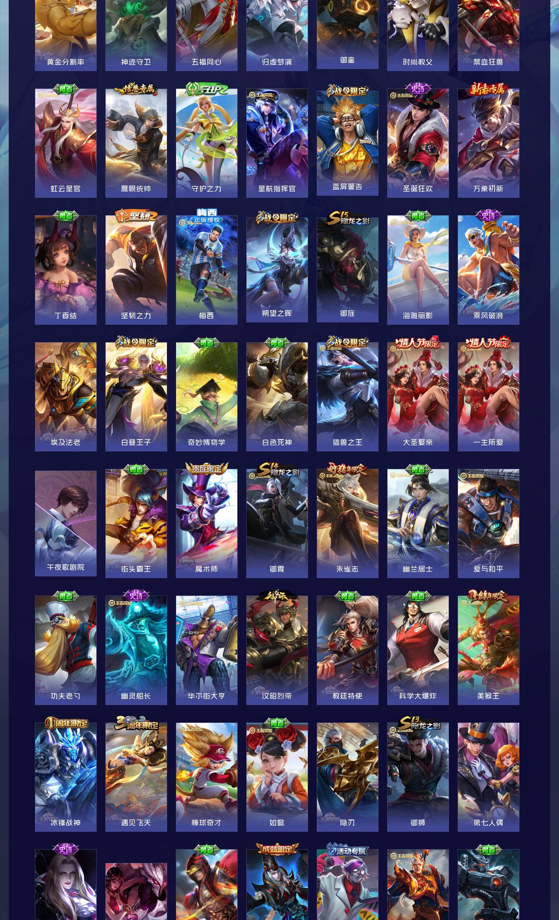 V10 皮肤449 英雄127 尊贵铂金 荣耀典藏2 无双皮肤4 珍品传说4 传说66 其他皮肤379