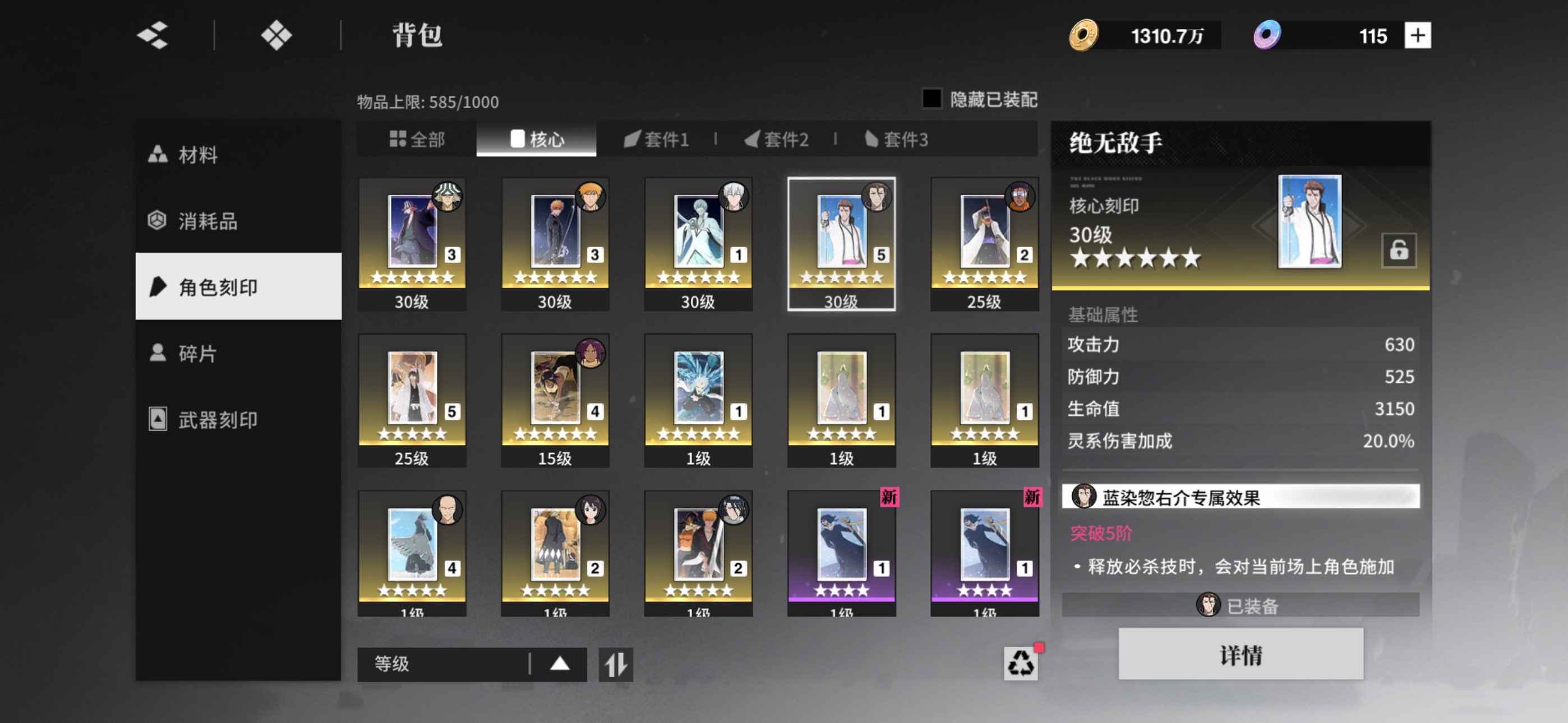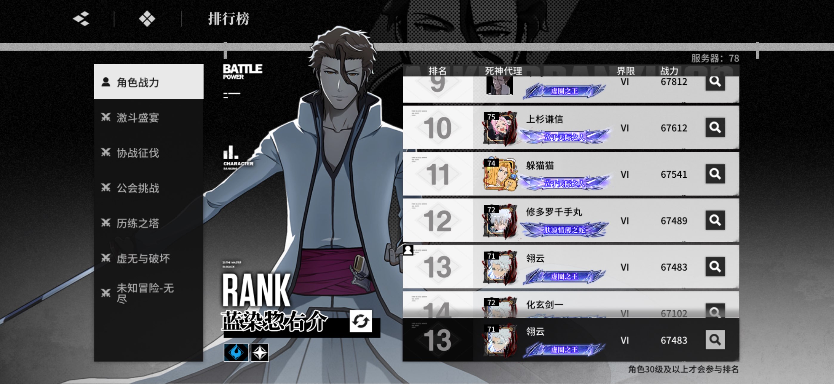 655蓝染 411市丸银 212东仙 243浦原 号内资源多
