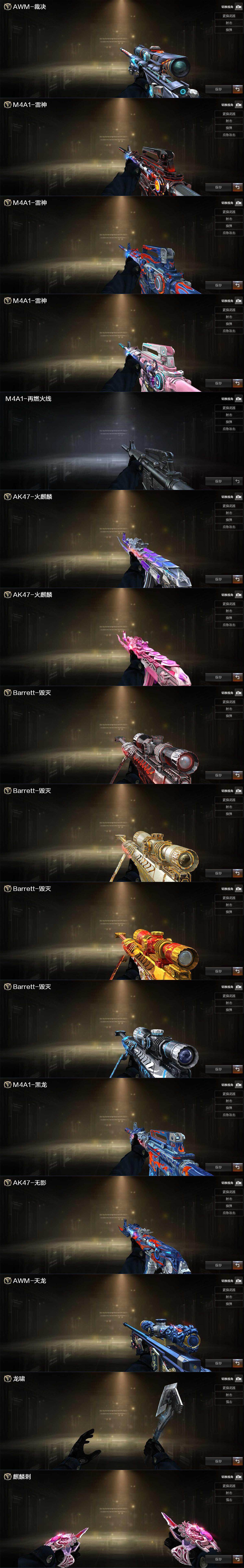 【热门武器】:传说圣灵,QBZ03-金色蔷薇,M200-竞技荣光,汤姆逊-烈龙,裁决-雪莉杨
