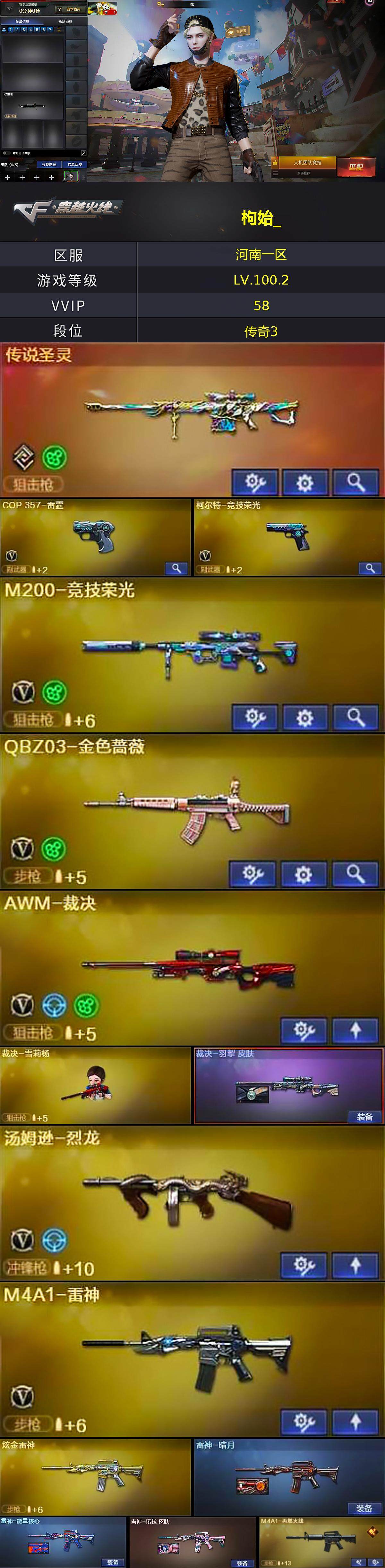 河南一区-56V-10王者-2炫金【传说武器】:传说圣灵【热门武器】:传说
