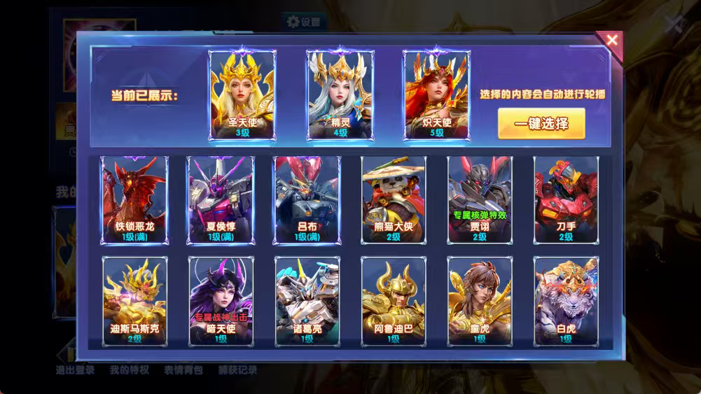 荣耀V14回归号 大天使出战 有天使惩击 老三国443 朱雀3白虎1 西游44 机甲433 山海23