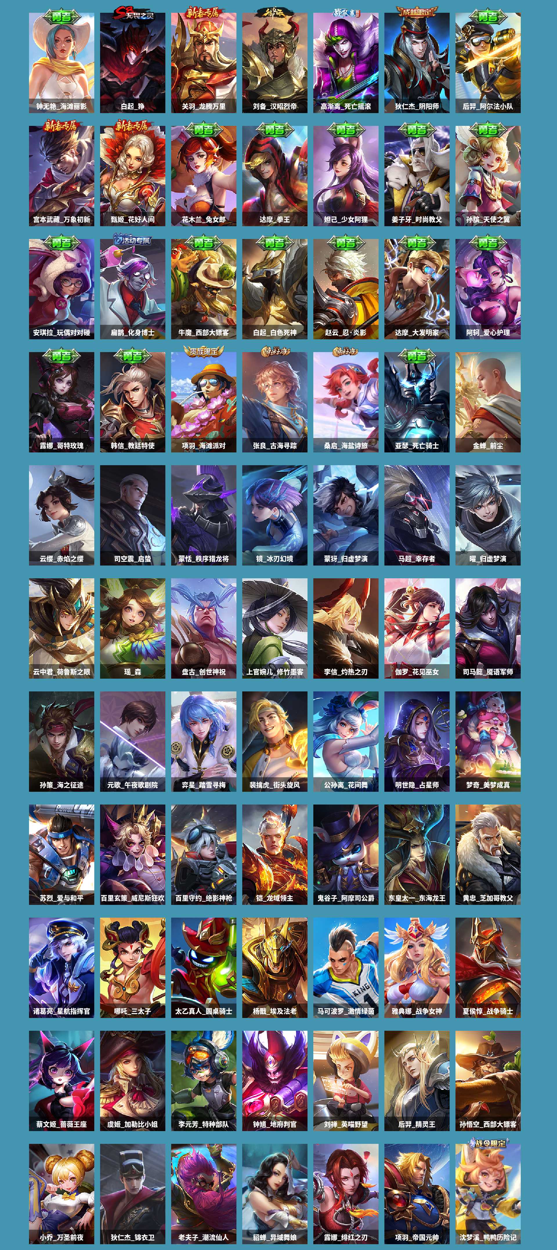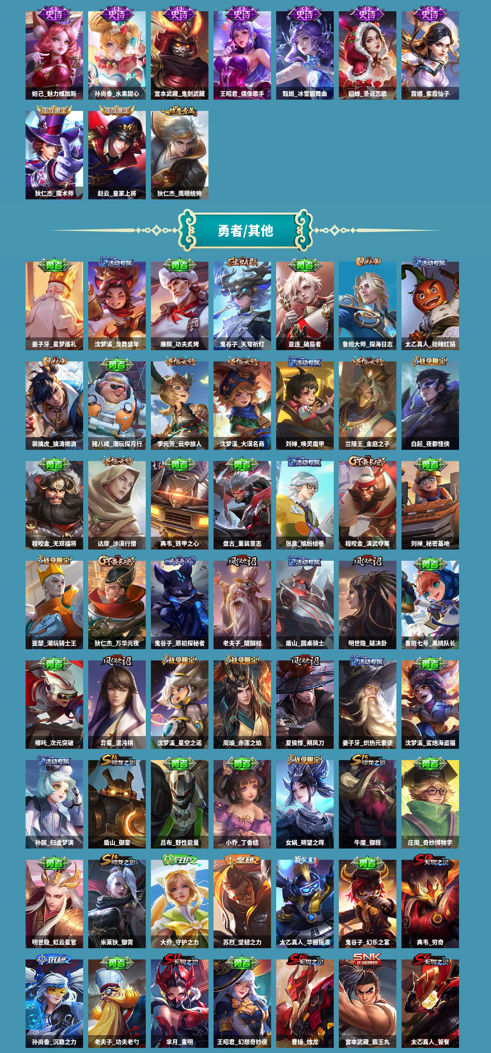 时雨/凤求凰/至尊宝+娶亲/蓝屏皮肤数量206印记总数12V