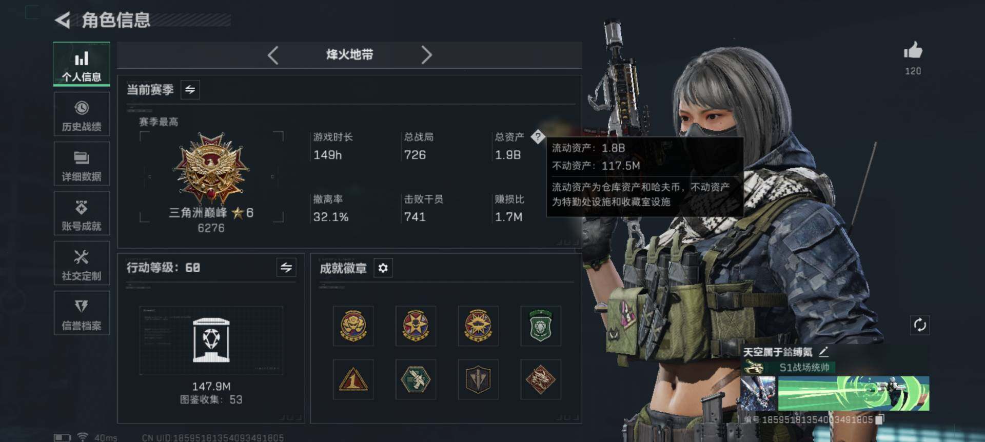 LJ4513总资产1900M哈弗币14270000K近战武器-怜悯,近战武器-信条,近战武器-黑海,近战武器-影锋红狼蚀金玫瑰,露娜金牌射手,蜂医送葬人无题密令无无AW子弹0发三角币1324仓库LV.10进阶安全箱靶场LV.7训练中心LV.7无,红狼-蚀金玫瑰,露娜-金牌射手,蜂医-送葬人·无题密令,近战-怜悯,近战-信条,近战-黑海,近战-影锋
