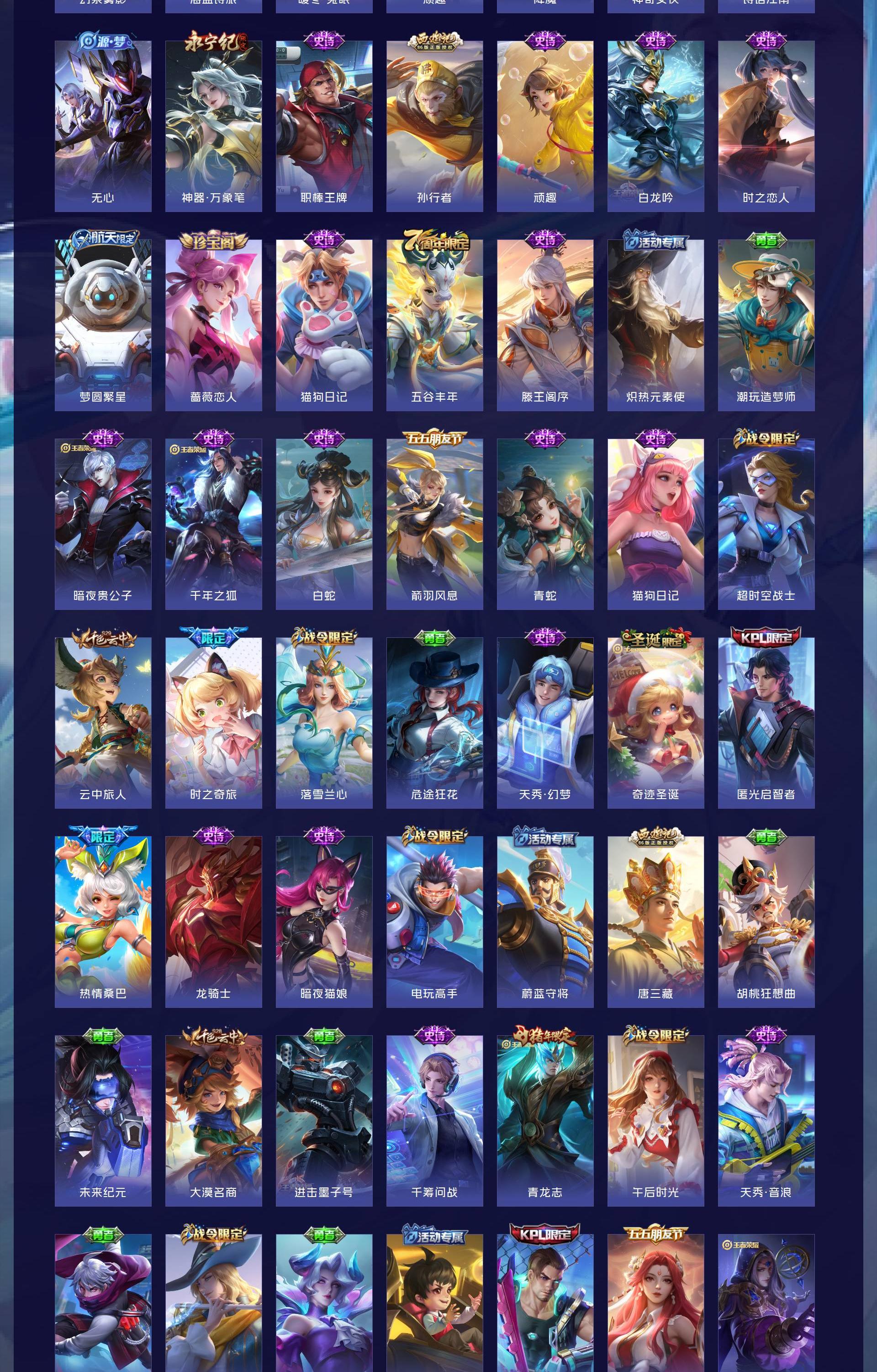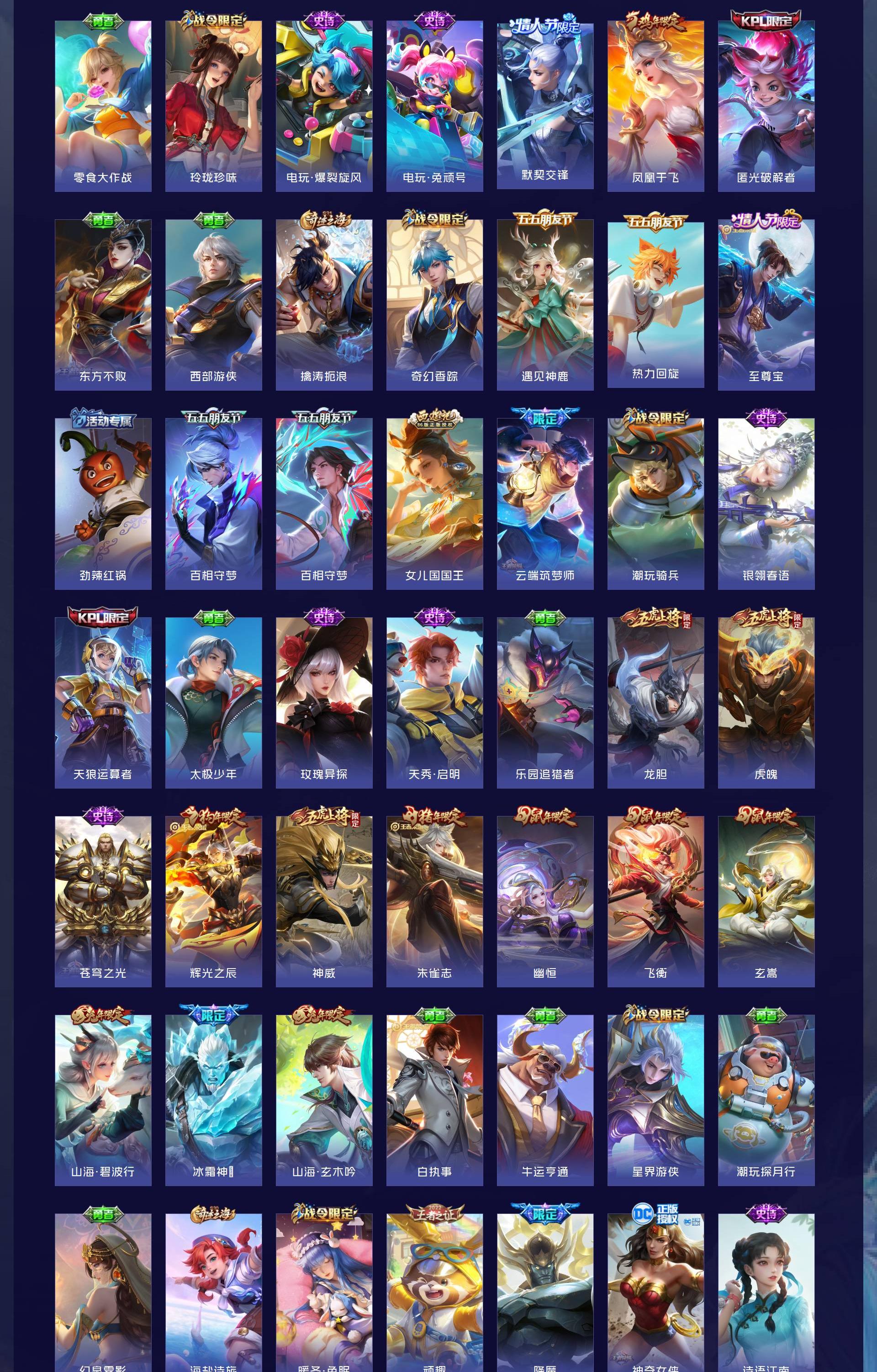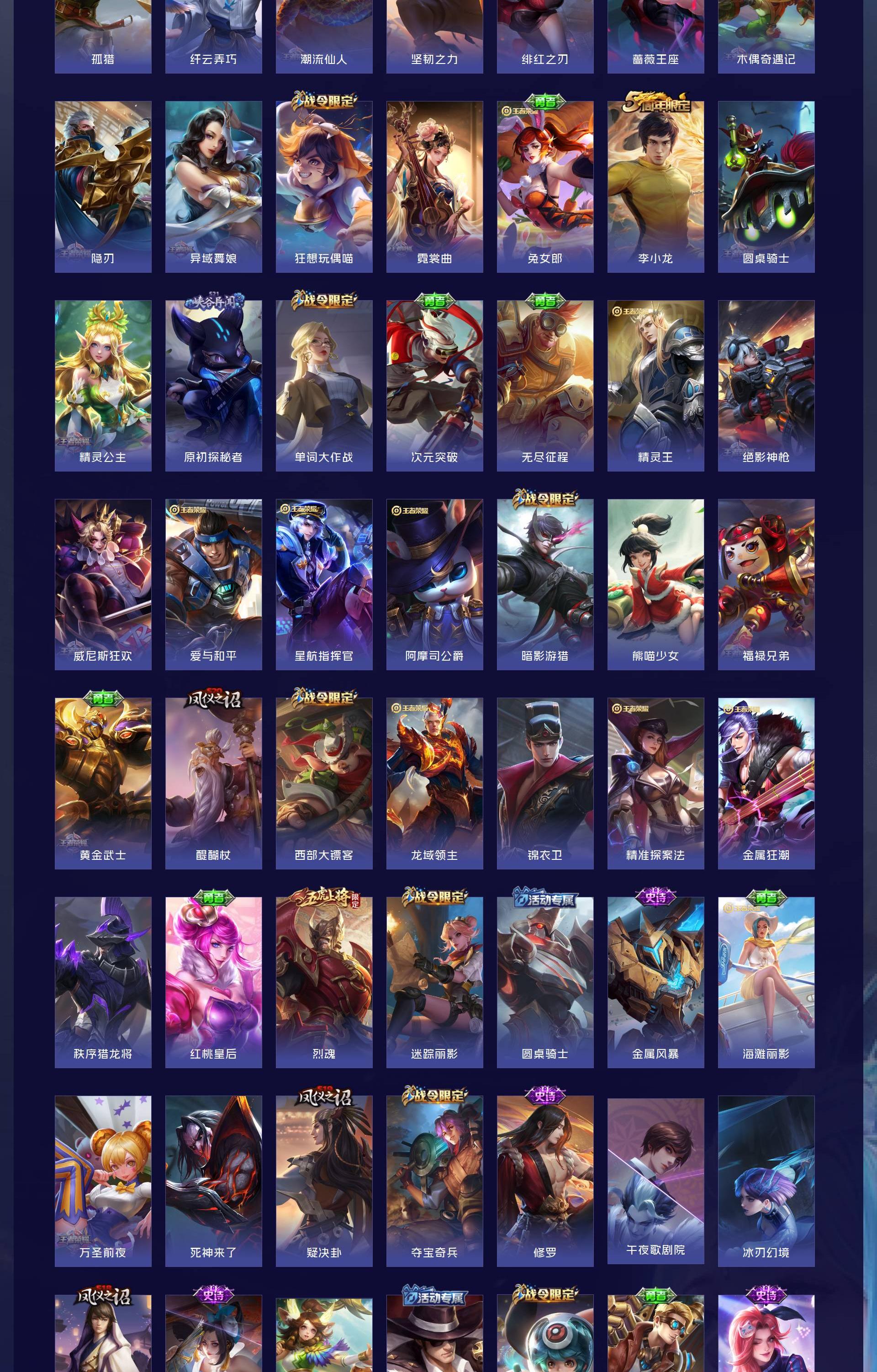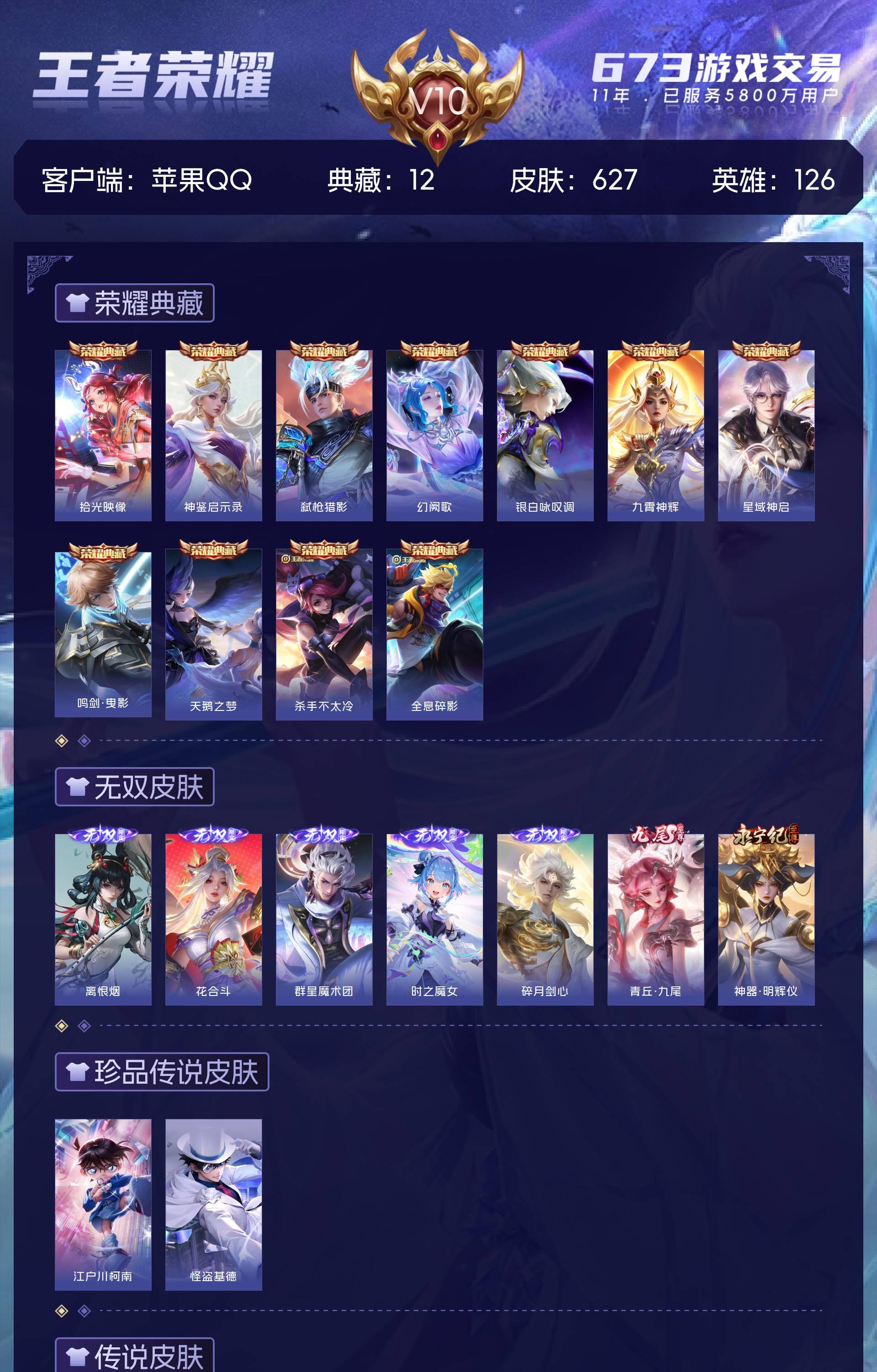 V10 皮肤627 英雄126 荣耀黄金 荣耀典藏12 无双皮肤7 珍品传说2 星传说9 传说111 其他皮肤501