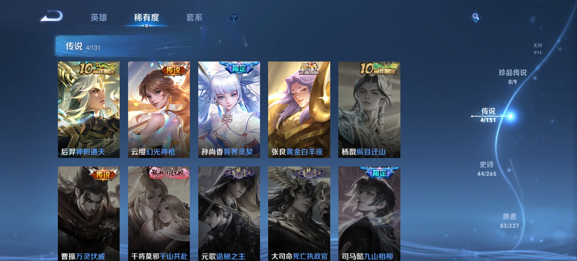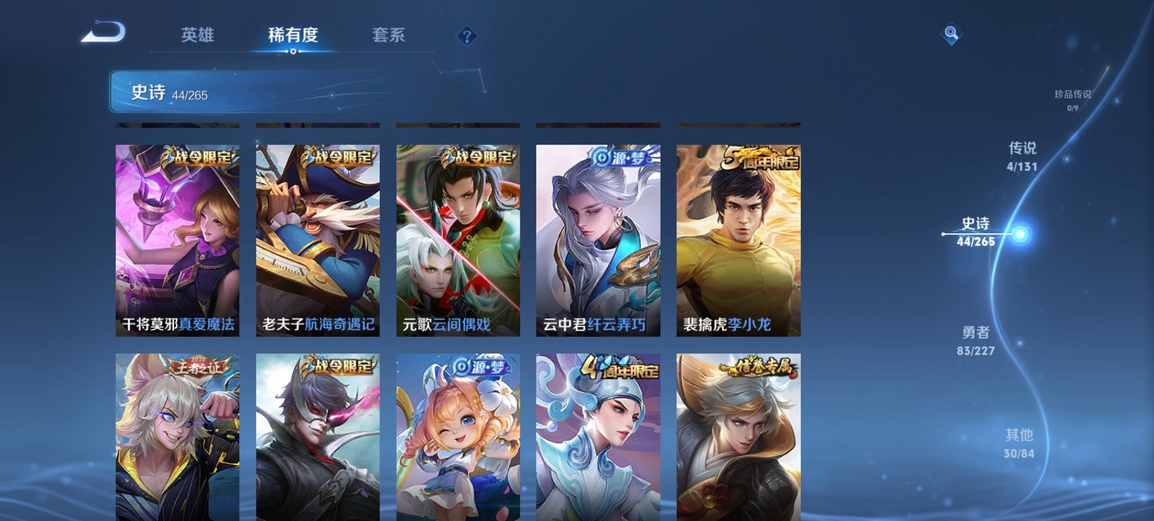 498-【161皮肤4传说、秒换绑不用等】安卓QQ-126英雄-161皮肤【传说皮肤】神树通天、异界灵契、黄金白羊座、幻光神枪【史诗皮肤】江河有灵、天穹祈灯、石田雨龙、逆浪荇歌、百相守梦、万物之道、织梦人、涂山容容、幽灵船长、繁星吟游、拒霜思、女仆咖啡、魅力维加斯、鹰眼统帅、冰霜恋舞曲、真爱魔法、鬼剑武藏、水晶猎龙者、青春决赛季、暗隐猎兽者、航海奇遇记、千年之狐、逐浪之夏、紫霞仙子、电玩小子、圣诞狂欢、暗影游猎、金属风暴、龙骑士、梁祝、李小龙、猫狗日记、水果甜心、乘风破浪、摇滚巨星、云间偶戏、纤