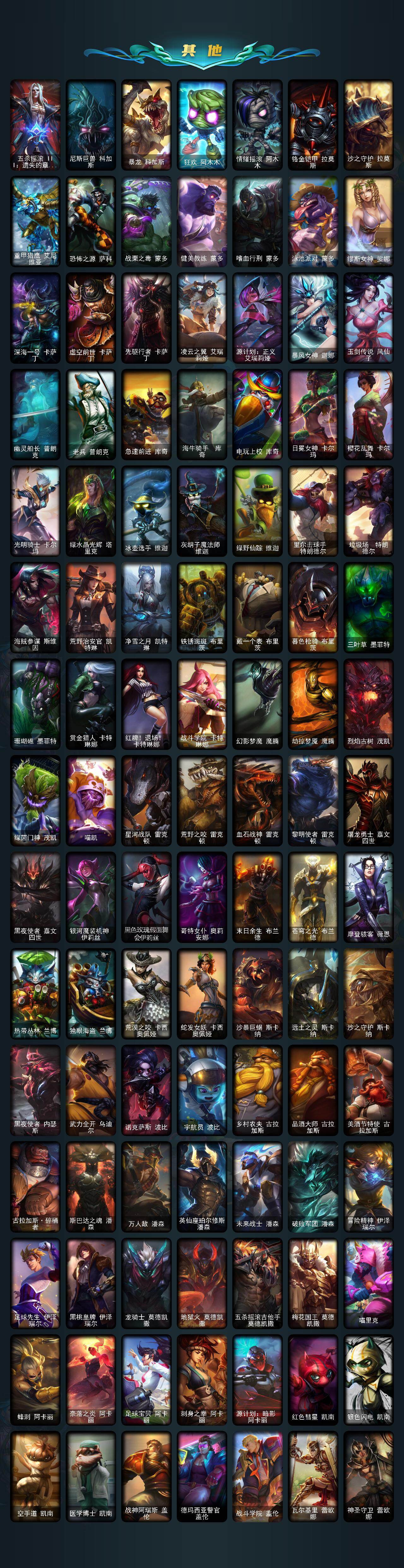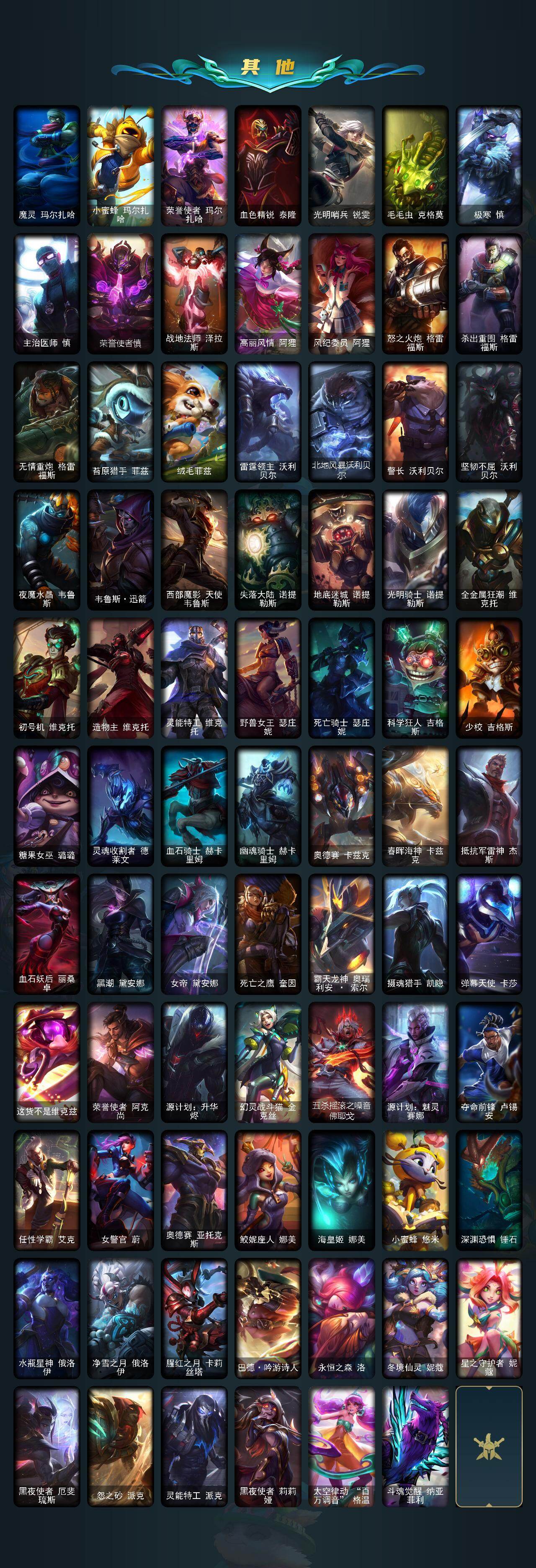 【臻彩皮肤】:天龙之子卡莎飞龙乘云,墨之影武者亚索金墨耀影,冠军掠夺者卡兹克凯旋圣装,幻灵战斗猫金克丝梦幻强袭,泳池派对奥莉安娜优雅珠光鲸,魔女阿卡丽虚荣,净雪之月莫甘娜冬虹