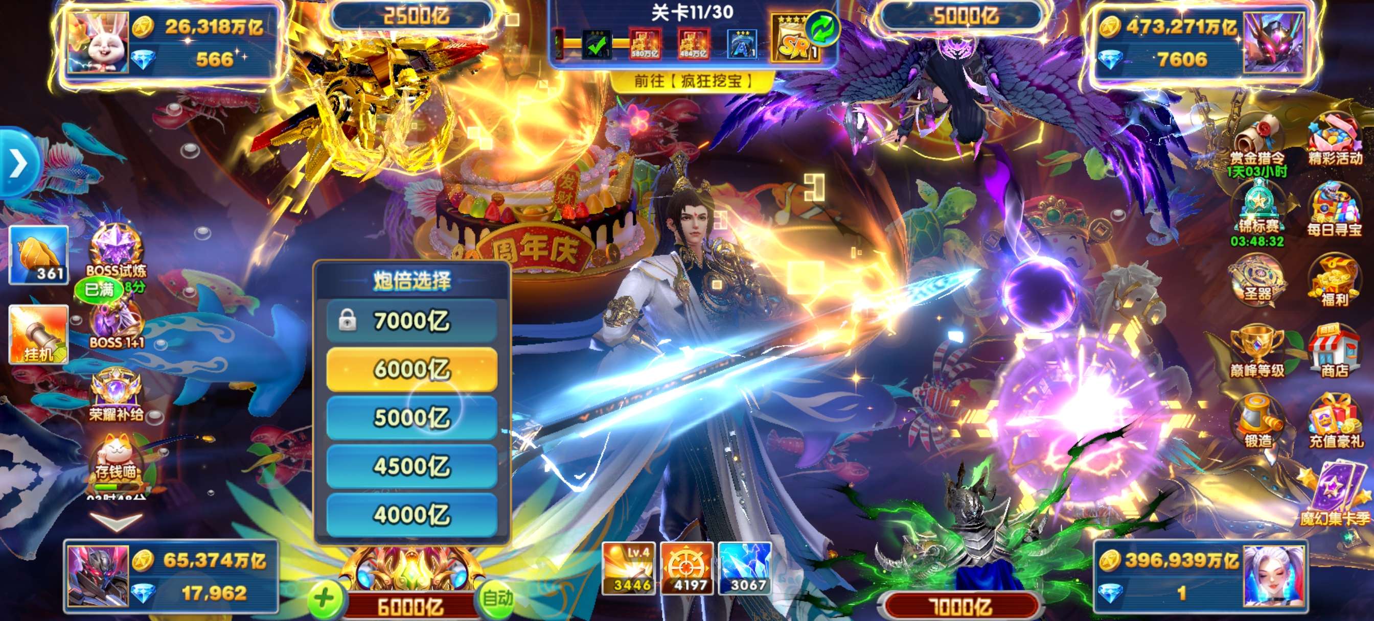 捕鱼大作战小米版本,原60亿炮,金币6.5兆,巅峰13级,破产回15,低价出售。