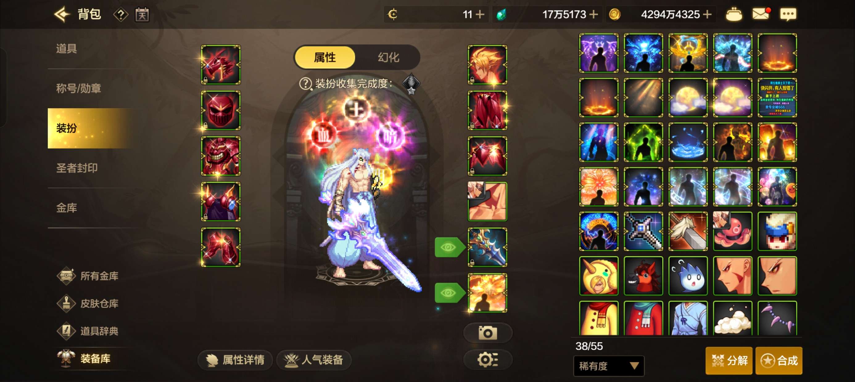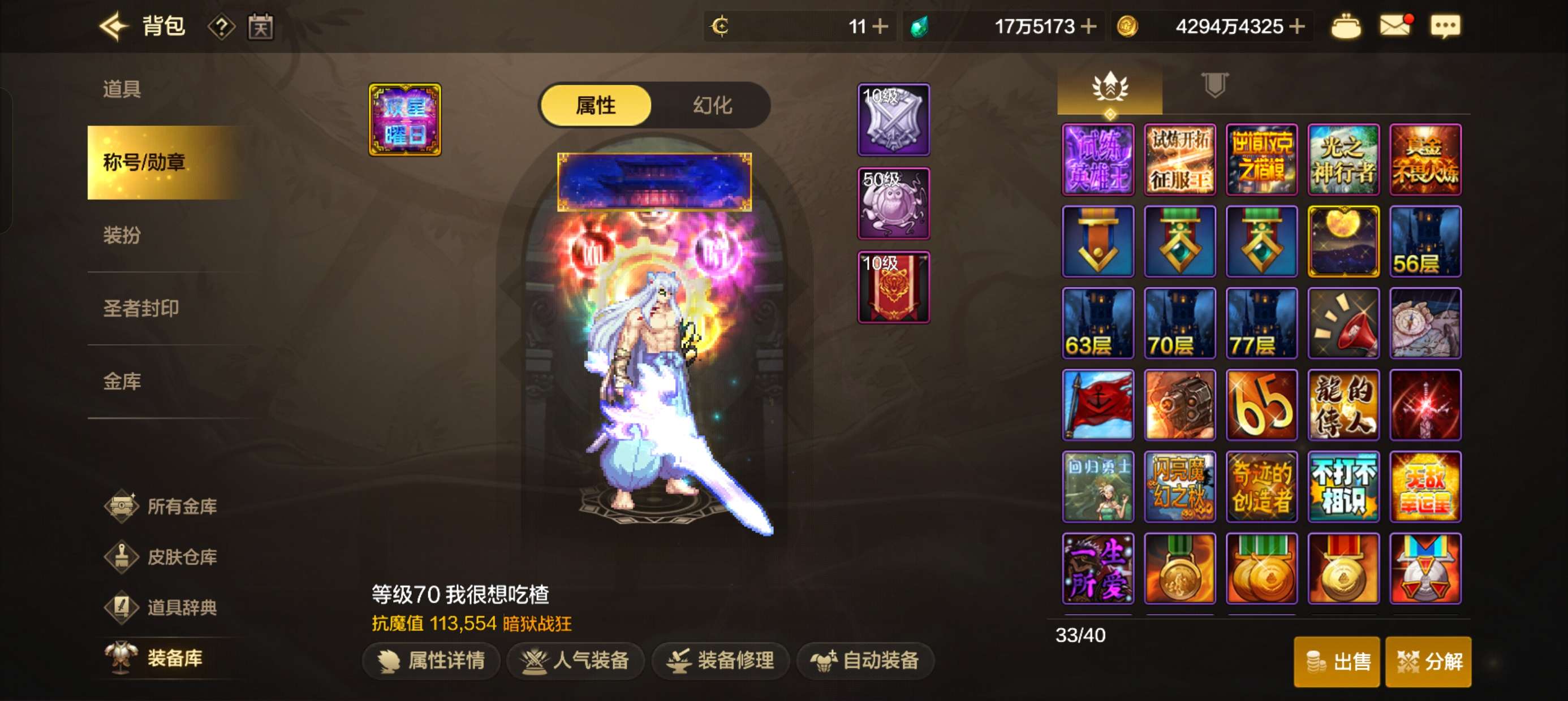 万氪大宝剑,增幅9武器和8胚子,史诗神器顶级技能宠物,11.3万战力,社交限制了不影响游戏