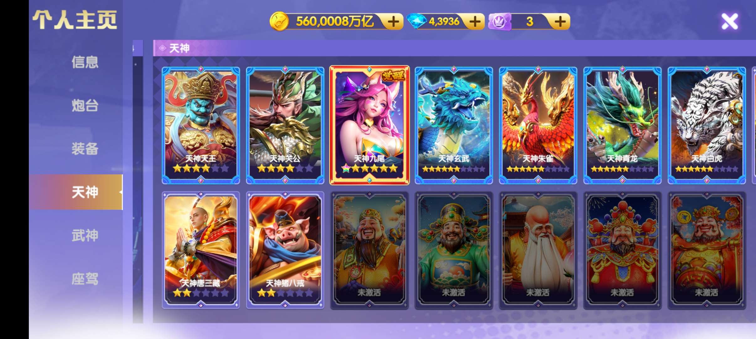 官方手机号登陆,可换绑,暴击率高,起号快速,天神炮台都有