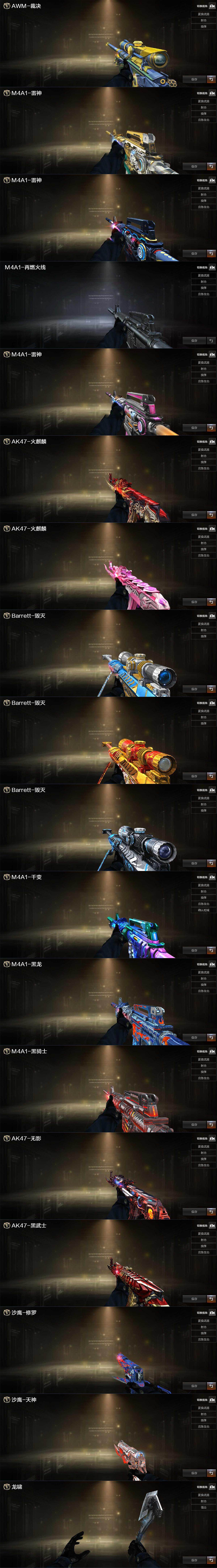 【音效卡】:AK47-火麒麟音效卡,M4A1-雷神音效卡,M4A1-黑骑士音效卡,Barrett-毁灭音效卡,70KG语音包,Barre