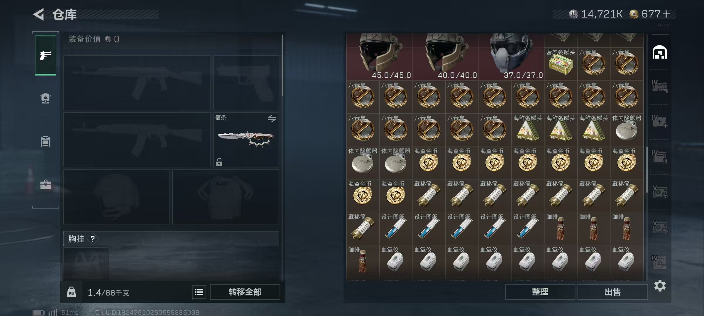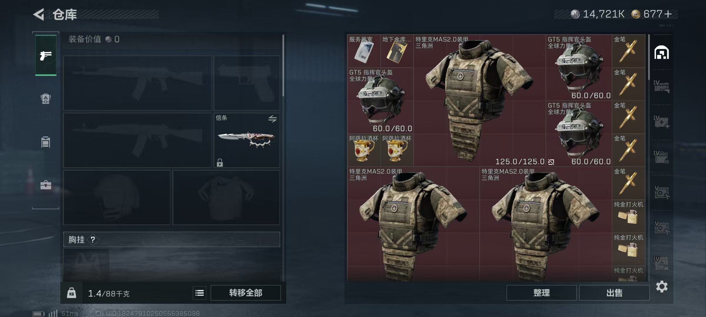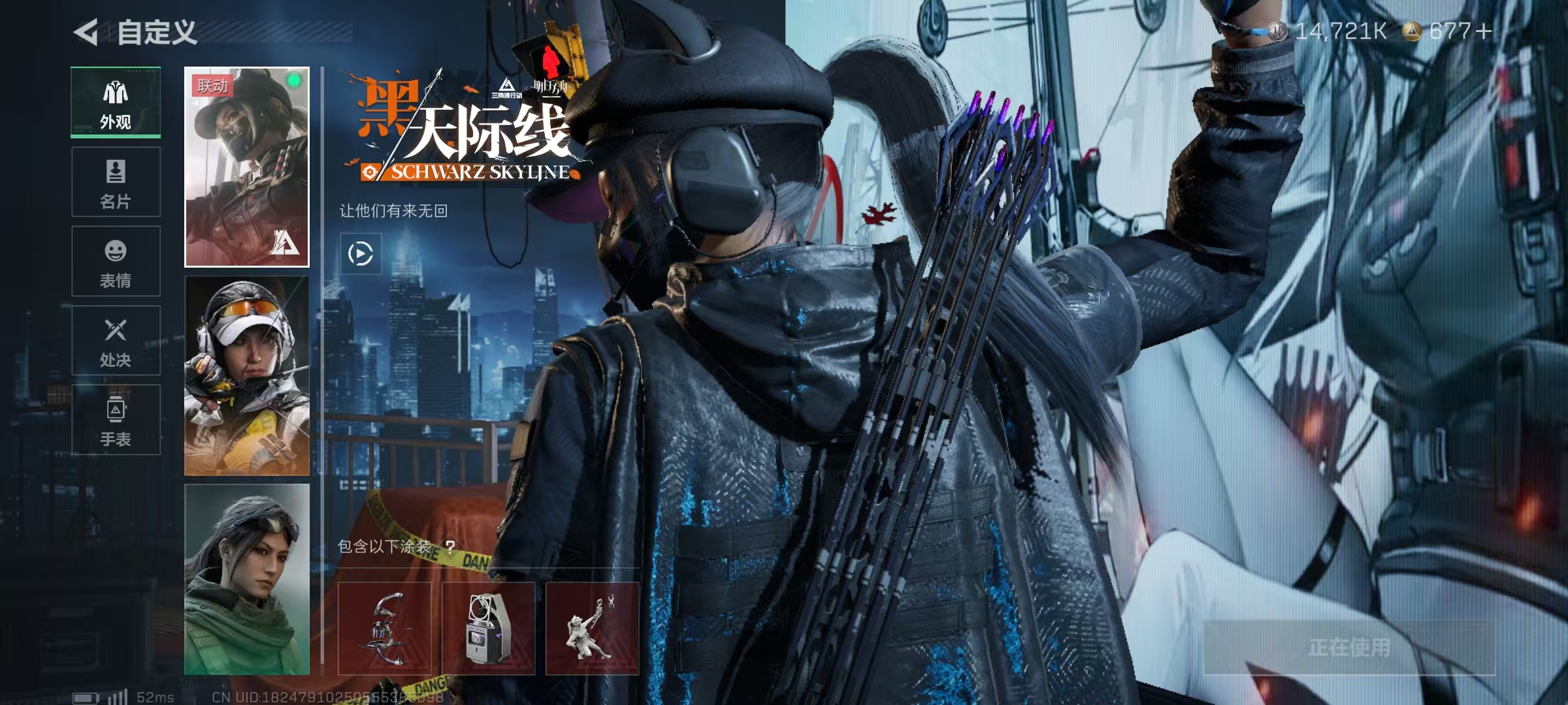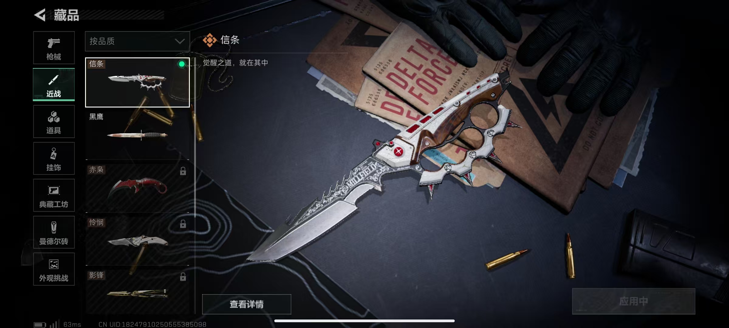 LSJ5004【天际线 蚀金玫瑰 铁面判官 刀皮 信条】【总资产(M)】194.33【哈夫币】14,721.91【行动等级】60【全面战场等级】32【烽火地带段位】三角洲巅峰【干员皮肤】蜂医-送葬人·无题密令 无名-夜鹰 牧羊人-街头之王 红狼-电锯惊魂 红狼-蚀金玫瑰 露娜-金牌射手 露娜-黑·天际线 威龙-壮志凌云 威龙-铁面判官【近战武器】黑鹰 信条【枪皮】SR-25射手步枪-雪地迷彩 AK-12突击步枪-水墨迷彩 G3战斗步枪-水墨迷彩 AUG突击步枪-常青藤 AUG突击步枪-常青藤 A