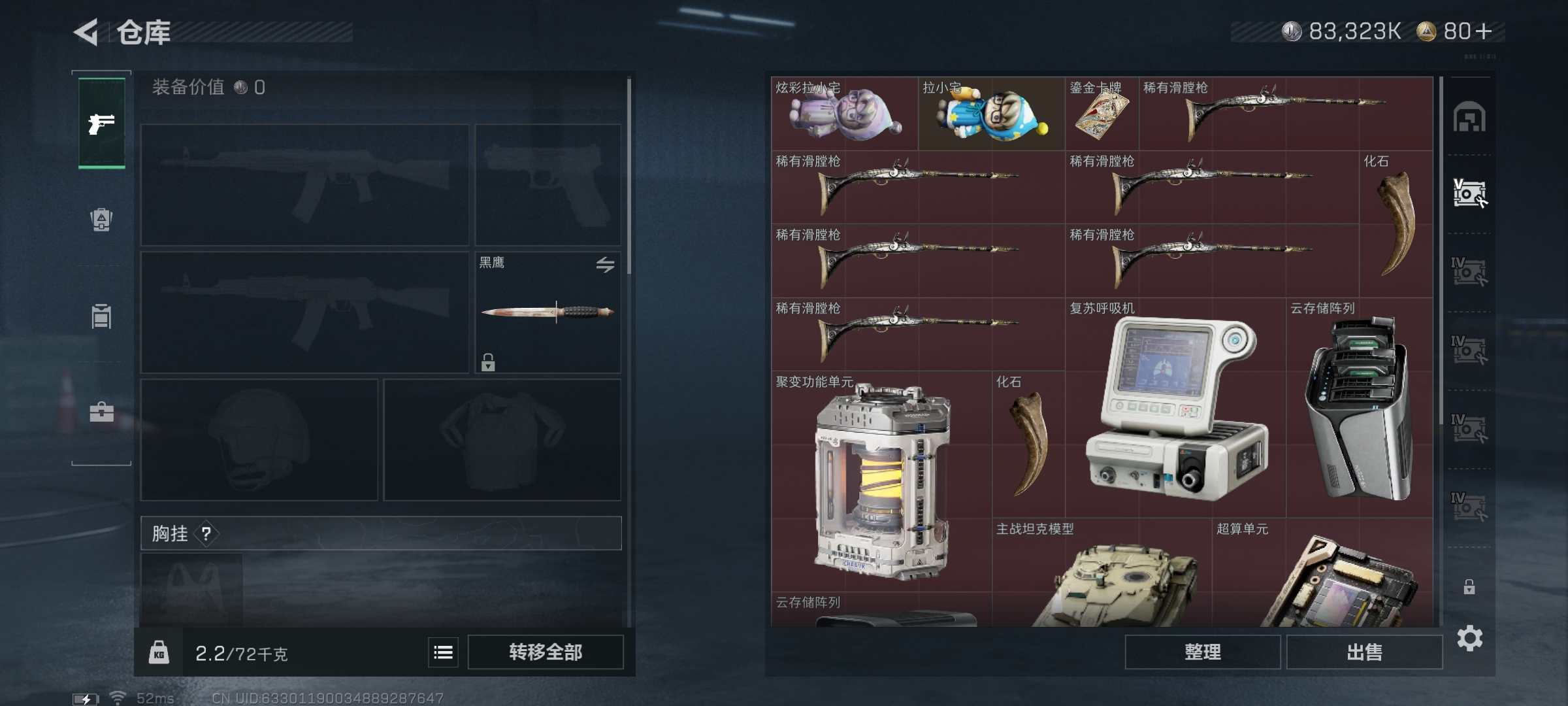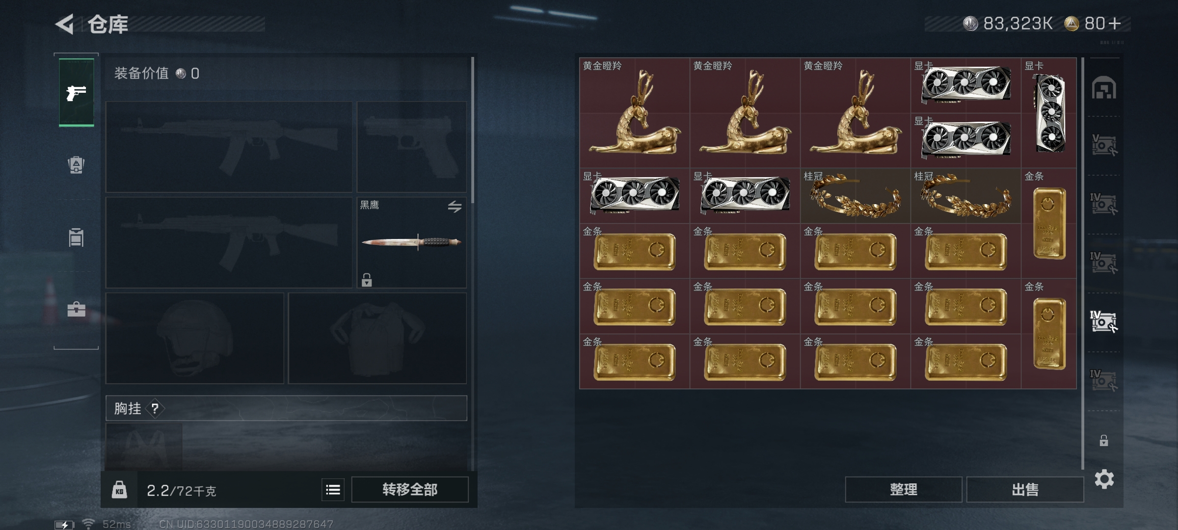 WLSJZ884三端互通-总价值193.8M-哈夫币83323k-烽火地带等级60-烽火地带【近战武器】黑鹰【枪皮】AKM突击步枪-噬菌体 M4A1突击步枪-海色 AKM突击步枪-肃杀 QBZ95-1突击步枪-海浪 QBZ95-1突击步枪-海色 QBZ95-1突击步枪-2026 AKS-74U突击步枪-冰天雪地 M16A4突击步枪-三角洲力量 M16A4突击步枪-高雅黑 AUG突击步枪-浅蓝涂装 M7战斗步枪-红色涂装 M7战斗步枪-黑巧甜心 SG552突击步枪-海浪 SG552突击步枪-202