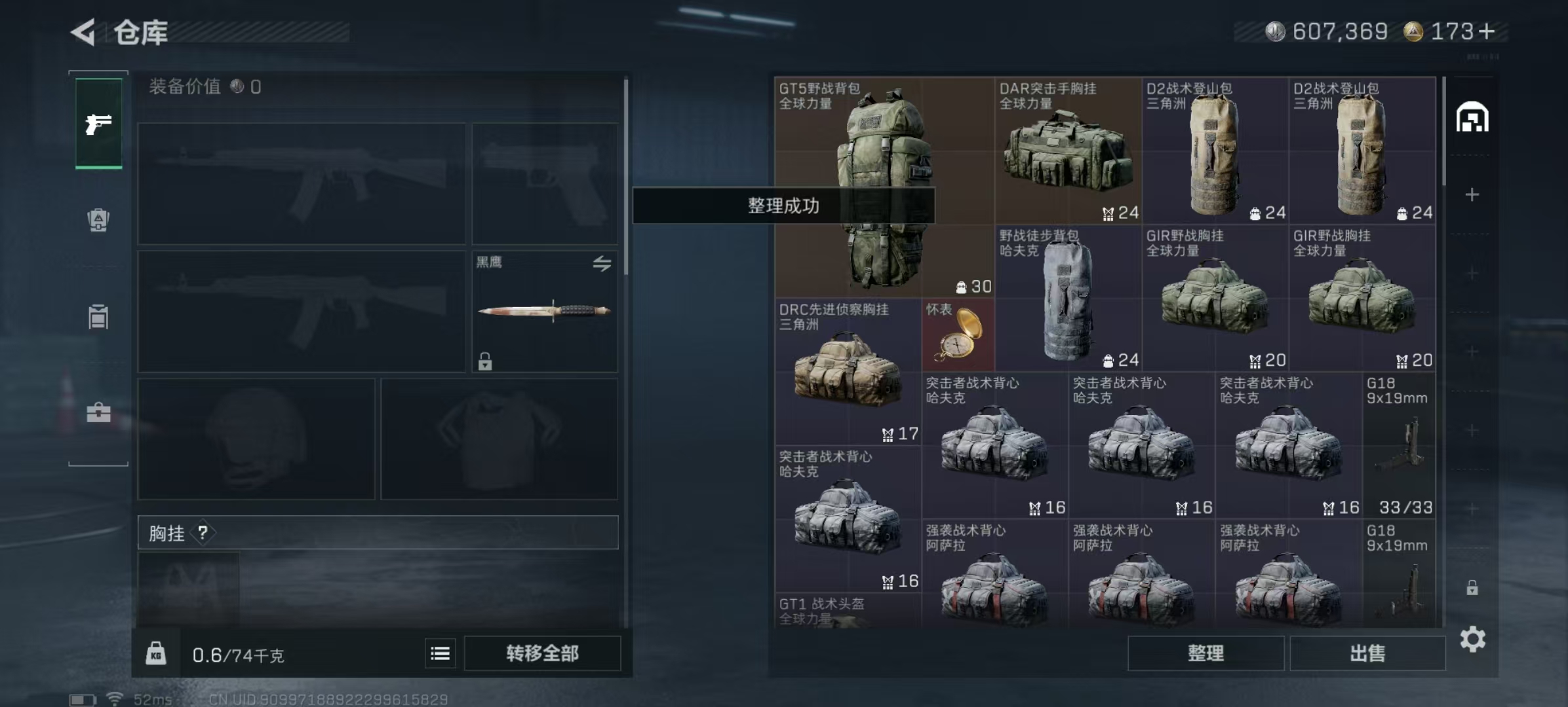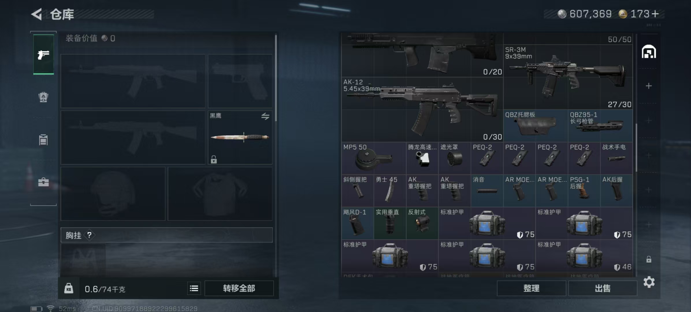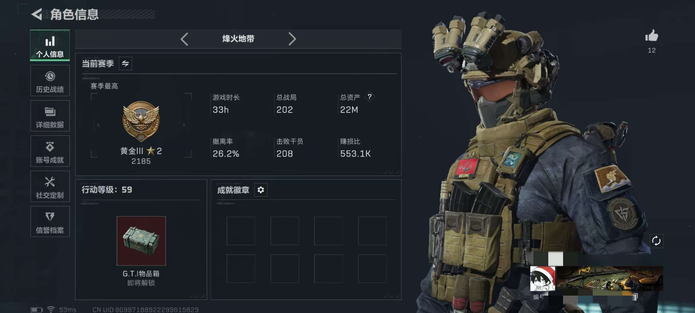【总资产(M)】22.02 【哈夫币】607.37 【行动等级】59