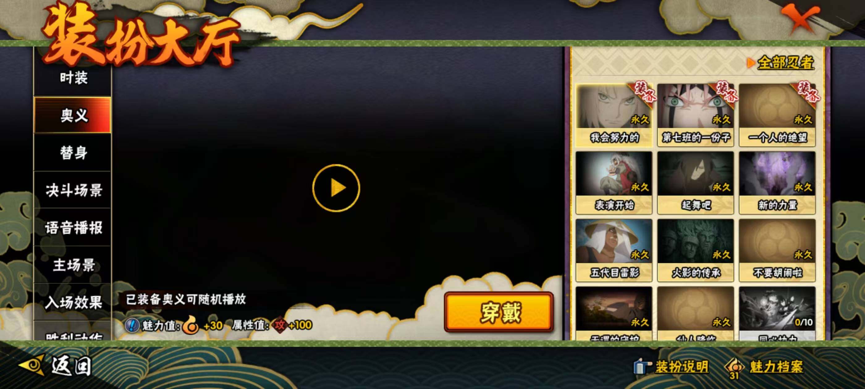 【A级】我爱罗「疾风传」 迈特凯「青春爆炸」 药师兜「半蛇斗篷」 宇智波泉奈 神秘面具男「忍者之路」 神农「羁绊」 旗木卡卡西「幻之真容」 飞段 迈特凯 漩涡鸣人「九尾查克拉」 长门「青年」