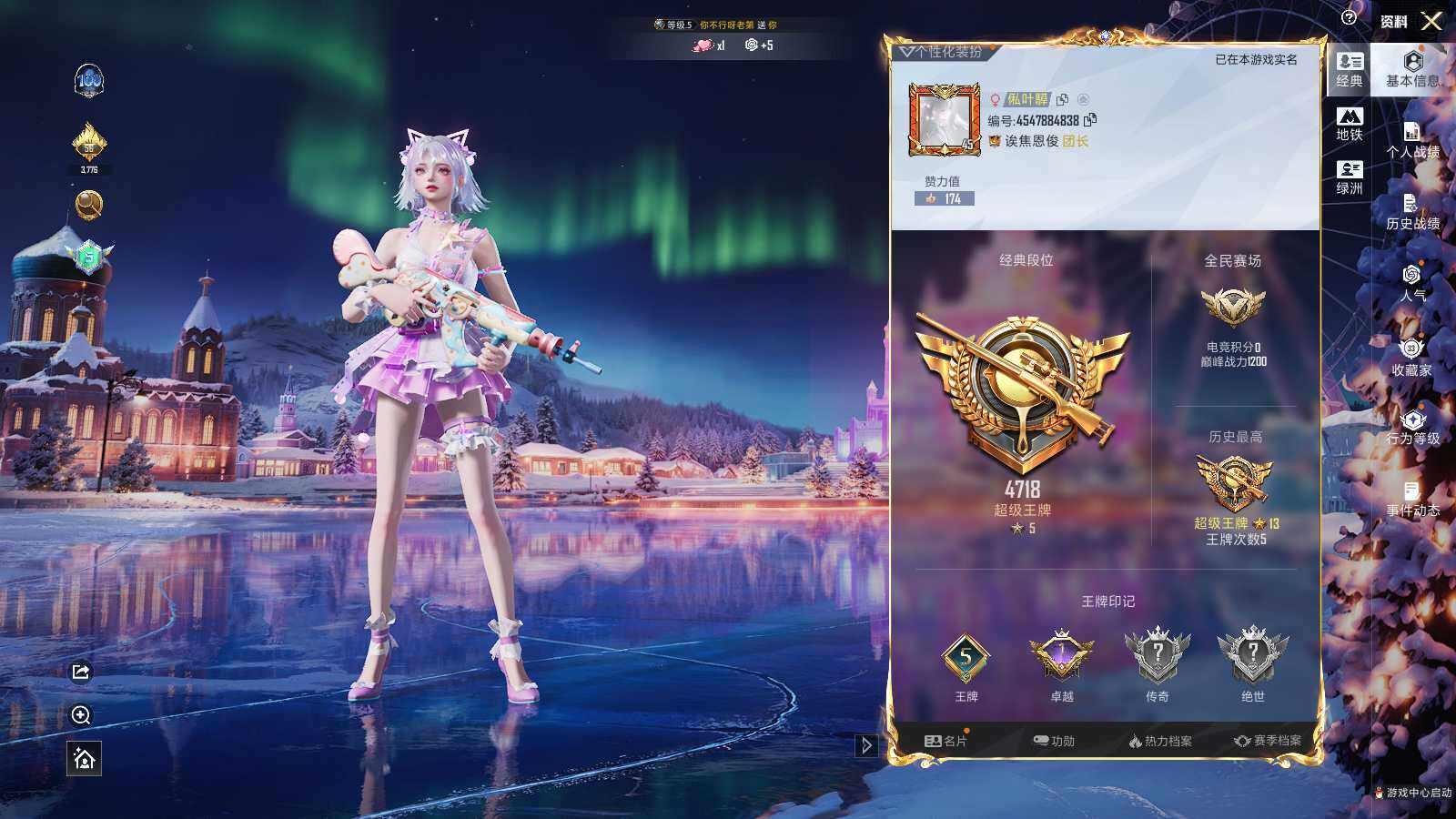 安卓 手Q-1粉装-4特效枪-0载具-1粉色飞行器-19993热力值-5王牌印