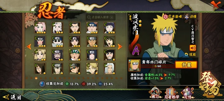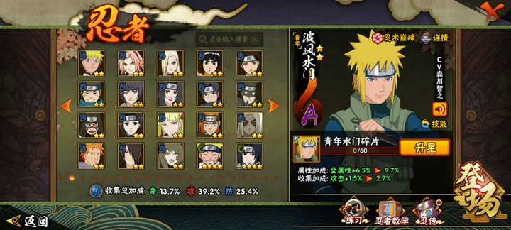 【A级】我爱罗「疾风传」 猿飞木叶丸 迪达拉 志村团藏 神秘面具男「忍者之路」 漩涡鸣人「九尾查克拉」 宇智波鼬 波风水门「青年」 干柿鬼鲛 宇智波泉奈 黑土「四代目土影」 迈特凯「青春爆炸」