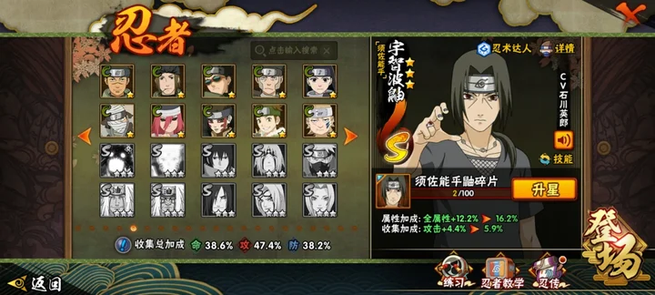 【A级】旗木卡卡西「忍界大战」 角都「秽土转生」 波风水门「青年」 秋道丁次「忍界大战」 宇智波鼬 巳月「仙人模式」 蝎 迈特凯 宇智波泉奈 旗木卡卡西「幻之真容」 桃地再不斩「秽土转生」 猿飞阿斯玛 迈特凯「青春爆炸」 长十郎「六代目水影」 飞段