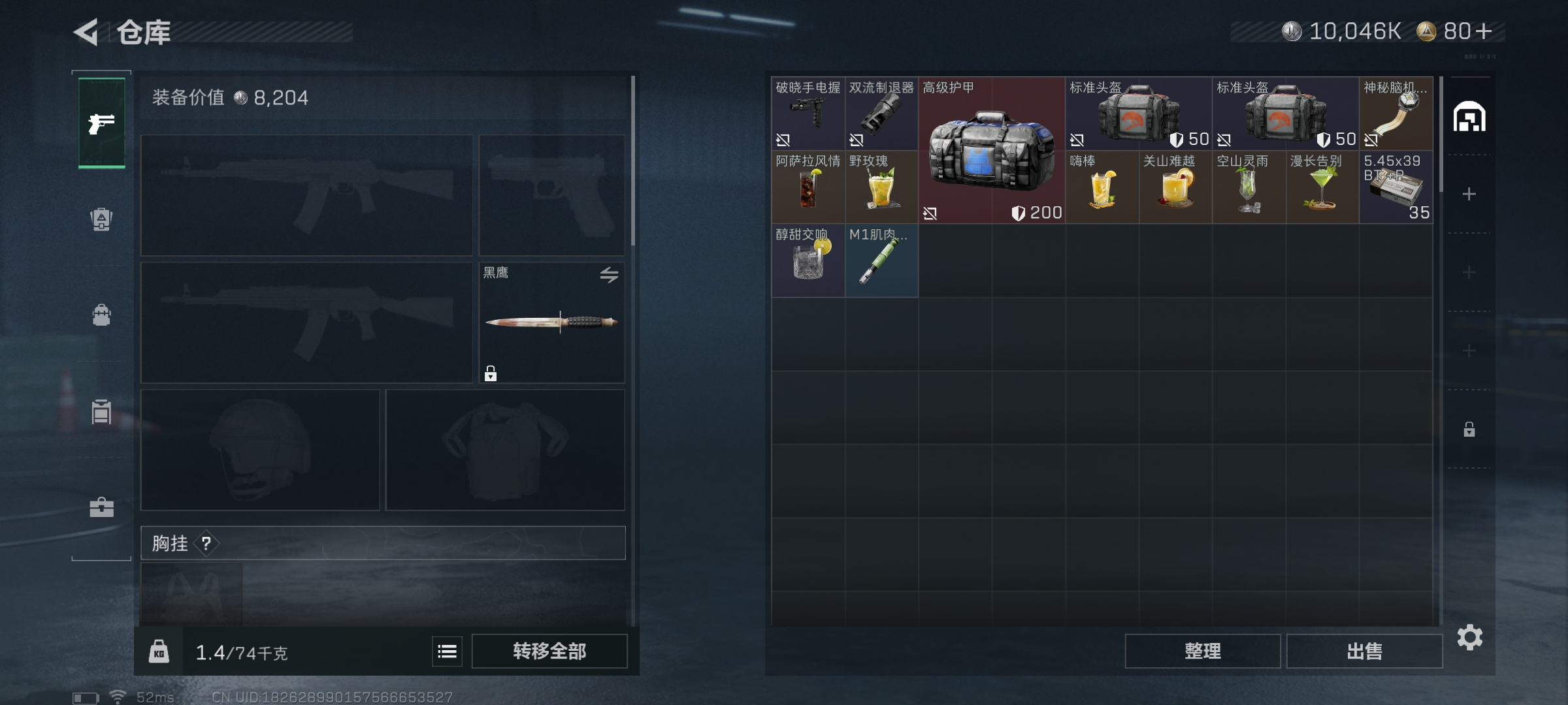 三端互通-总价值15.2M-哈夫币10046k-烽火地带等级49