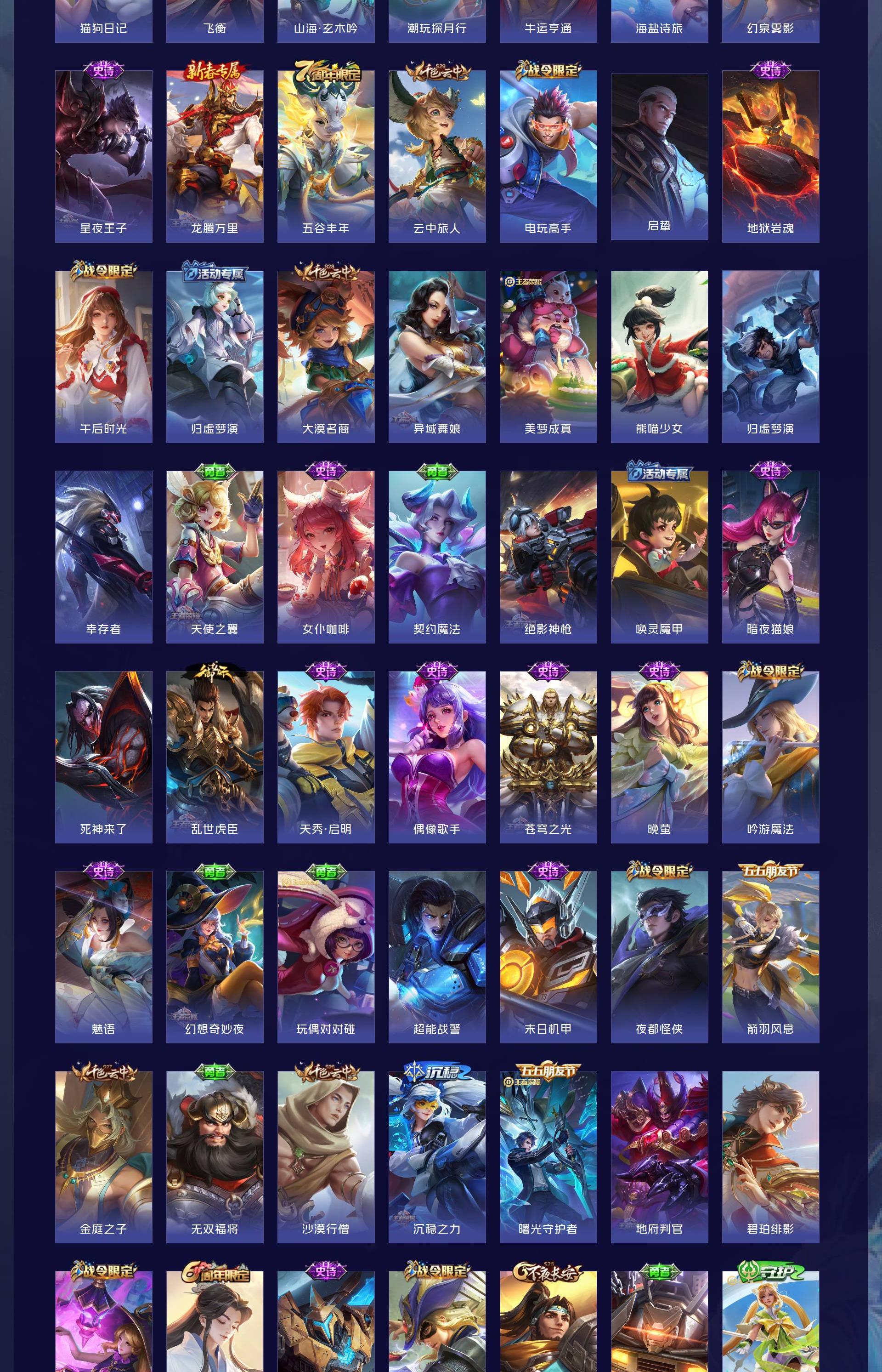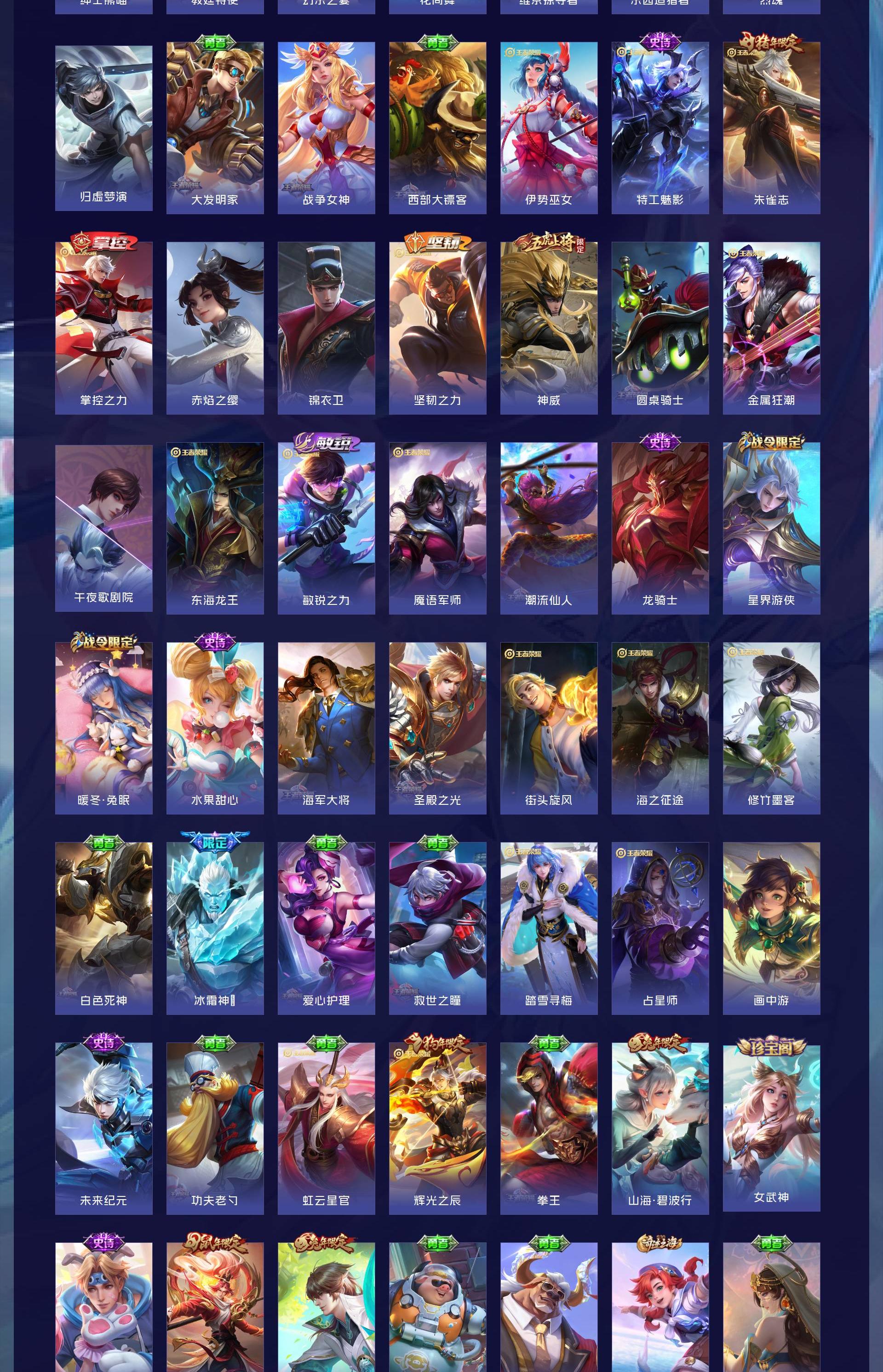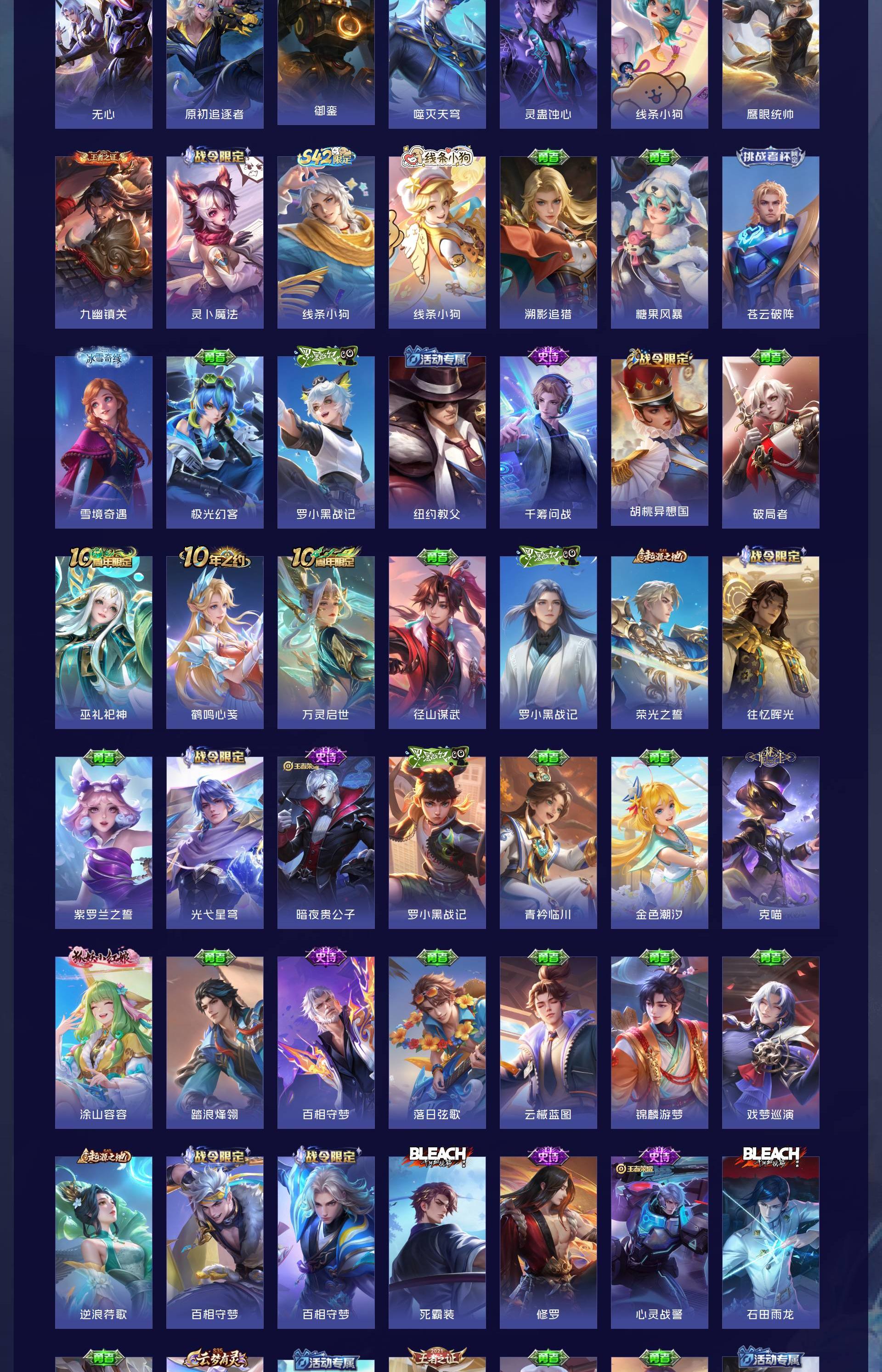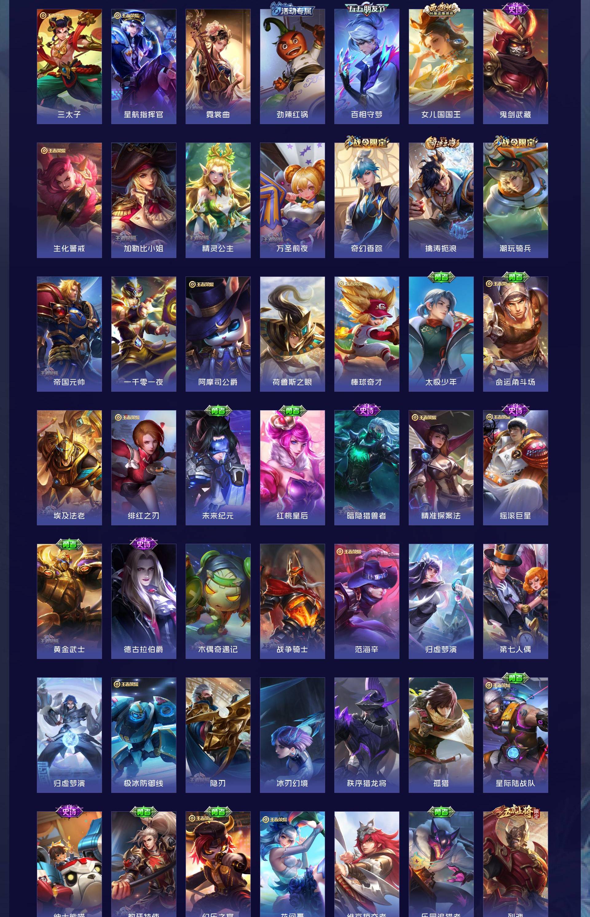 V10 皮肤429 英雄129 非凡王者 荣耀典藏14 无双皮肤3 珍品传说1 星传说6 传说38 其他皮肤378
