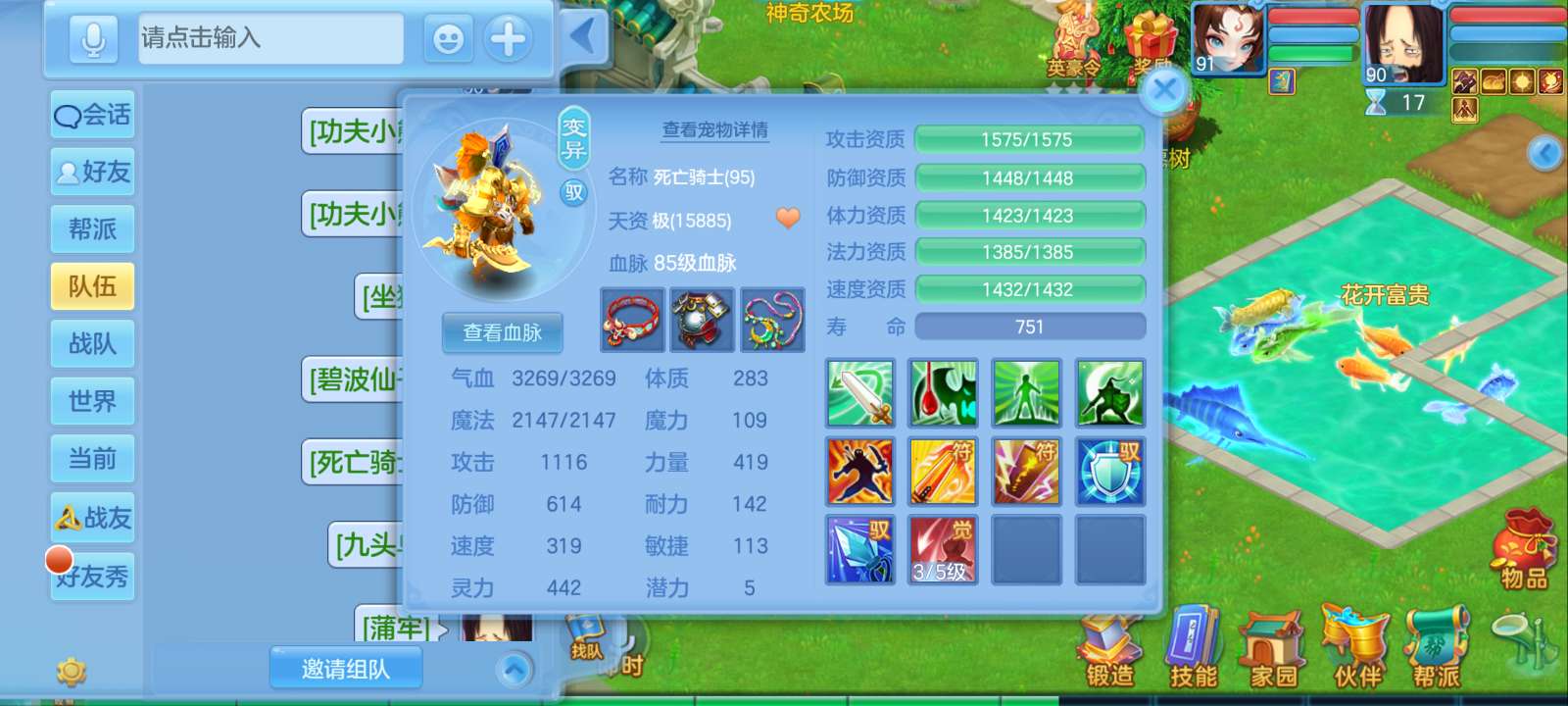 神兽内胆蛇,满技能:海马,拜月狐狸2只,九头鸟,死骑,坐狮,大波…等