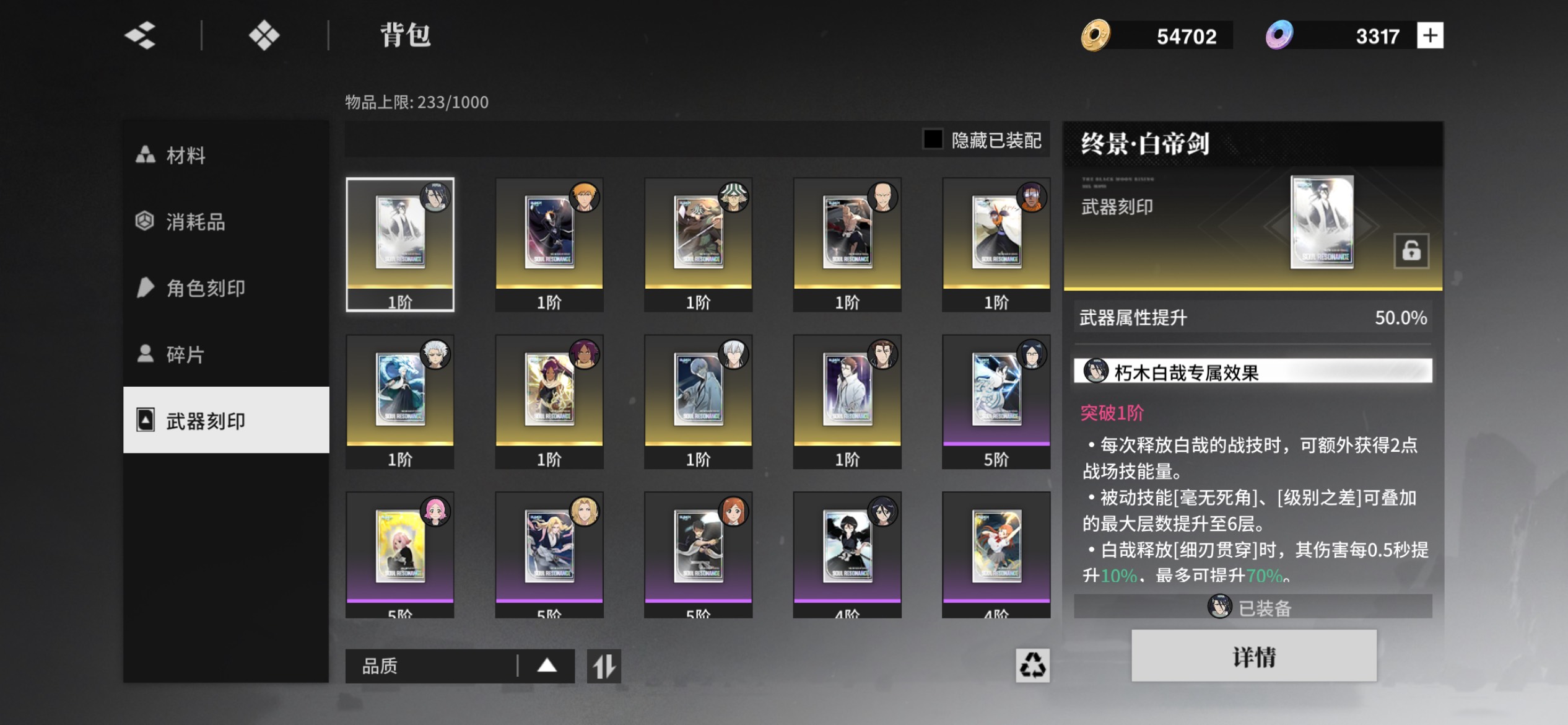 2命蓝染+店长,1命一户+银,全角色号里还有4千玉,角色武器刻印都有,角色齐全。