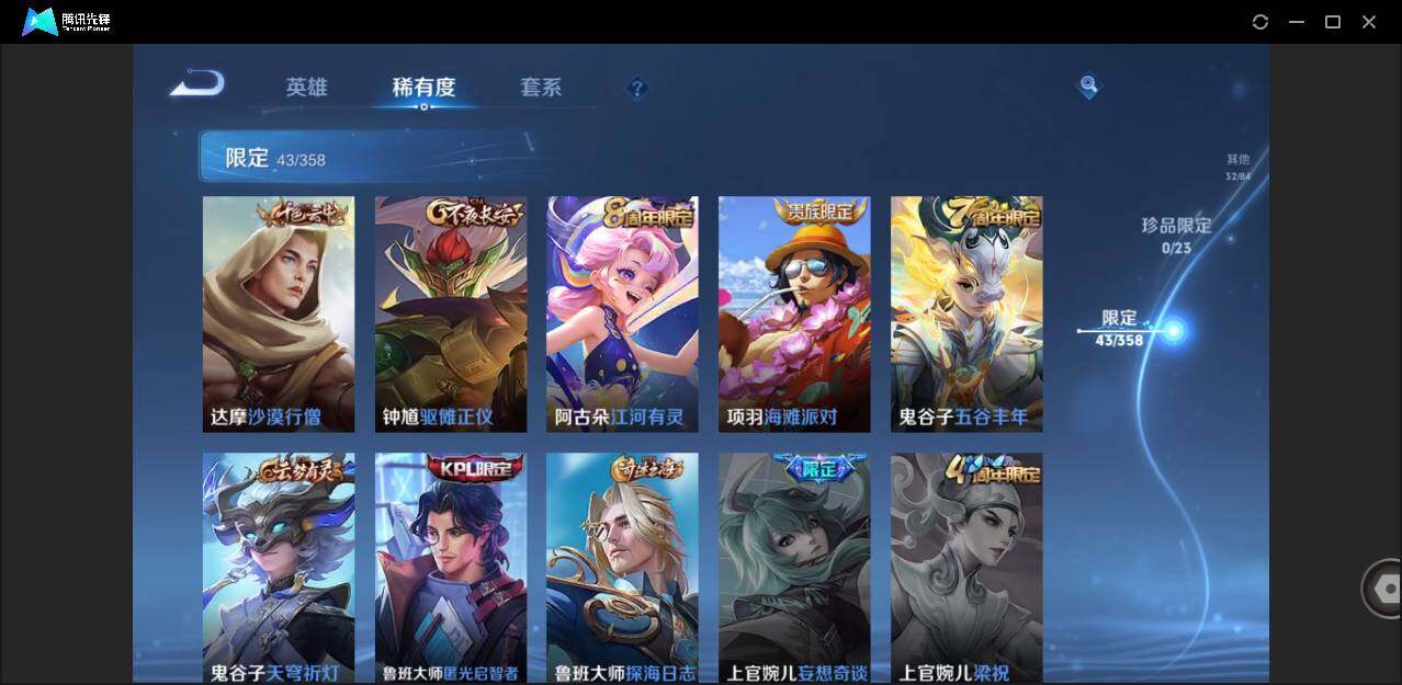 【W5109】路在脚下天幕-安卓Q区-无二次-贵6-127英雄-153皮肤-5传说-43史诗-43限定-3按键-246夺宝值-枫霜尽/无双飞将/猫影幻舞/神树通天/朱雀志/瑞麟志/万灵启示/江河有灵/电玩·爆裂旋风/匿光启智者/遇见飞天/曙光守护者-贵族积分1.6W-