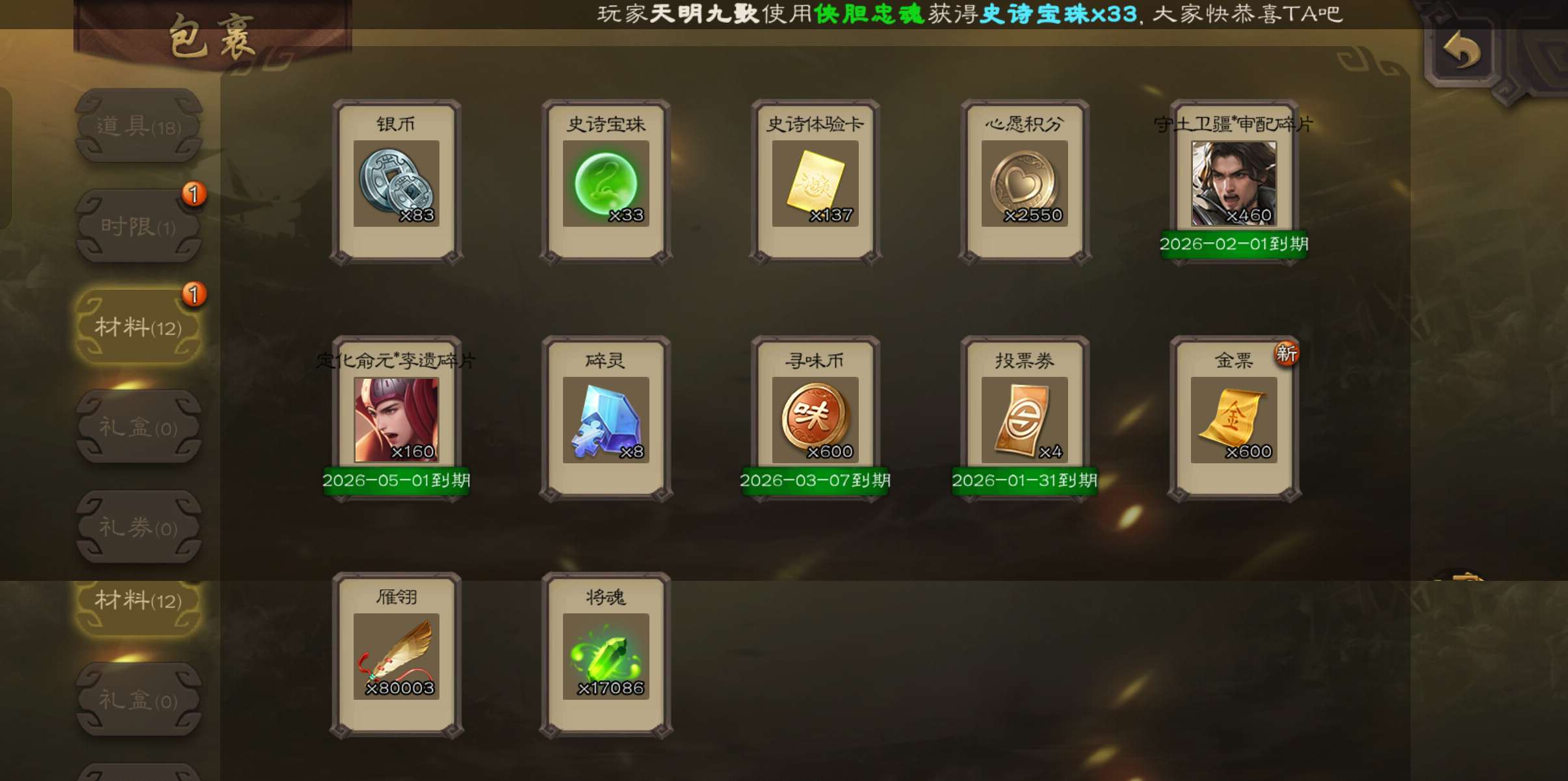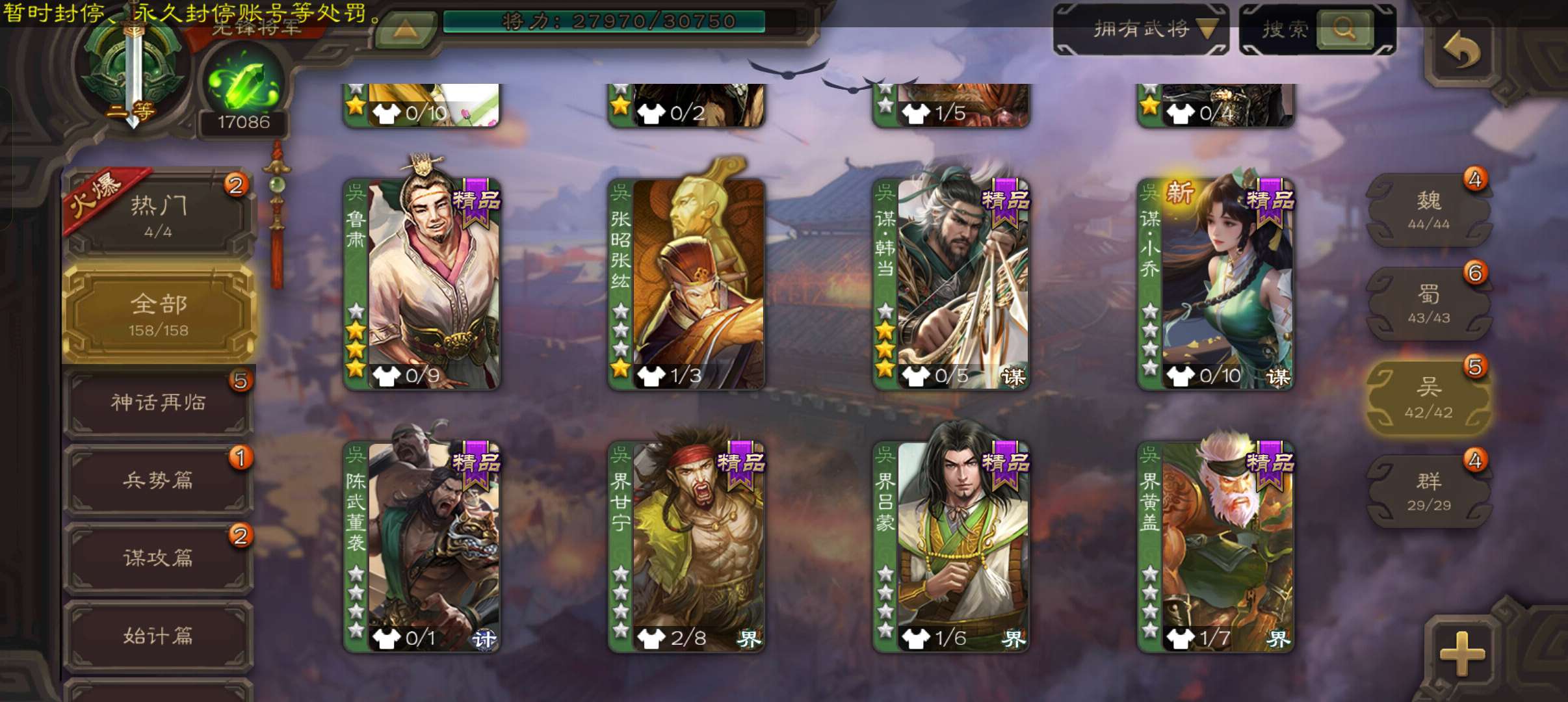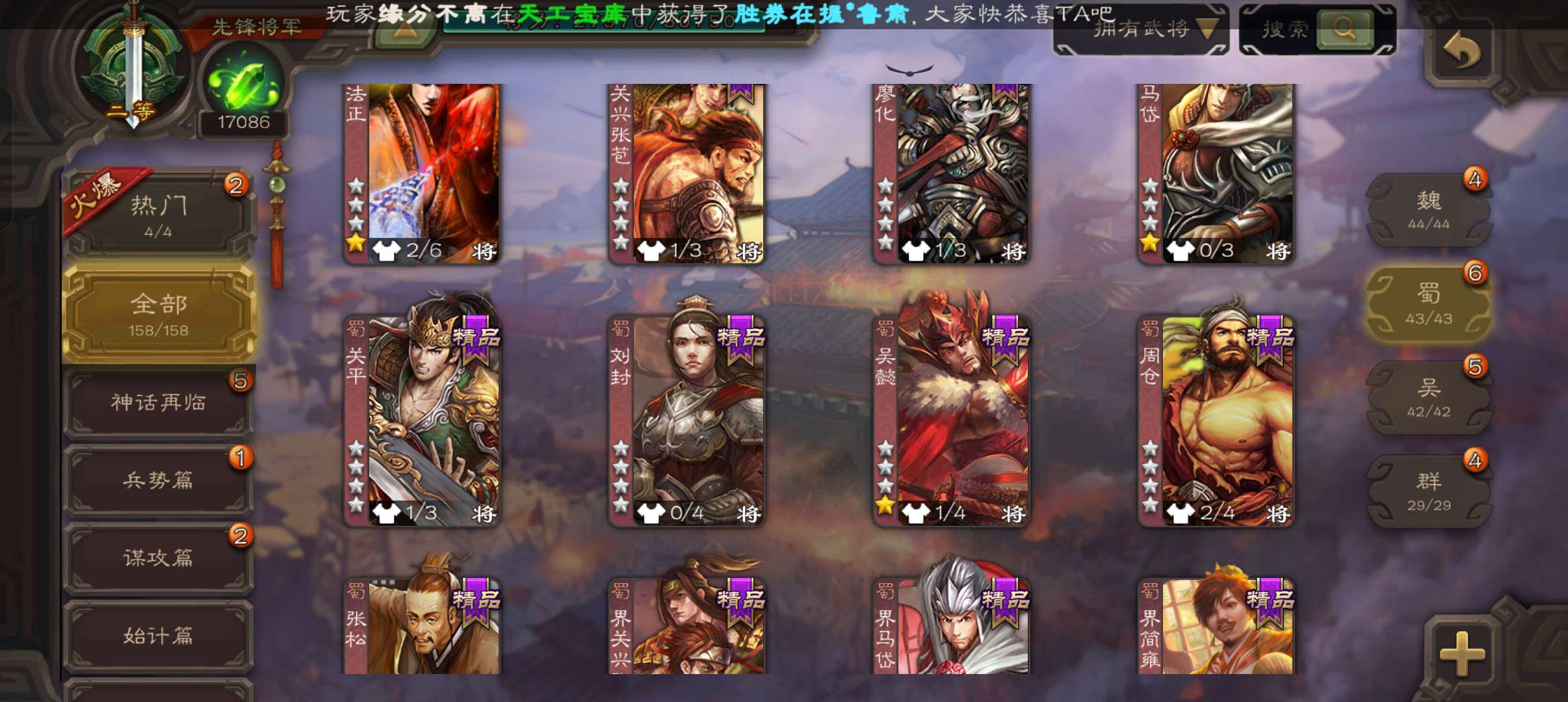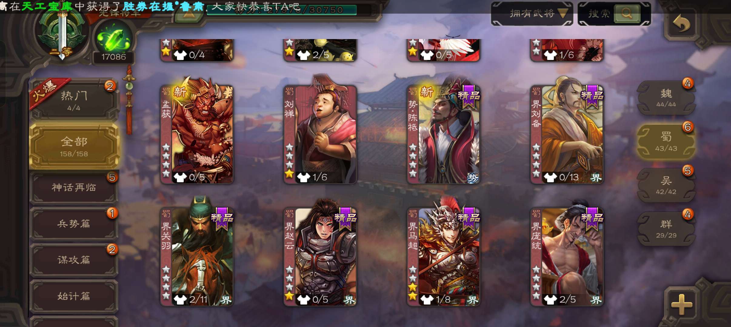 33宝珠8万羽毛1.7万将魂,张春华鲁肃sp赵云孔融谋韩当谋卢植谋小乔158将