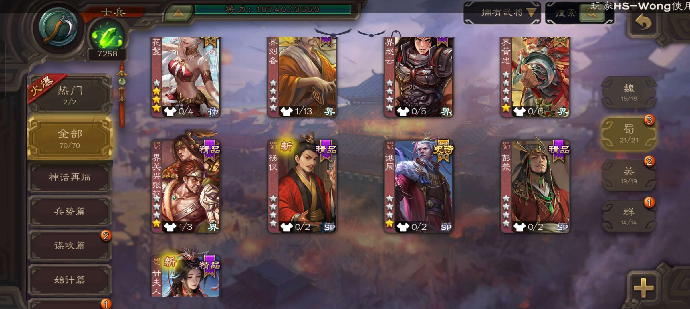 无废将超级兵,32宝珠8万羽毛7250魂,花鬘谯周界黄忠3史诗,甘夫人谋韩当谋小乔70将,140令