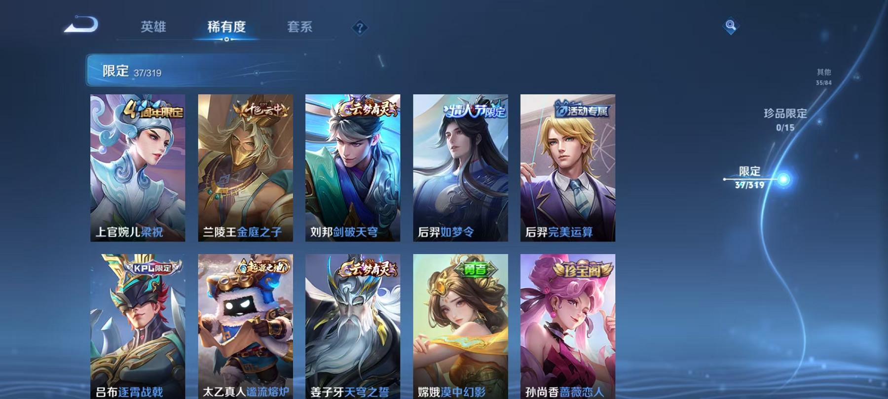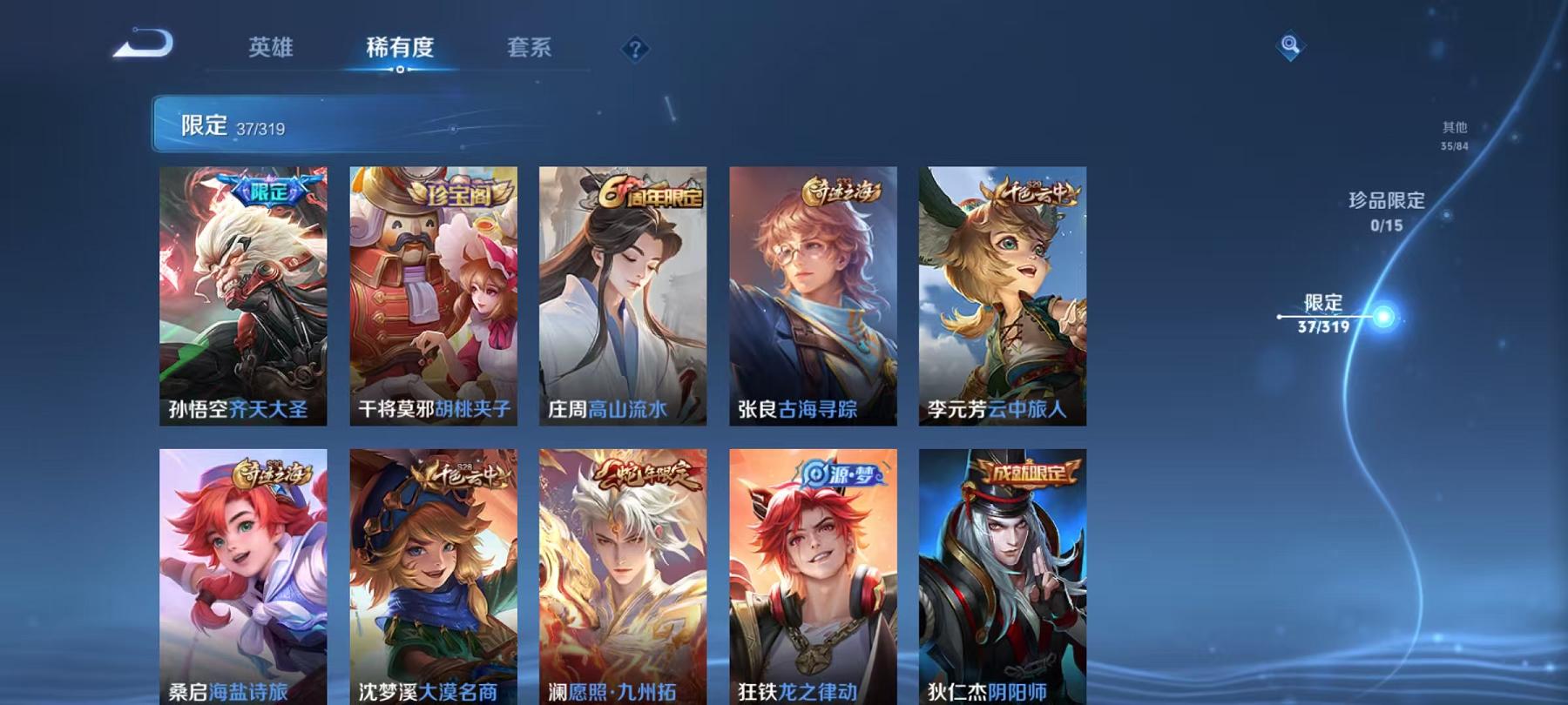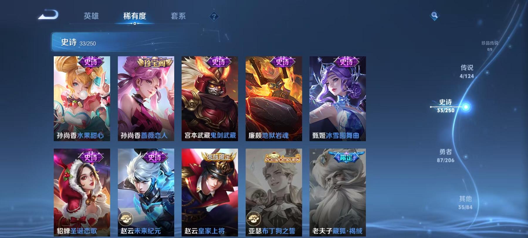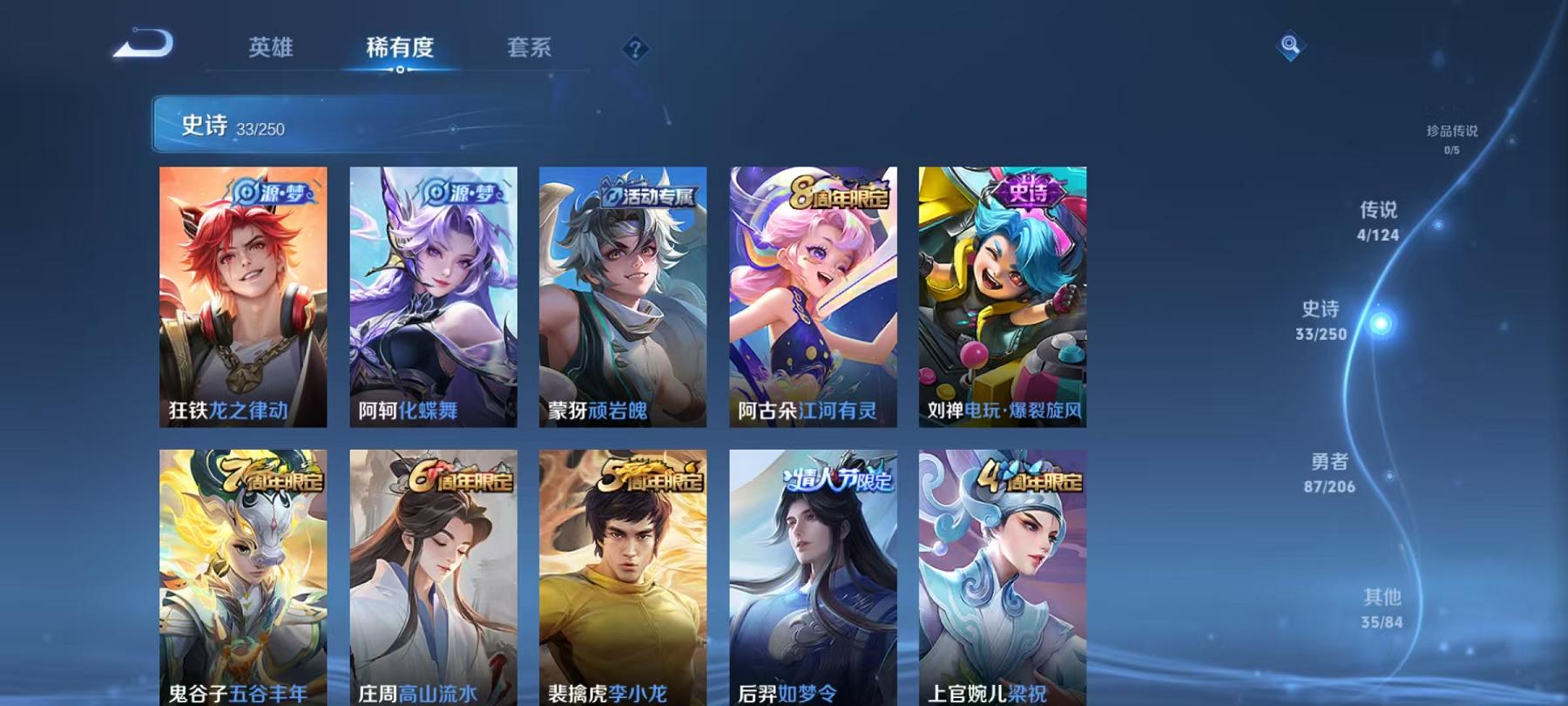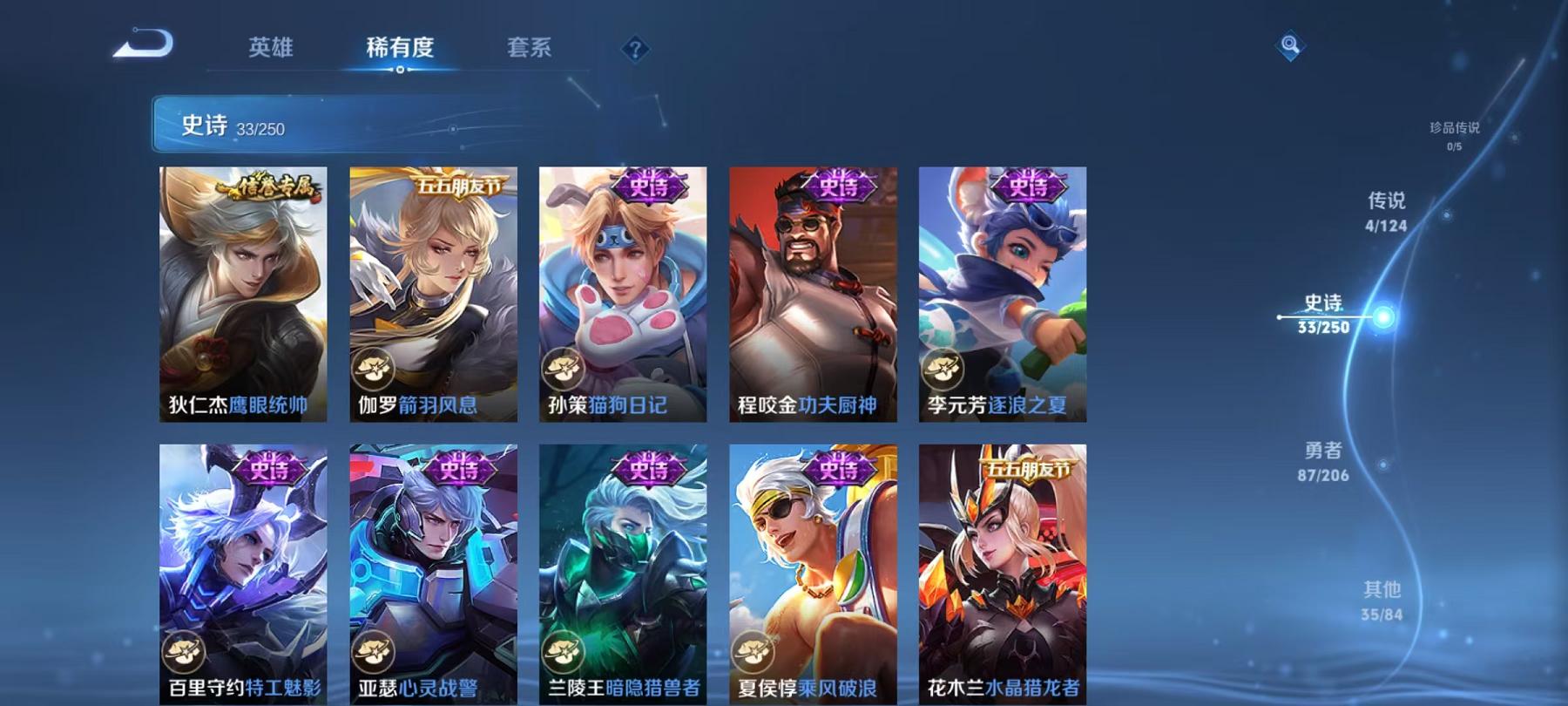 954-可二次【4传说】安卓QQ-122英雄-159皮肤【传说皮肤】霜月吟、霜月吟、愿照·九州拓、齐天大圣、黄金射手座【史诗皮肤】如梦令、电玩·爆裂旋风、幽灵船长、功夫厨神、女仆咖啡、魅力维加斯、鹰眼统帅、圣诞恋歌、箭羽风息、鬼剑武藏、水晶猎龙者、暗隐猎兽者、逐浪之夏、地狱岩魂、圣诞狂欢、金属风暴、梁祝、李小龙、猫狗日记、水果甜心、蔷薇恋人、乘风破浪、心灵战警、皇家上将、冰雪圆舞曲、高山流水、五谷丰年、未来纪元、特工魅影【勇者皮肤】劲辣红锅、完美运算、古海寻踪、妄想特派、剑破天穹、探海日志、春野