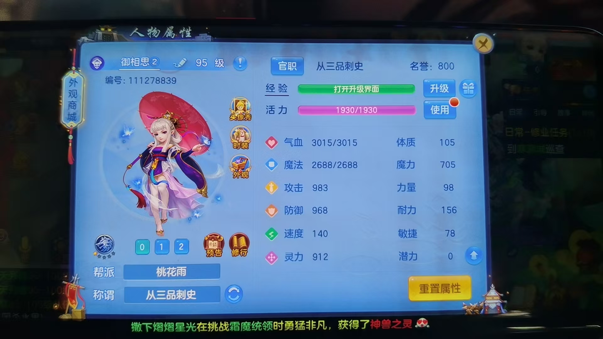 今年勇女魔王610万银+1万积分双端D