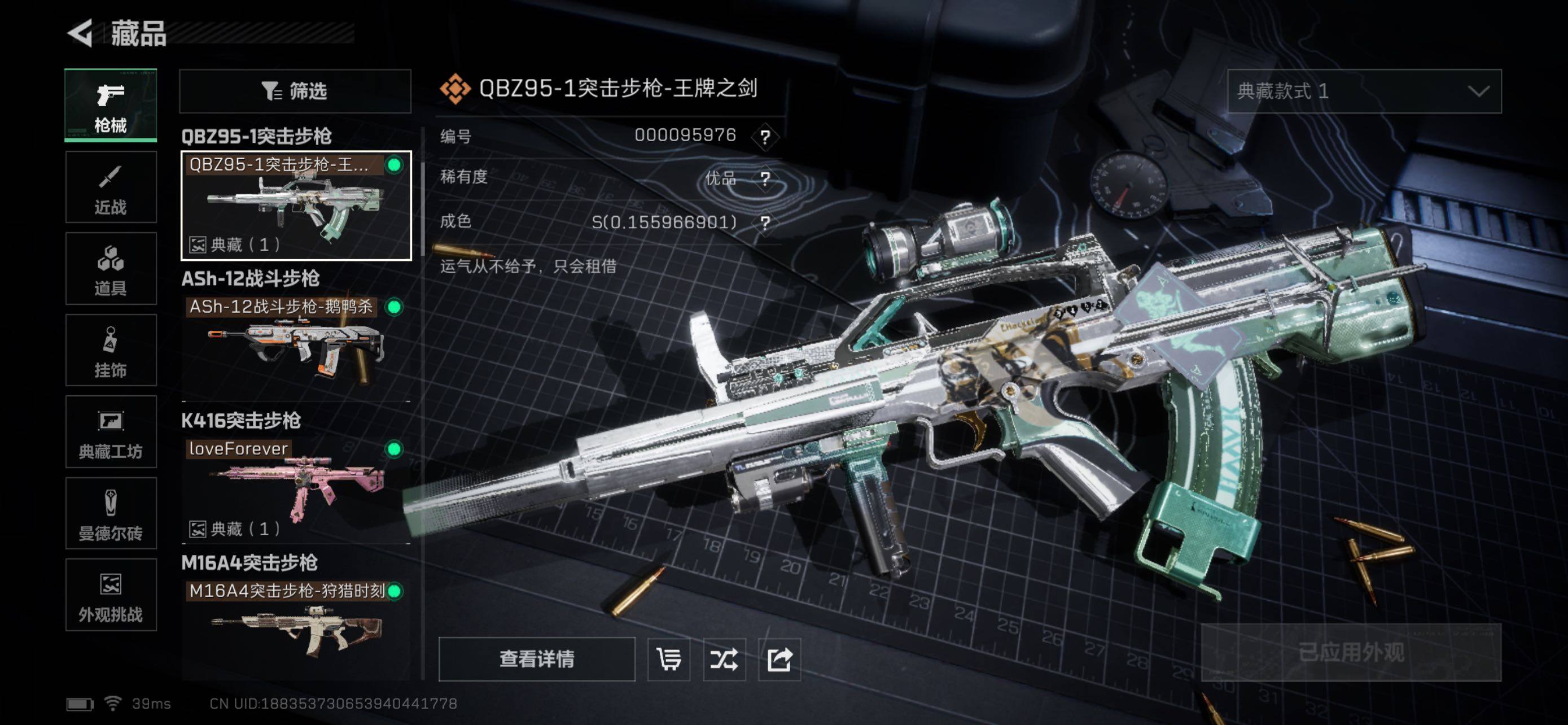 【典藏外观】:QBZ95-1突击步枪-王牌之剑,K416突击步枪-命运,腾龙突击步枪-气象感应