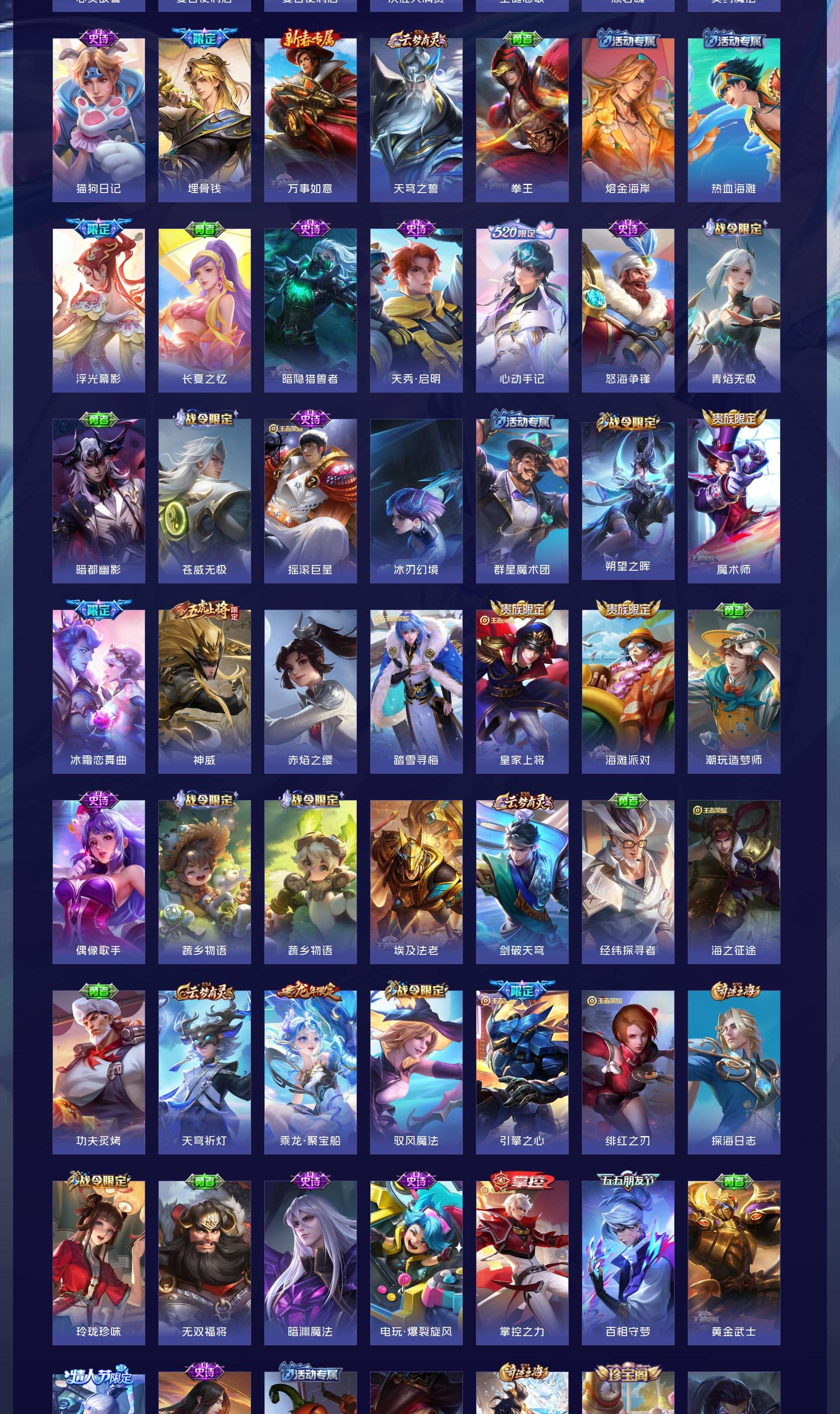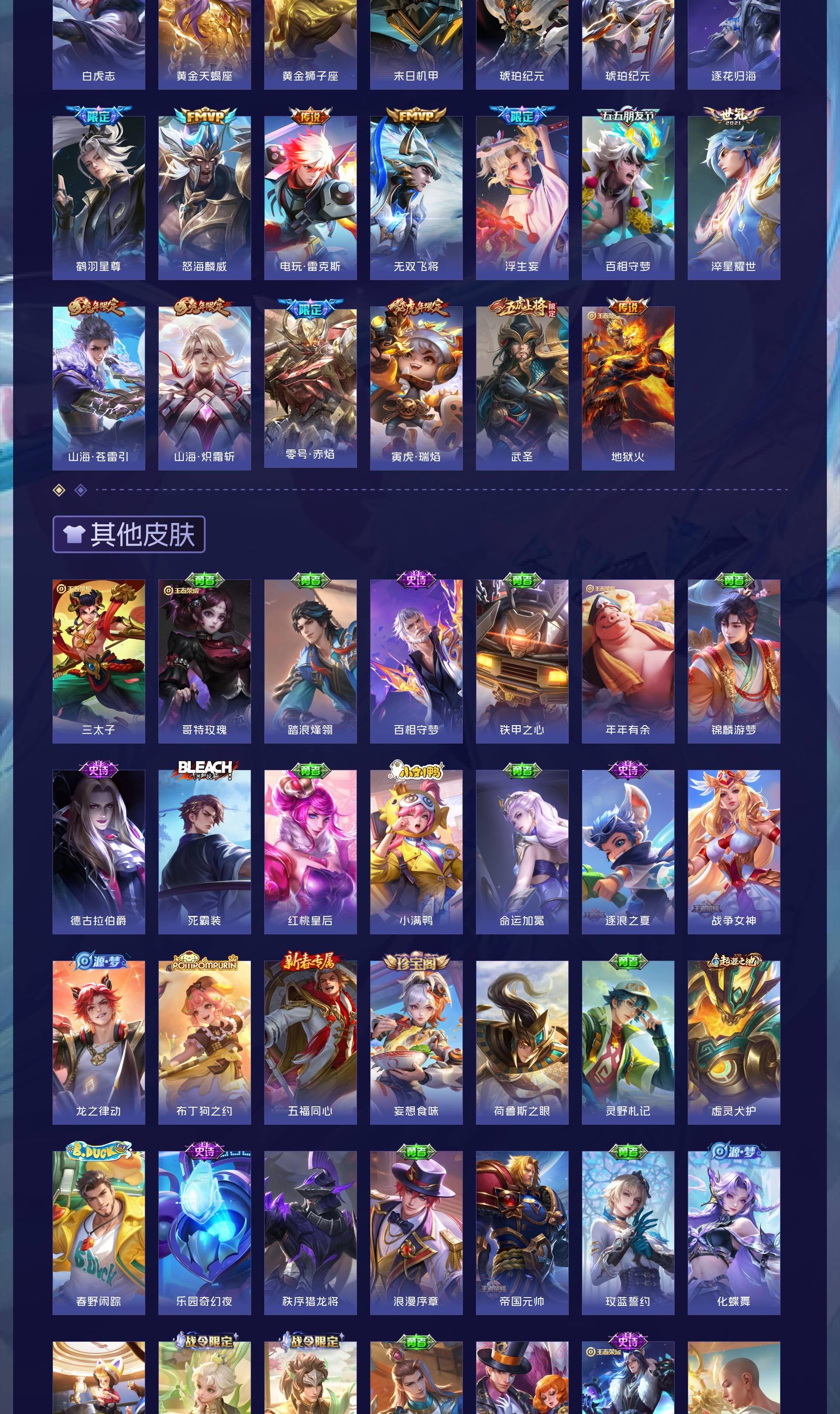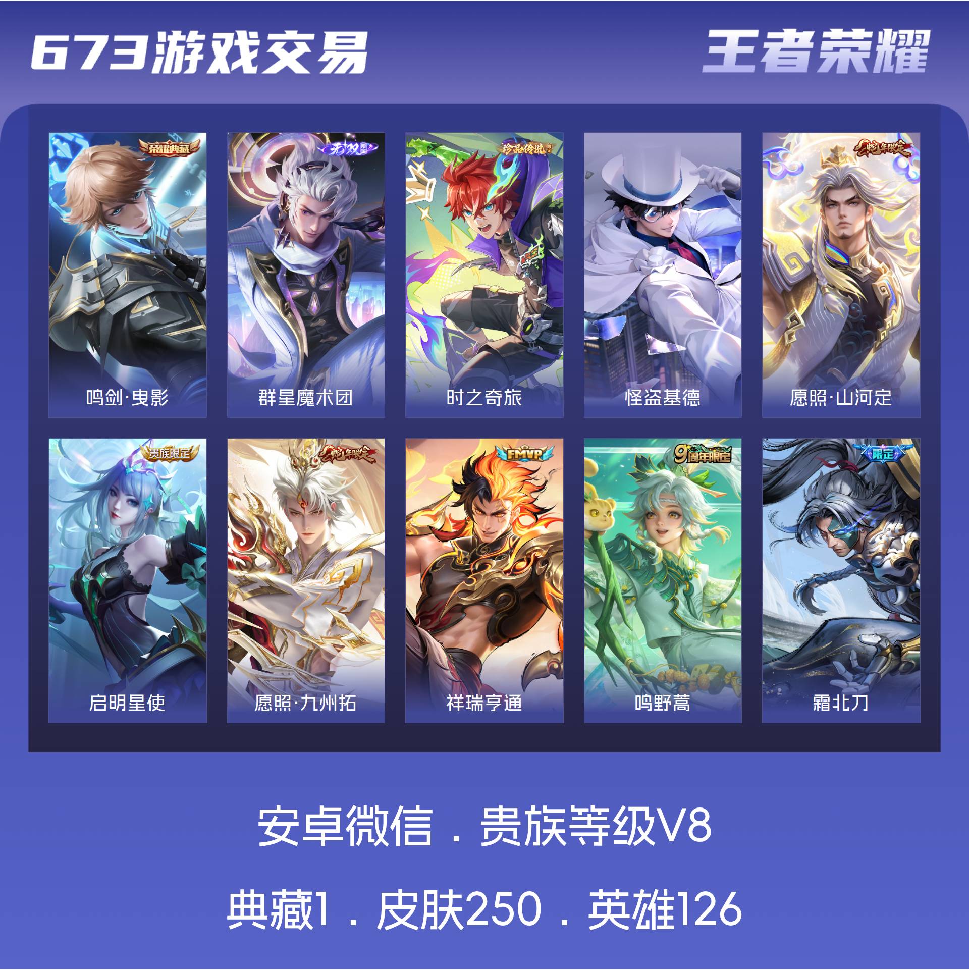 V8 皮肤250 英雄126 最强王者 荣耀典藏1 无双皮肤1 珍品传说2 传说27 其他皮肤225
