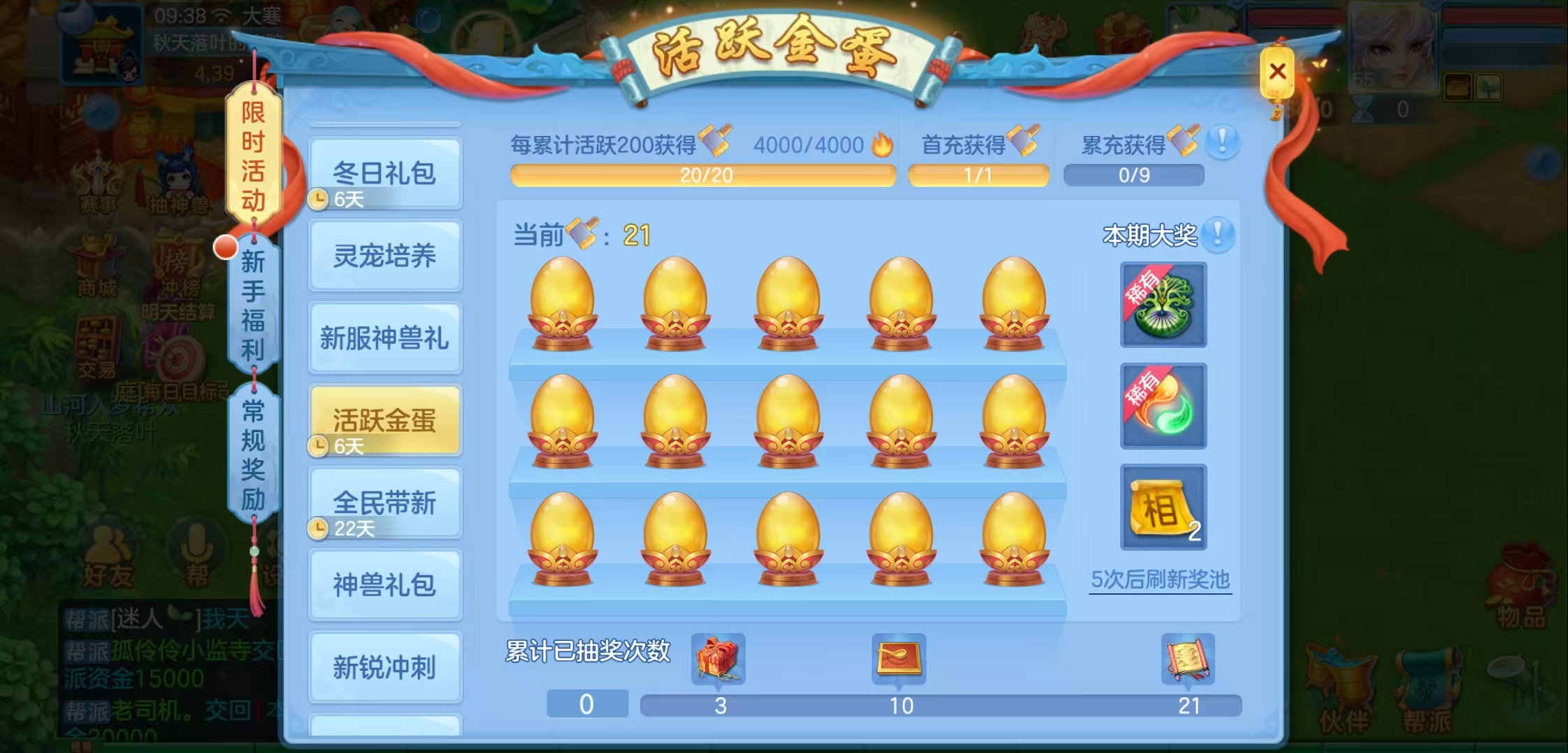 风刀霜剑月卡金蛋男魔王100万银子,1300+还童丹,4通灵英豪令,21金蛋在。126三无叶子号