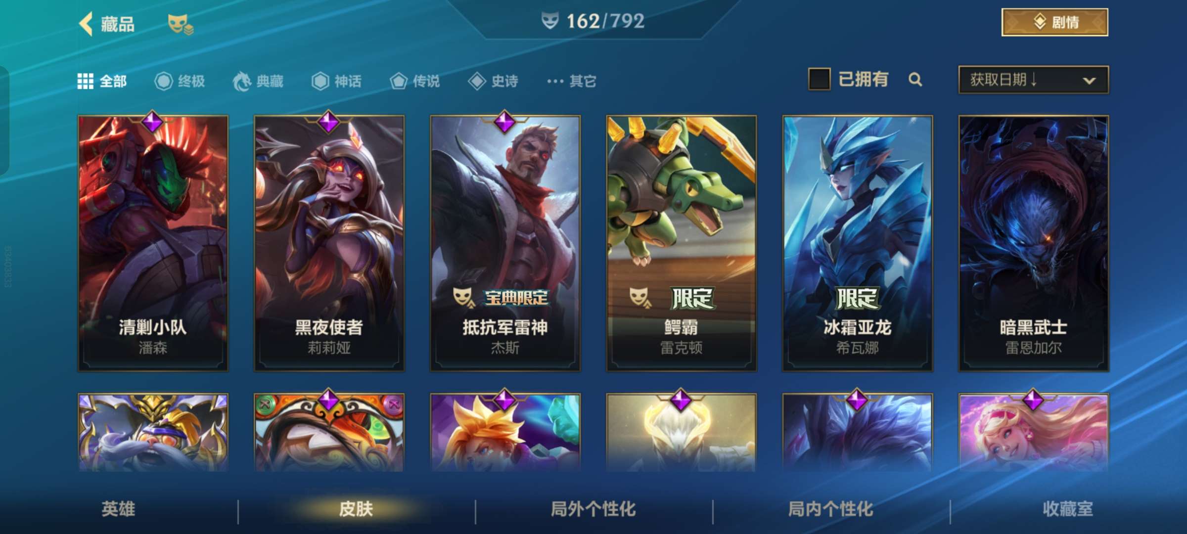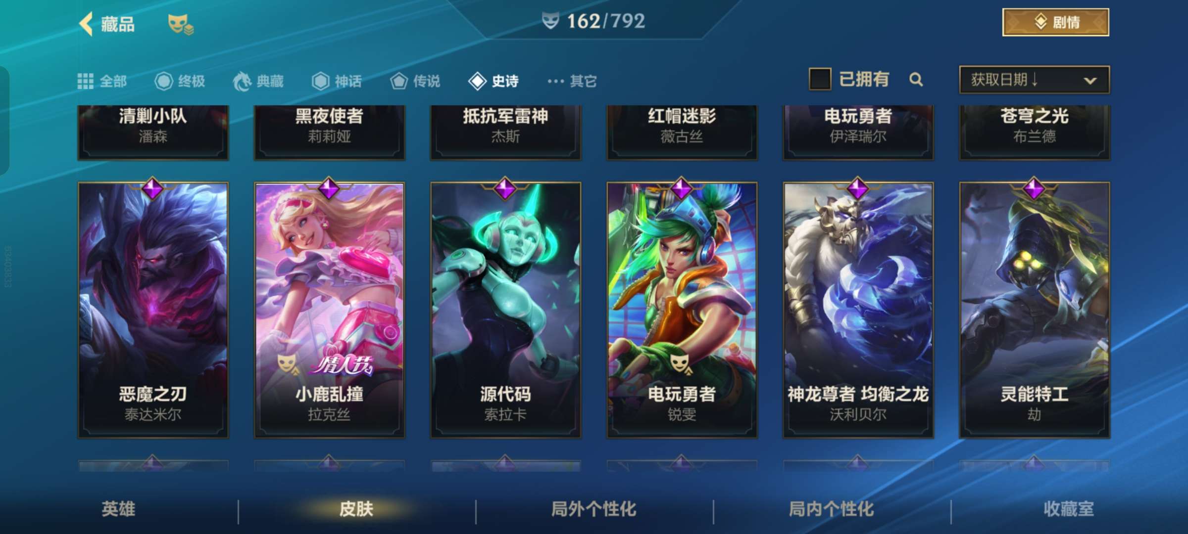 不玩了,便宜卖,补了一个传说,史诗皮肤有点多,随便选的