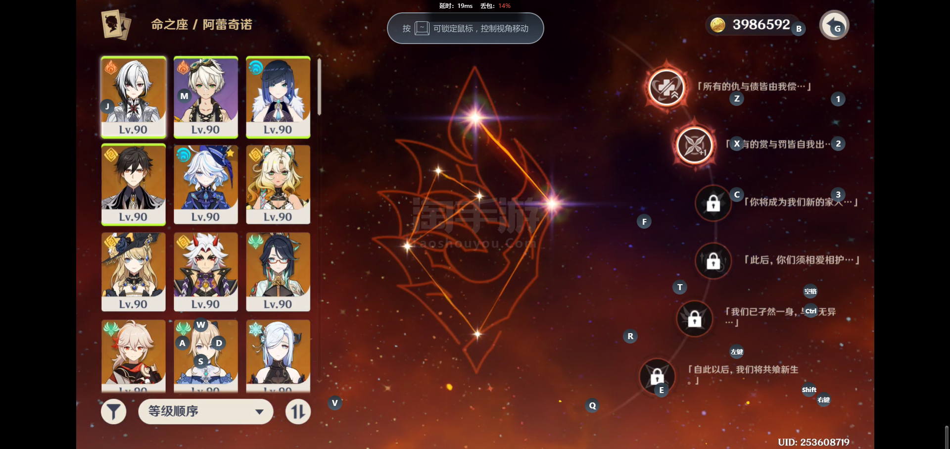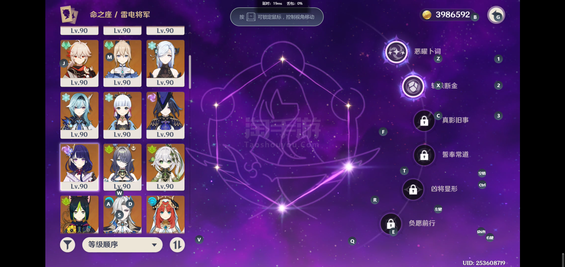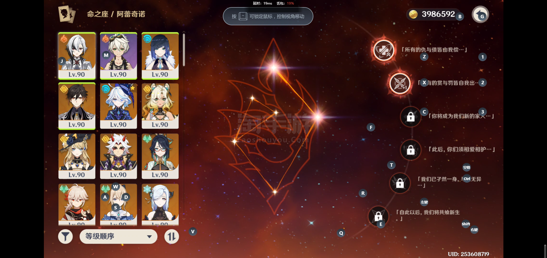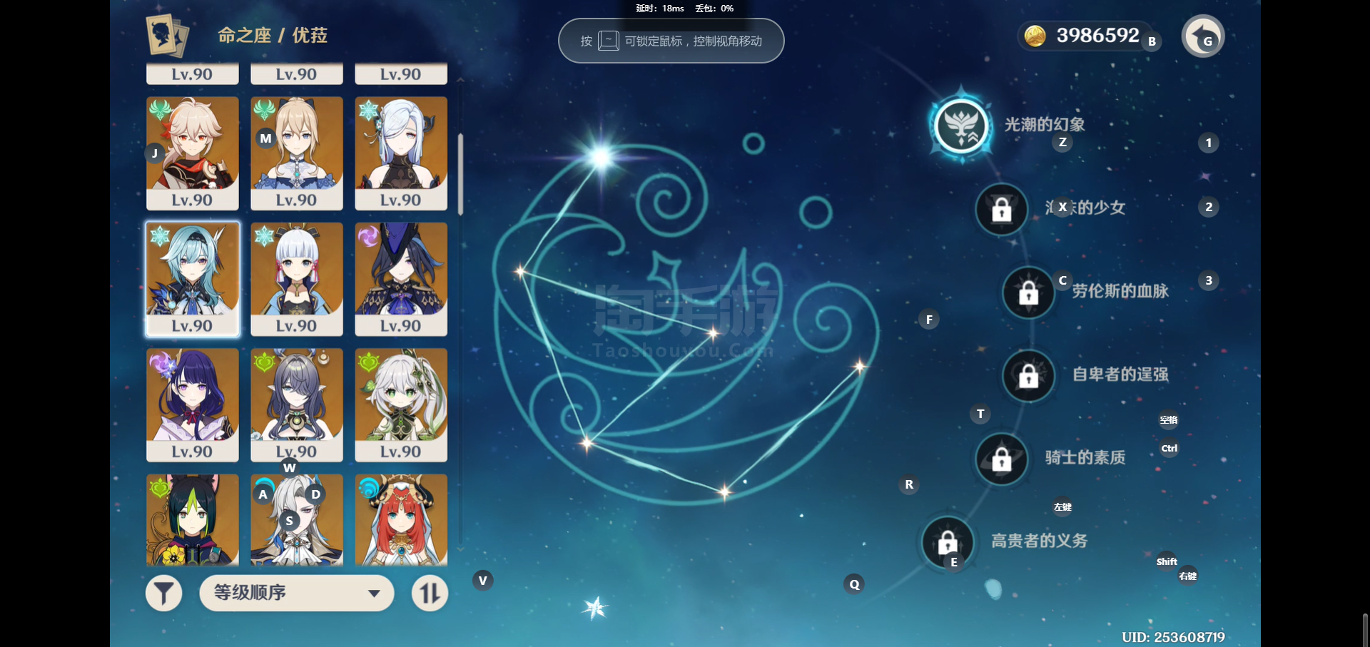 原神满级自玩号,小保底已歪过,并垫了30多抽,养的角色基本上都毕业了,手头紧,急出